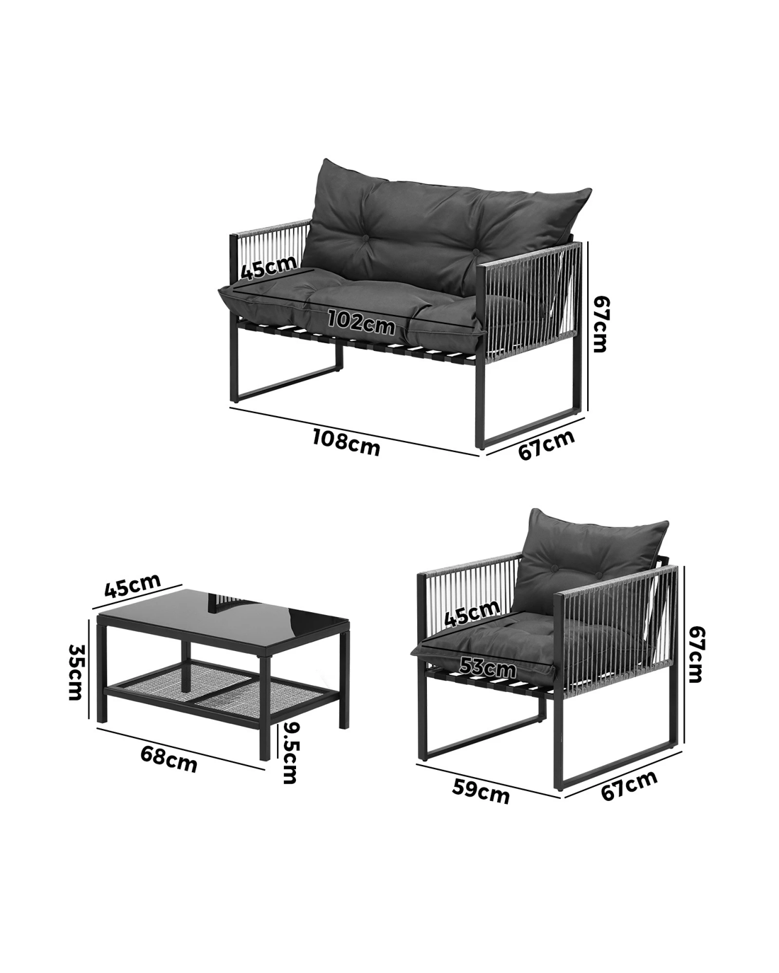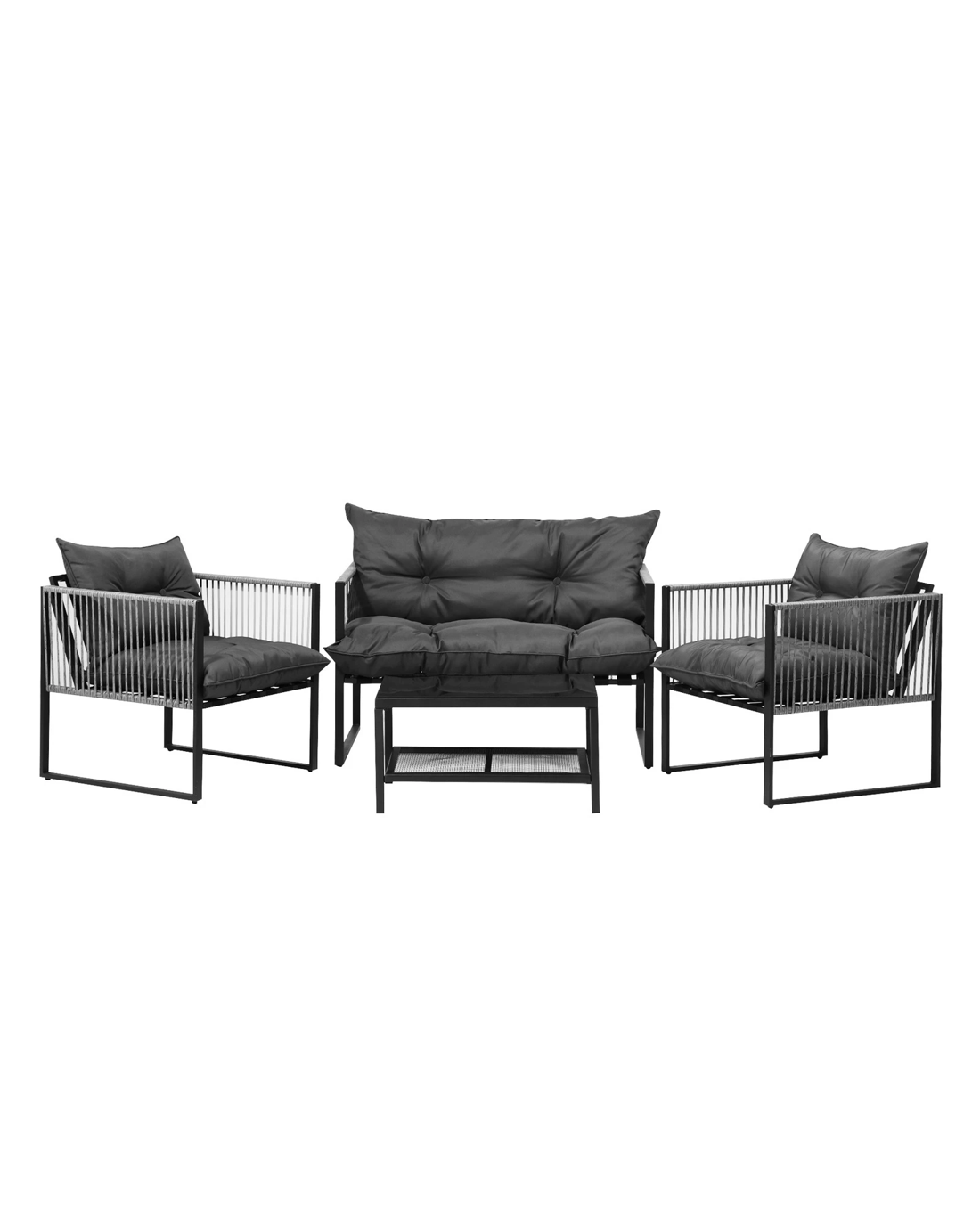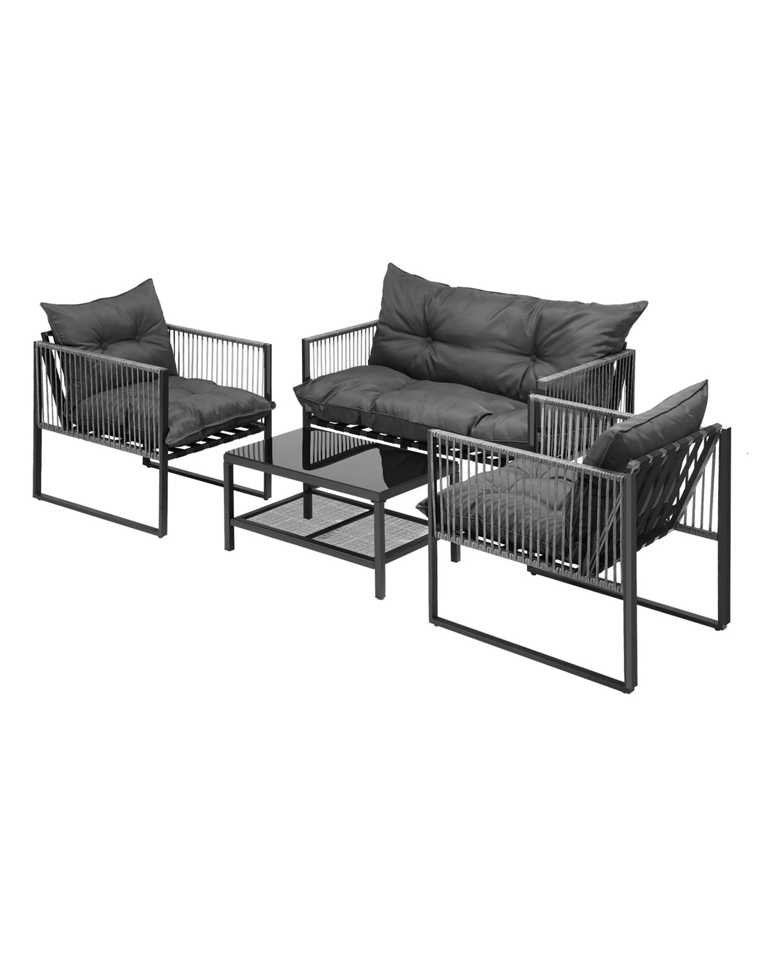 Our patio set also excels in functionality and versatility. The spacious coffee table becomes the focal point of outdoor gatherings, providing ample room for dining, games, and entertaining. From family meals to memorable celebrations, this table adapts to your needs, making it a perfect centerpiece for every occasion.