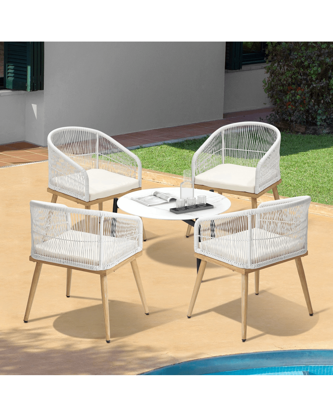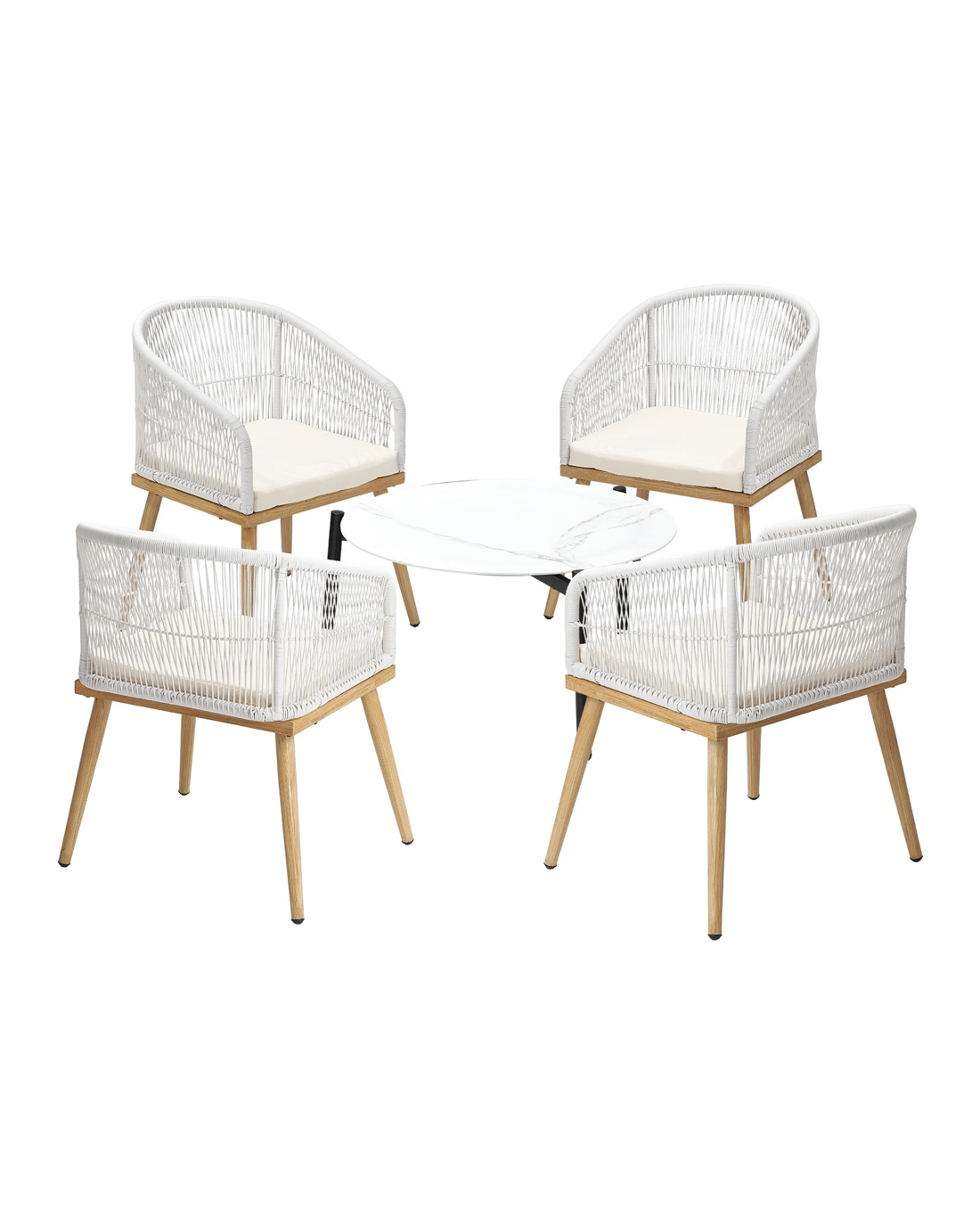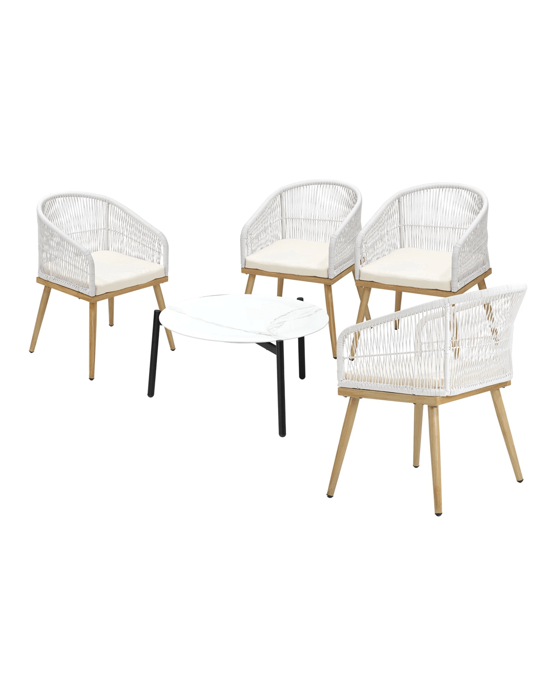 If you are looking for a classy and sophisticated outdoor set that adds a touch of marble-resque aesthetics to its setting, then this Livsip Outdoor Set is well within your radar of stylish furniture. None the ordinary and everything the exceptional.