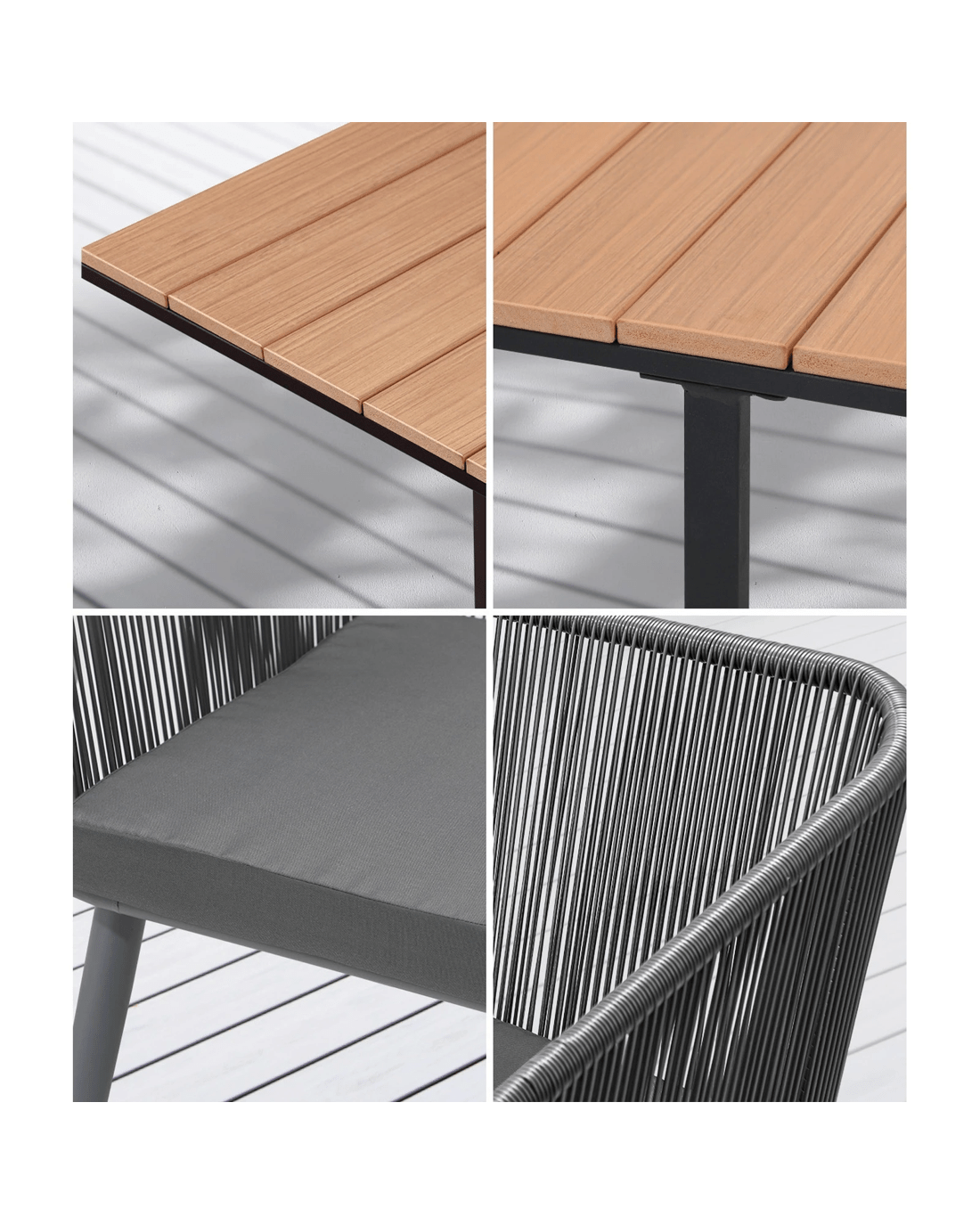 Versatility is key when it comes to outdoor furniture, and our dining table is designed to adapt to a variety of outdoor styles. Its classic design seamlessly blends with different aesthetics, making it a perfect fit for any outdoor setting. Pair it with chairs of your choice to create a personalized look that reflects your unique taste and complements your outdoor ambiance.
