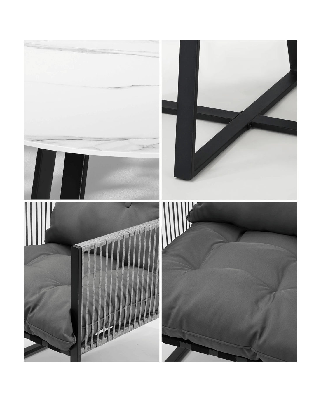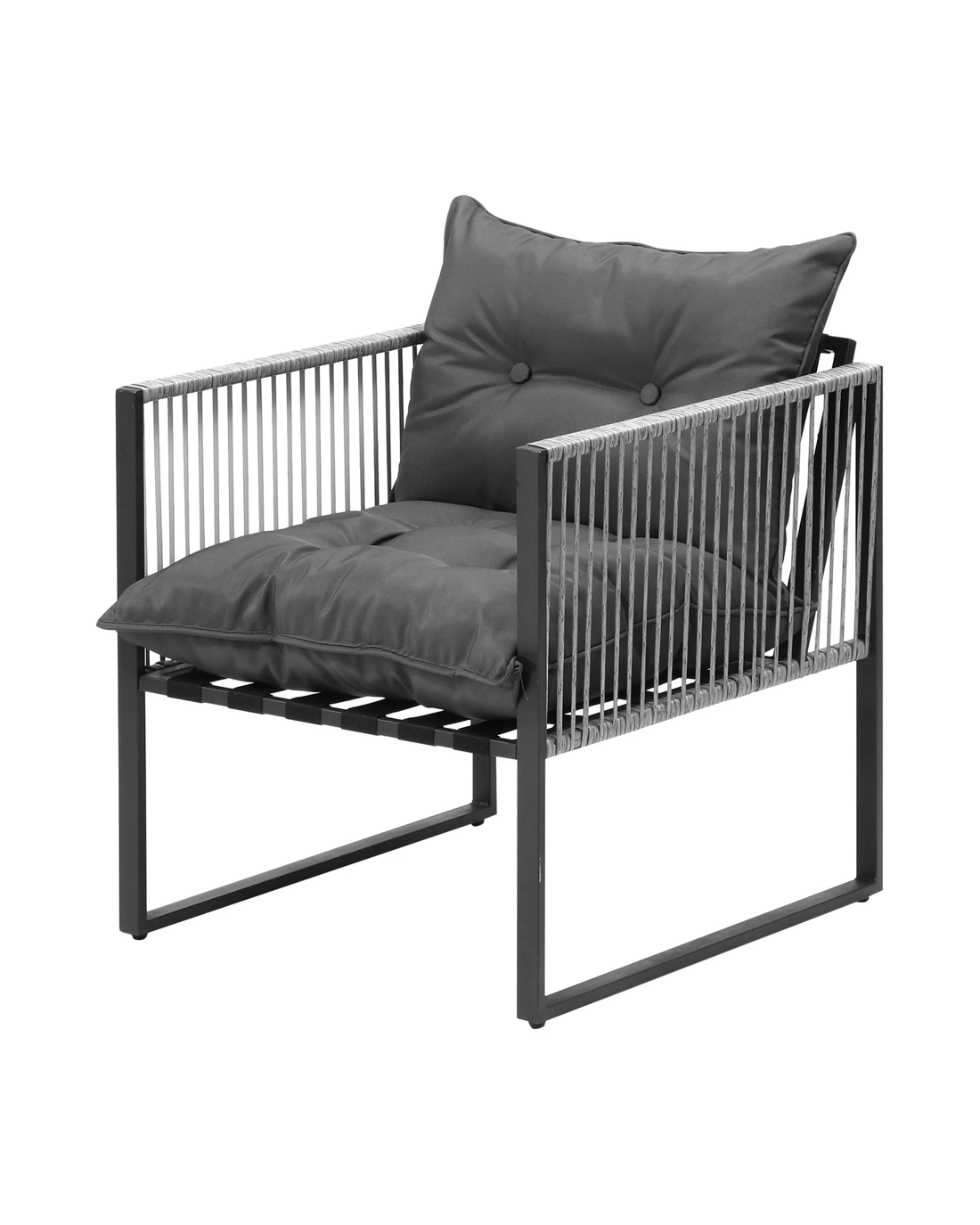 Stylish. Contemporary. Cool. Such as the stringed PE wicker embellishments that add plenty of charisma and character to the chair. It has all the hallmarks of chic outdoor furniture that resonate with your discerning lifestyle. Sit back and feel the comfort of the well-padded cushioned seat and backrest and relax your arms on the smooth and supportive armrests.