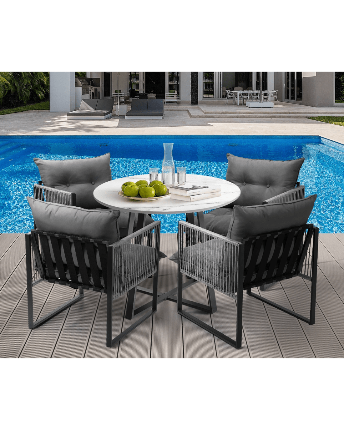 Sold by Kamprad's Oikos 1943Livsip 5pcs Outdoor Dining Setting Patio Furniture Bistro Table Chairs Lounge - Multi