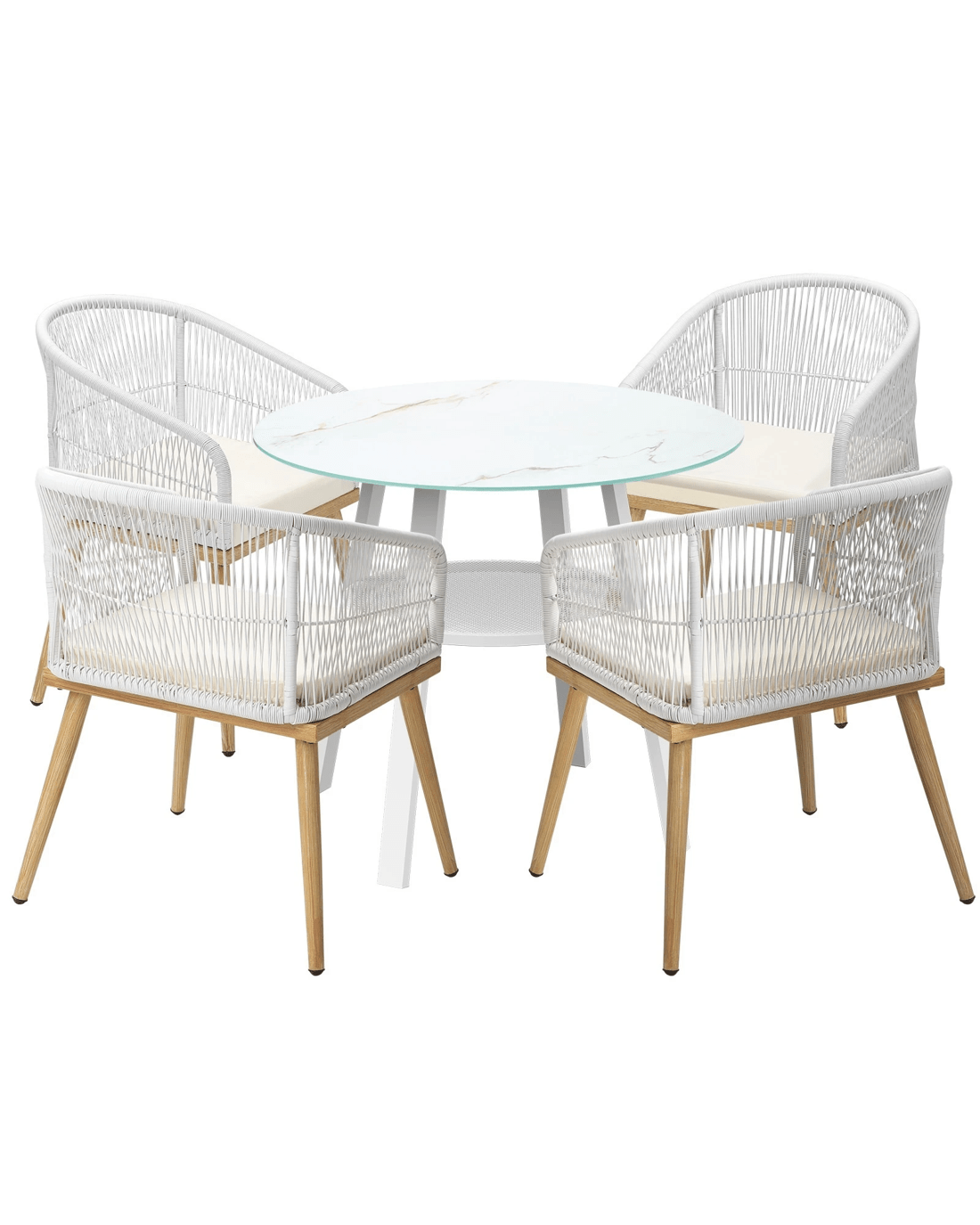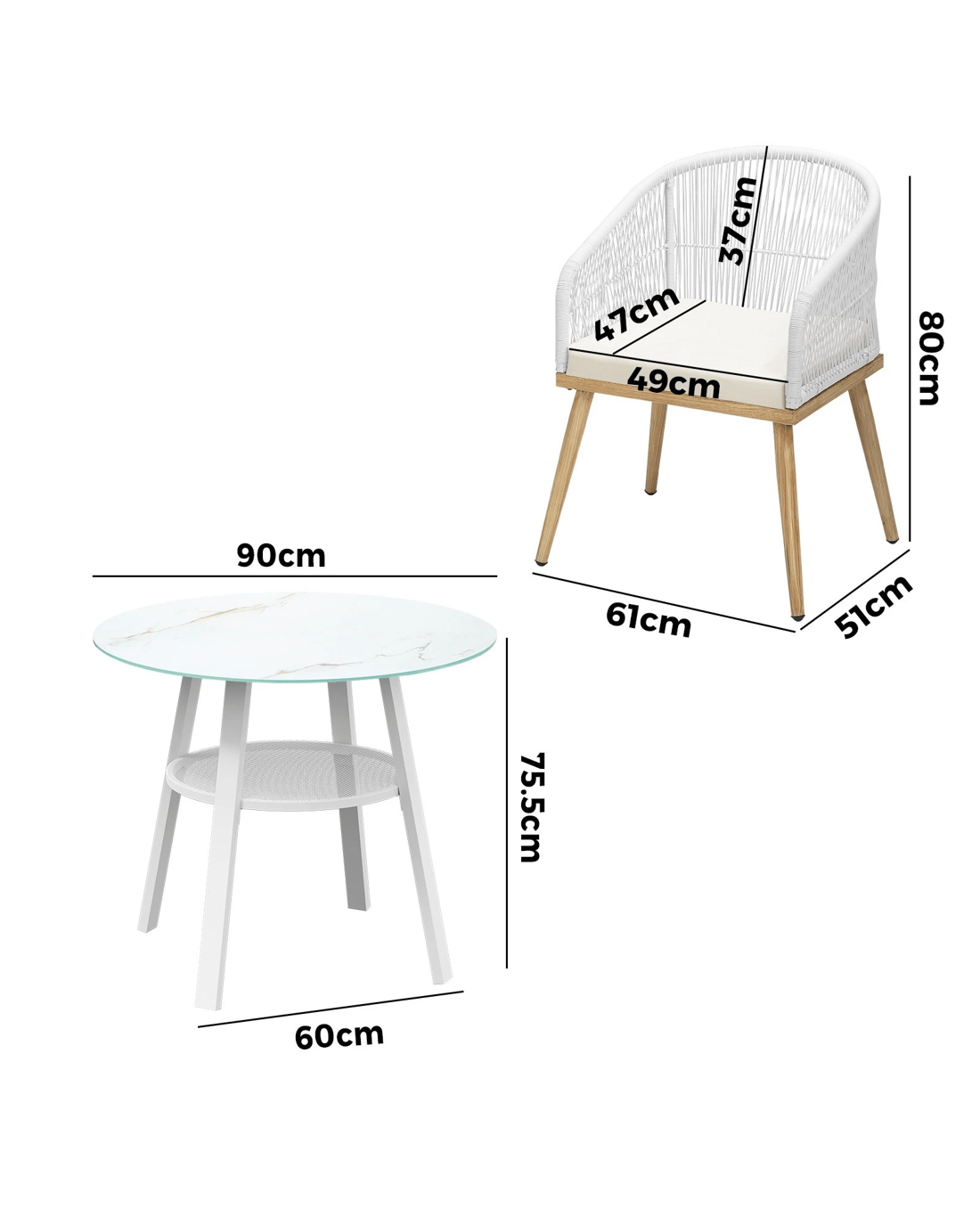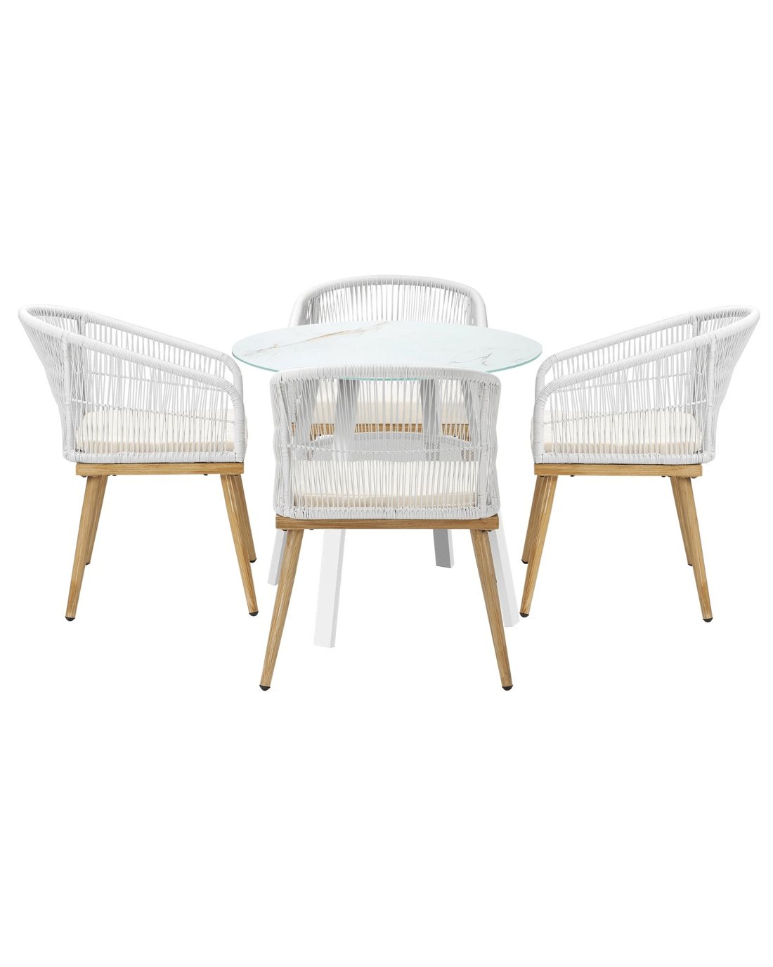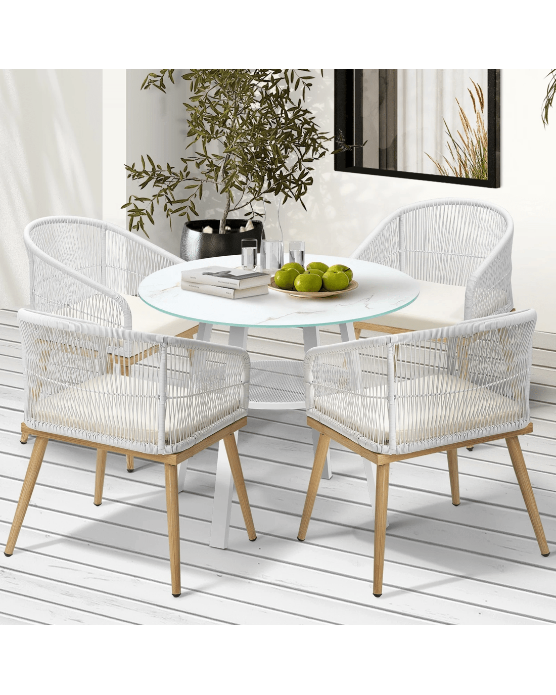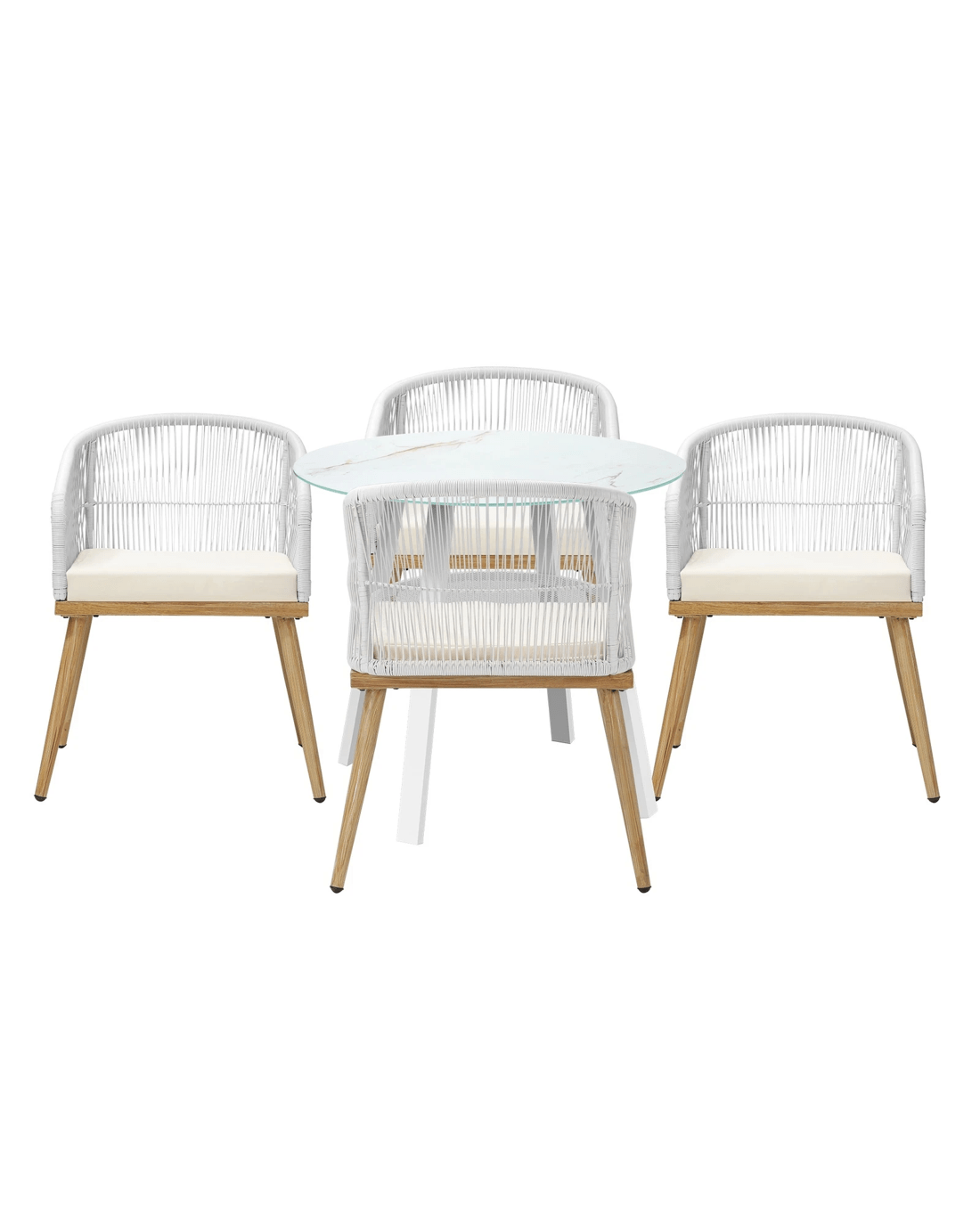 Living life to the fullest. Chilling out under the sun, moon and stars. Alfresco dining with friends, family or just with your precious me-time. Simply pursuing and enjoying life that is meant to be. And the Livsip Outdoor Dining Set is ready to be there at home with you. Stylish. Contemporary. Beautiful. For the dining table, a white ceramic tempered glass top with handy storage shelf beneath. And for the dining chairs, equally attractive pieces that go well with the table. The set has all the attributes of chic outdoor furniture that resonate with your discerning lifestyle. Have your lattes, your favourite brews and savour delectable cuisines and other gastronomical delights. Eat, drink and be merry! But how does the dining set stand up to the harsh and sometimes fickle Australian weather? No worries mate as it is all weather-resistant, chairs and table, with strength and durability for robust use. Not least, this dining setup also looks fabulous with any indoor eclectic styling ideas that you may have. Convinced that this delightful outdoor package is for you? Click on the Buy option and soon you will be feasting to your (and many others too) heart's content at the Livsip Outdoor Dining Set day and night, night and day, in every season.