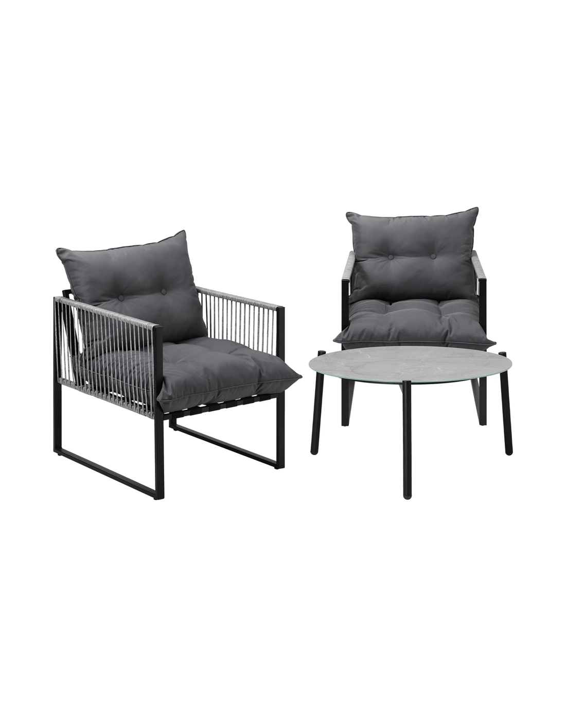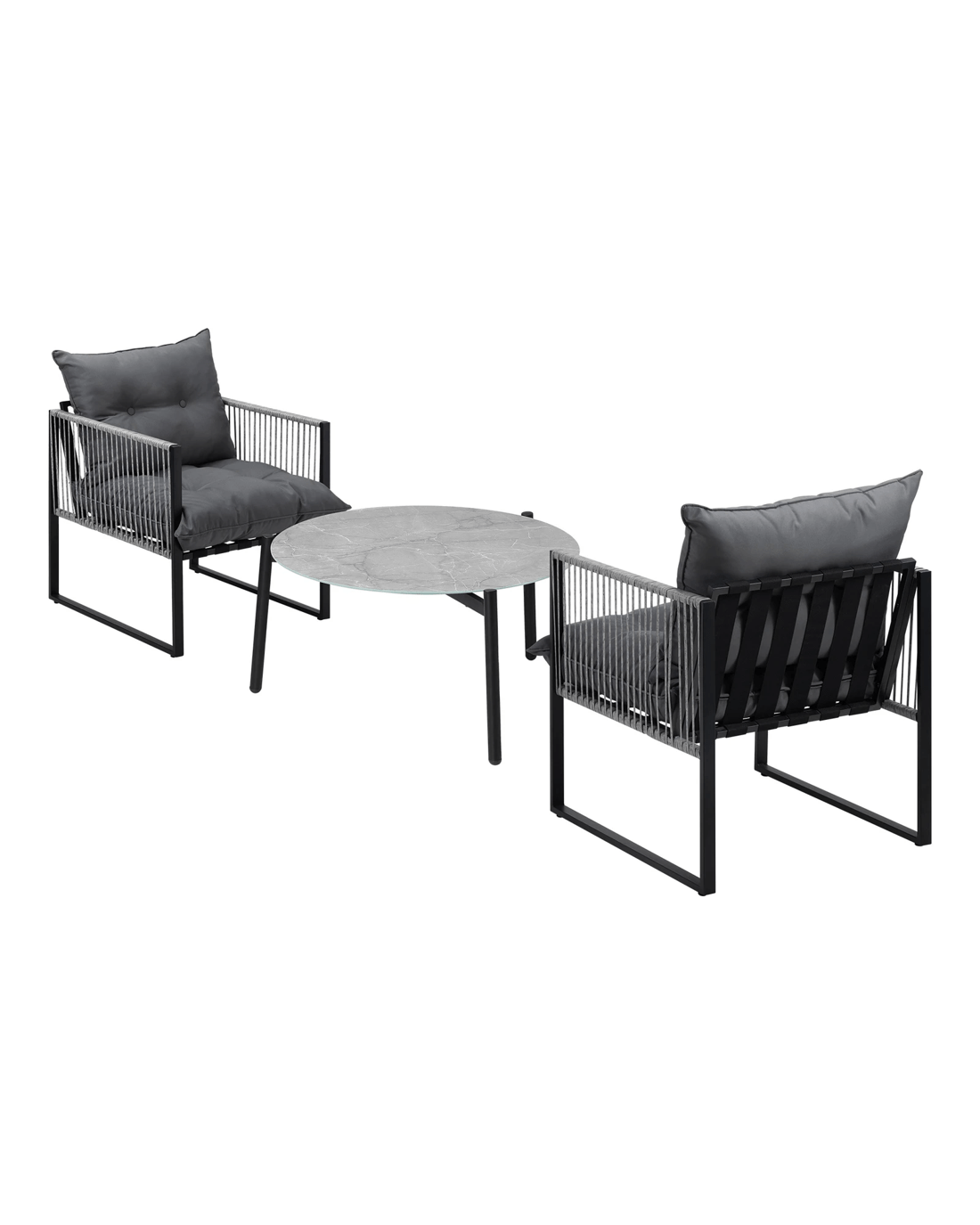 Beyond aesthetics, the versatile armchair set is built to exacting standards. The workmanship is meticulous with near-flawless finishing and close attention to details. Likewise, the three-legged profile of the coffee table is unique in stature with a black powder-coated steel construction.