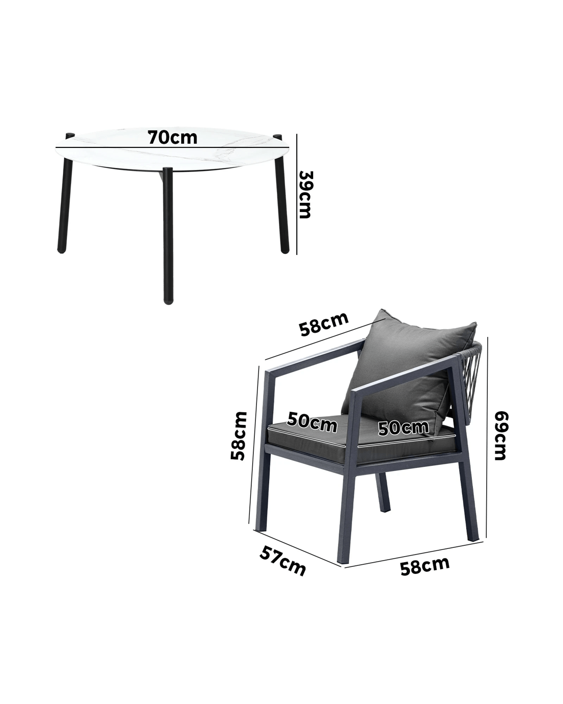 Single armchair sizes: 57 cm x 58 cm x 69cm(L x W x H)