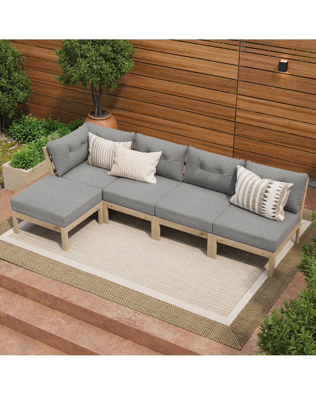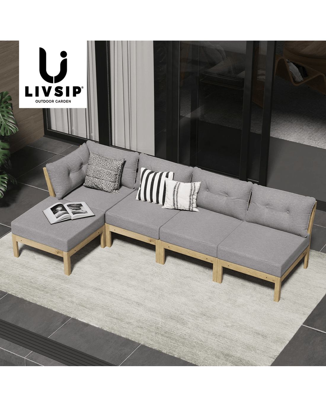 Livsip 5PCS Outdoor Sofa Set Lounge Setting Patio Furniture - Grey