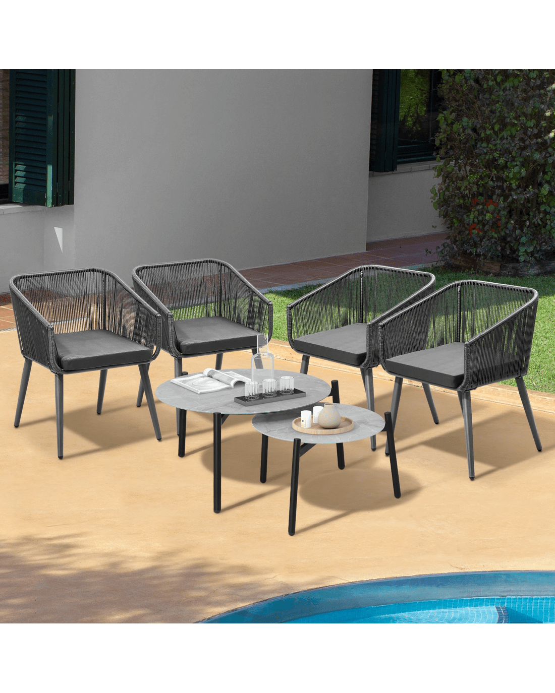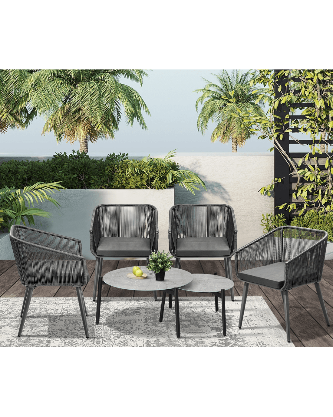 If you are looking for a classy and sophisticated outdoor set that adds a touch of marble-resque aesthetics to its setting, then this Livsip Outdoor Set is well within your radar of stylish furniture. None the ordinary and everything the exceptional.