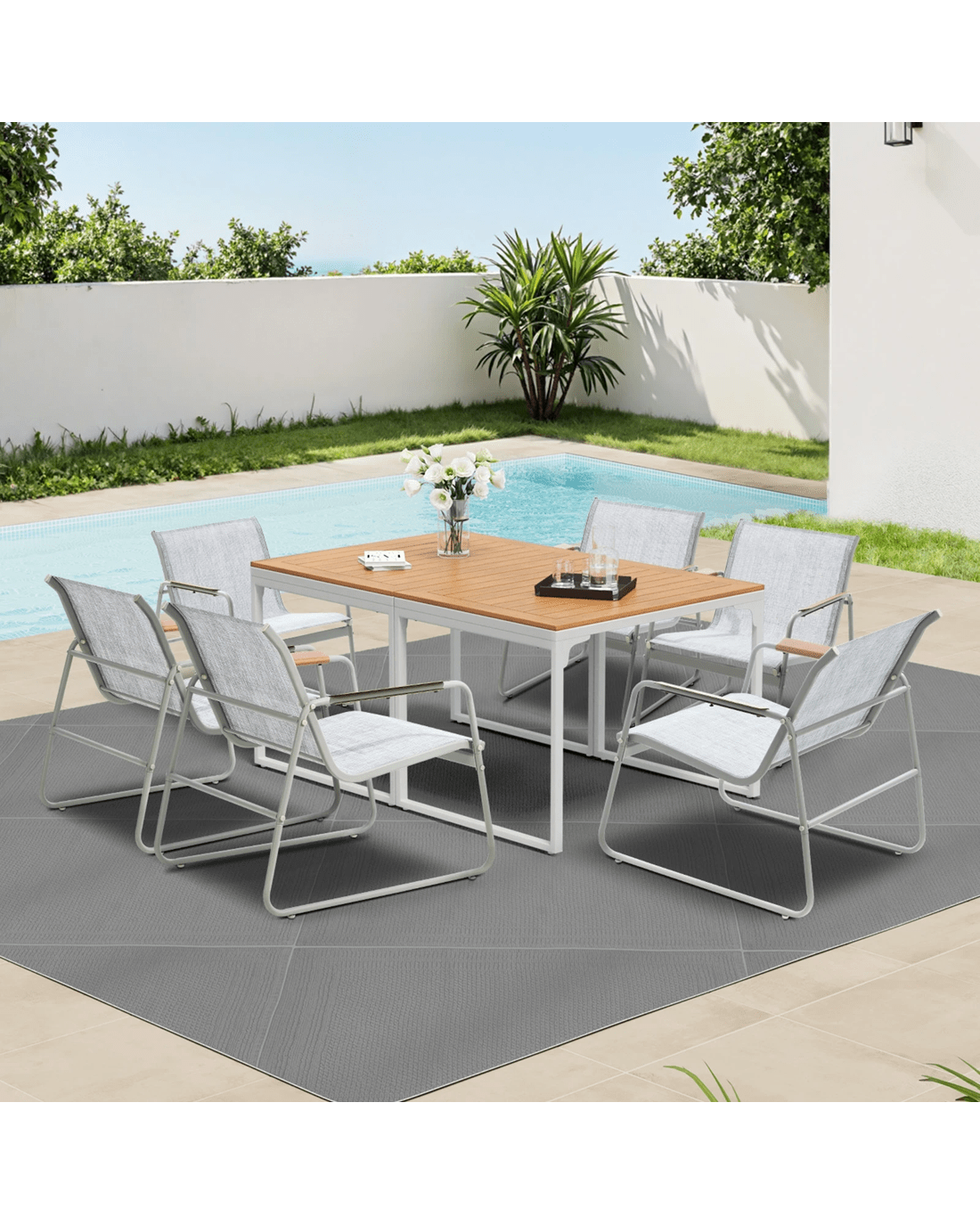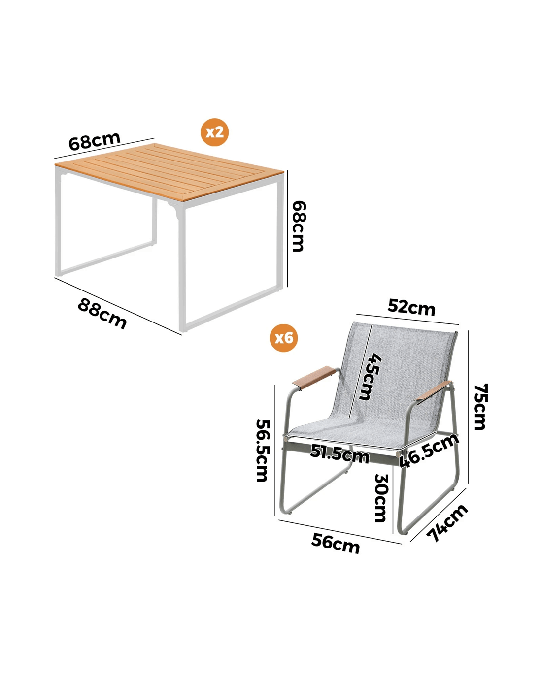 Livsip 6 Seater Outdoor Dining Set Patio Table Chairs Textilene Furniture - Multi