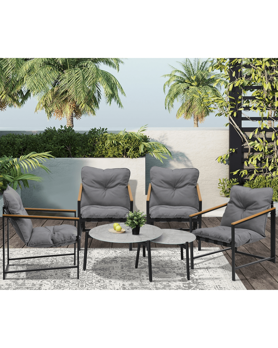 If you are looking for a classy and sophisticated outdoor set that adds a touch of marble-resque aesthetics to its setting, then this Livsip Outdoor Set is well within your radar of stylish furniture. None the ordinary and everything the exceptional.