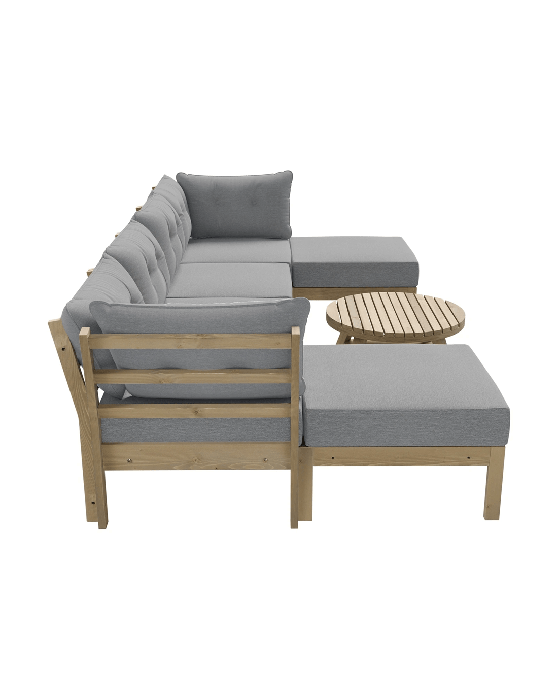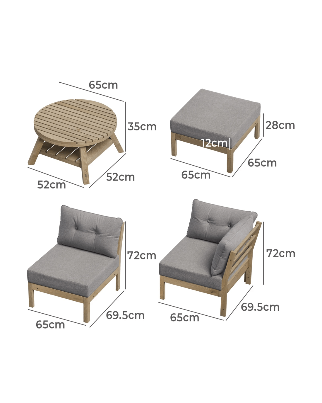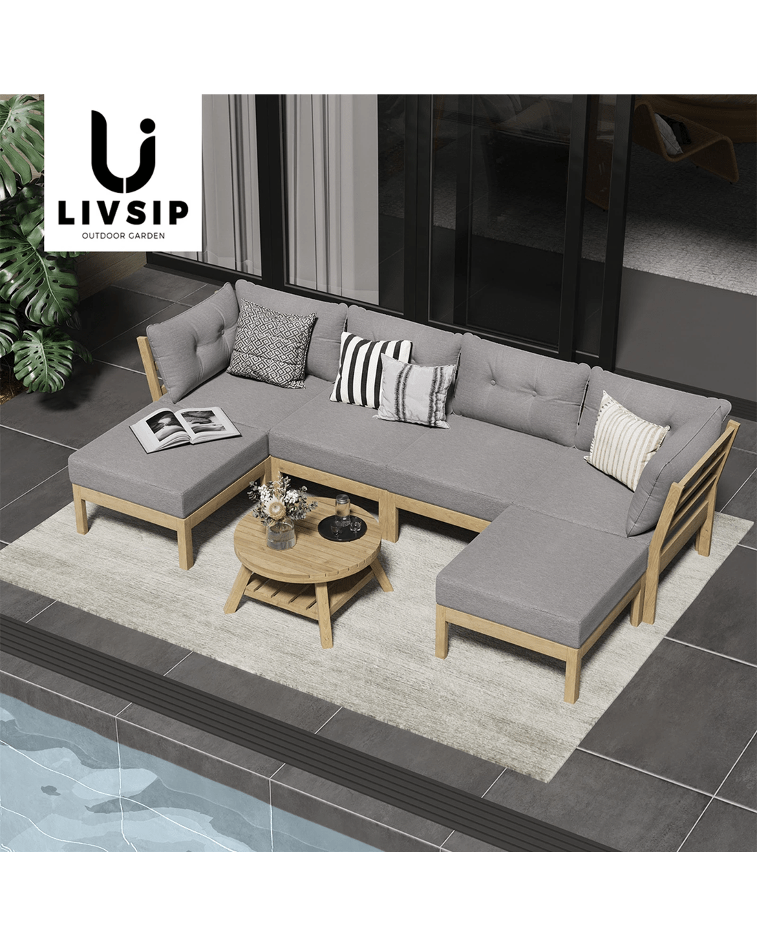 Indulge in the outdoors in fine style with the Livsip Outdoor Sofa Set that has all the elements of comfort, practicality and durability that you have come to expect from exceptional furniture. Tufted backrest covers and thick and wide seat cushions are matched with a refined wooden frame for a classy and sophisticated look that transcends time and space.