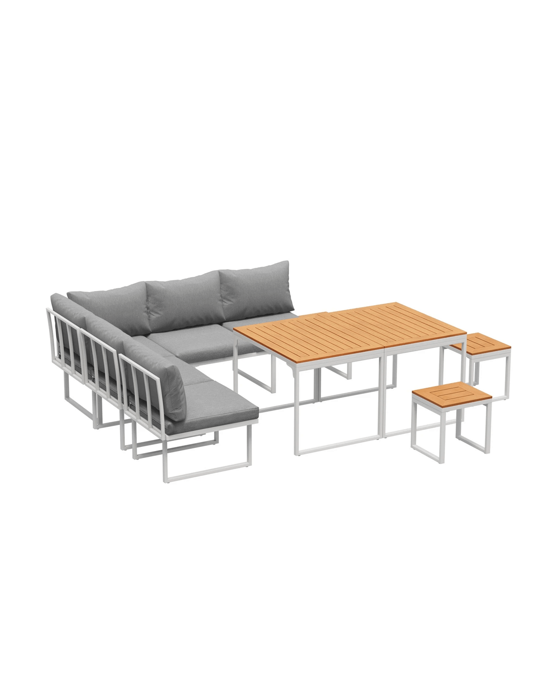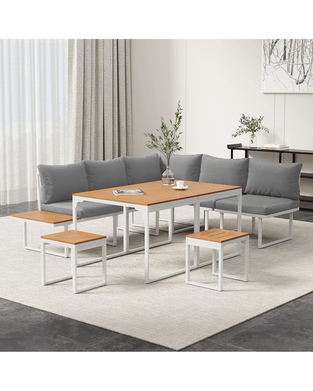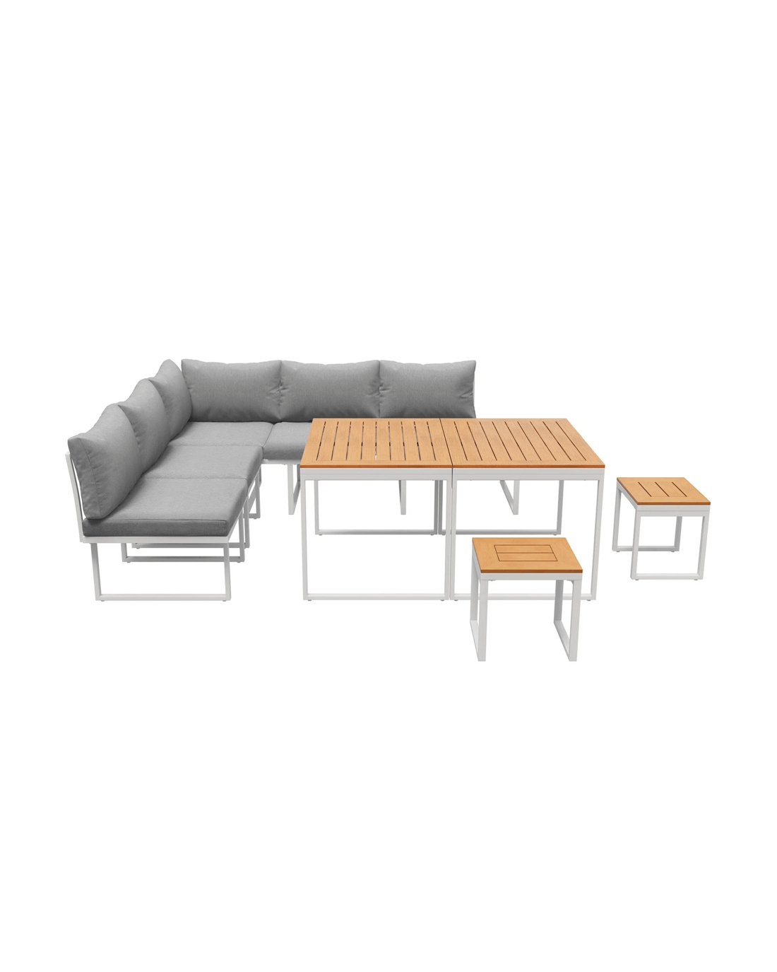 Naturally, our outdoor set is made to withstand the weather elements such as good water and UV resistance, including the removable cushions and pillows, to have you enjoying your marvellous seating with minimum fuss and maximum satisfaction under the sun, moon and stars. Better still, use the set indoors if it suits your decor ideas. After all, any fine set as wonderful as the Livsip Outdoor Sofa Dining Set should not be confined to just one place in your home.