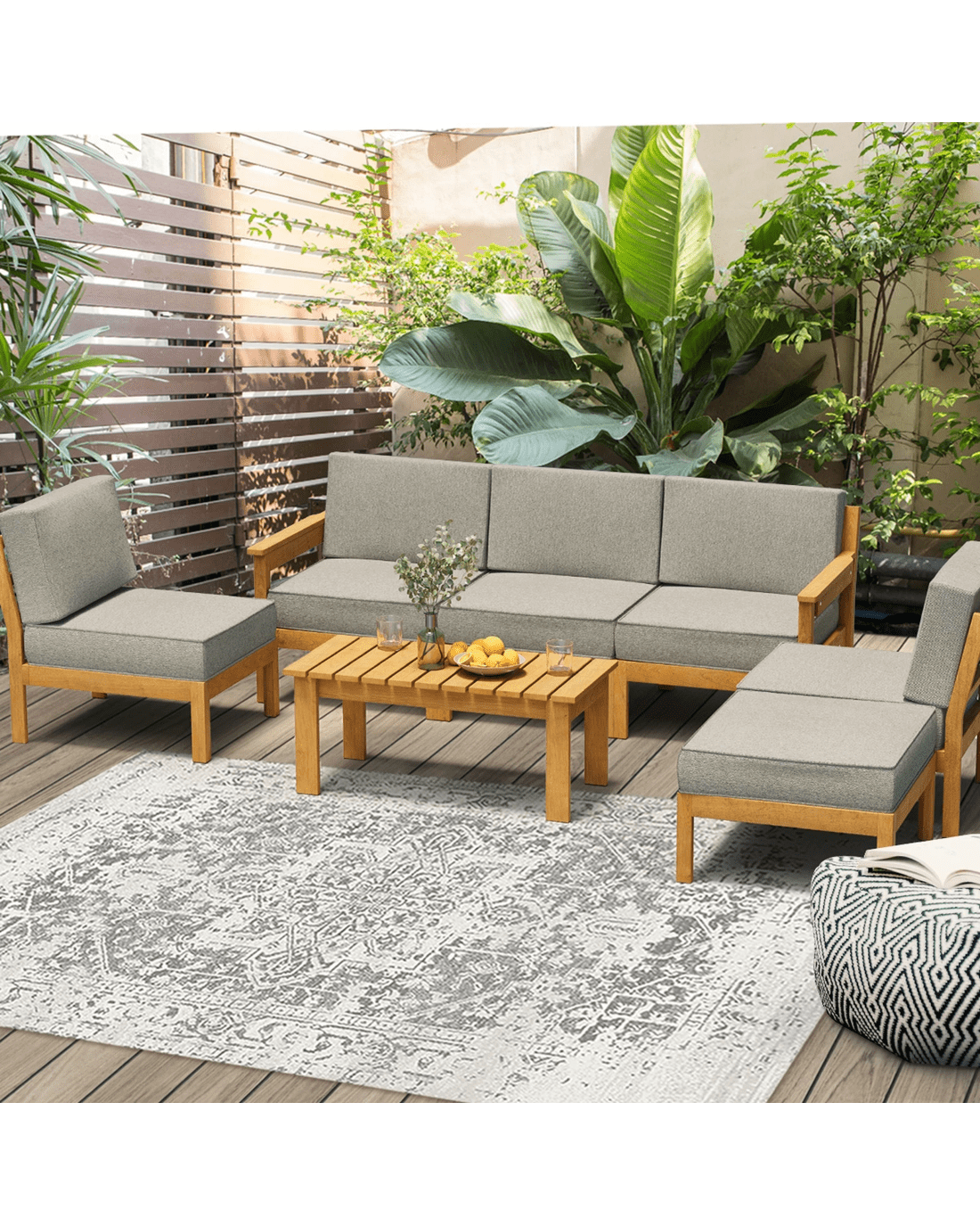 Livsip 7pcs Outdoor Sofa Set Garden Lounge Setting Patio Furniture Table Chairs - Beige