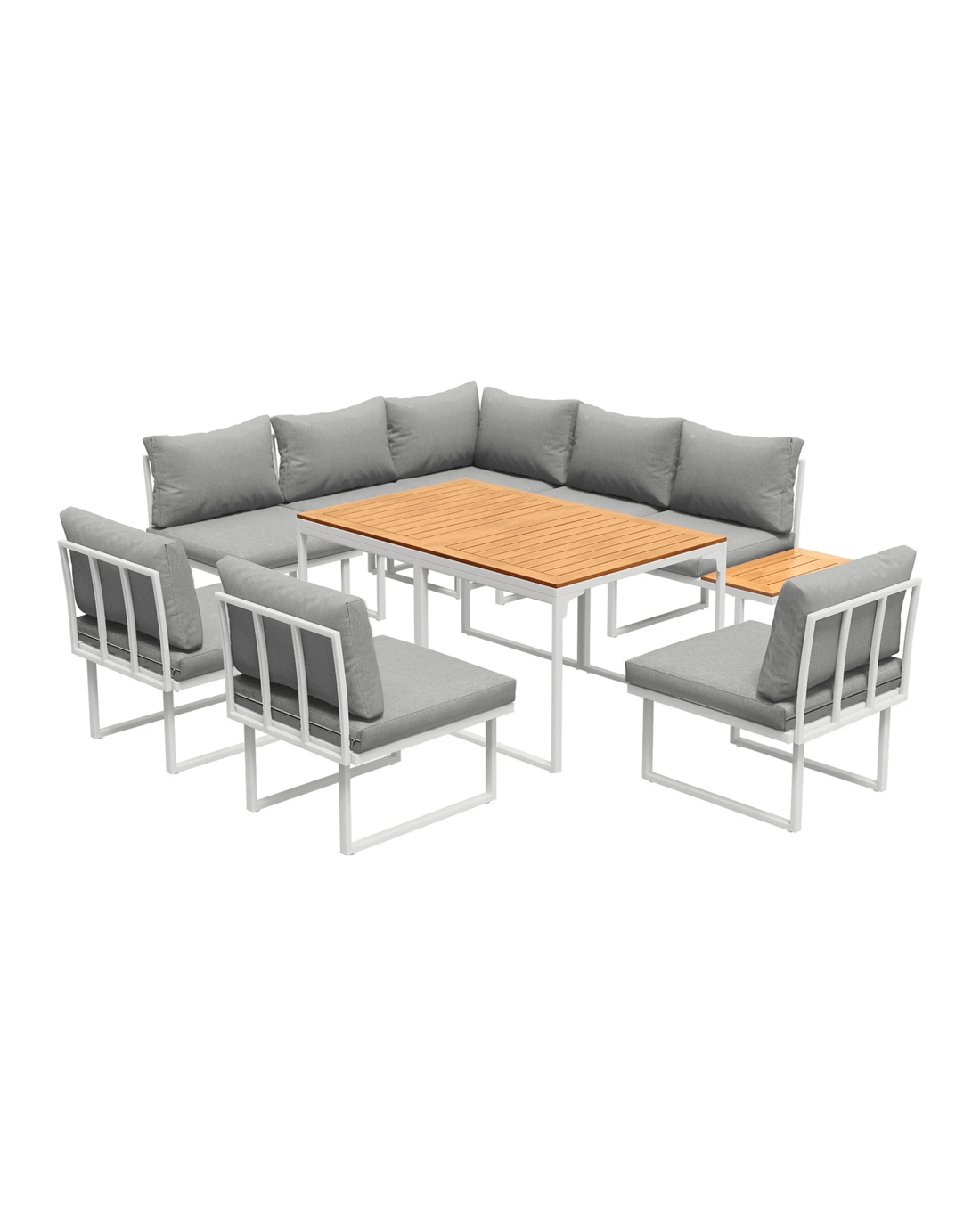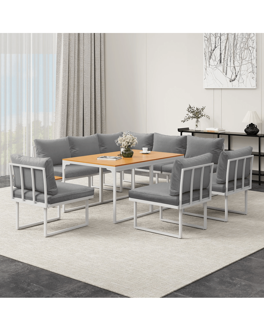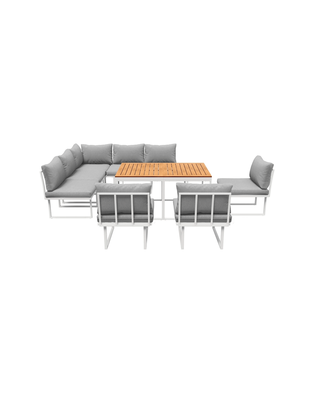 Naturally, our outdoor set is made to withstand the weather elements such as good water and UV resistance, including the removable cushions and pillows, to have you enjoying your marvellous seating with minimum fuss and maximum satisfaction under the sun, moon and stars. Better still, use the set indoors if it suits your decor ideas. After all, any fine set as wonderful as the Livsip Outdoor Sofa Dining Set should not be confined to just one place in your home.