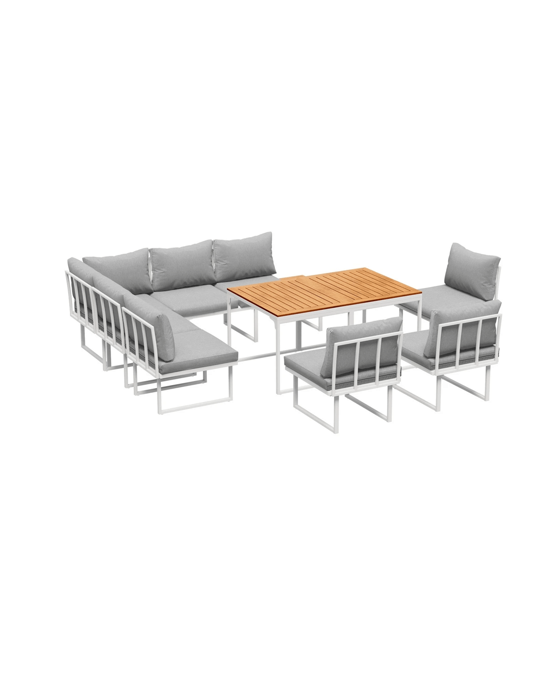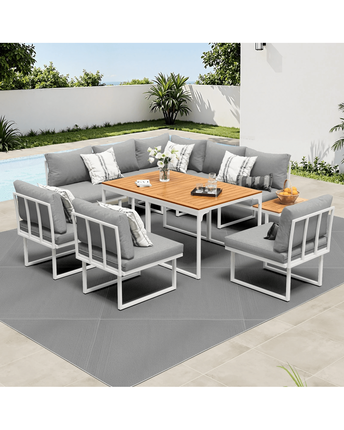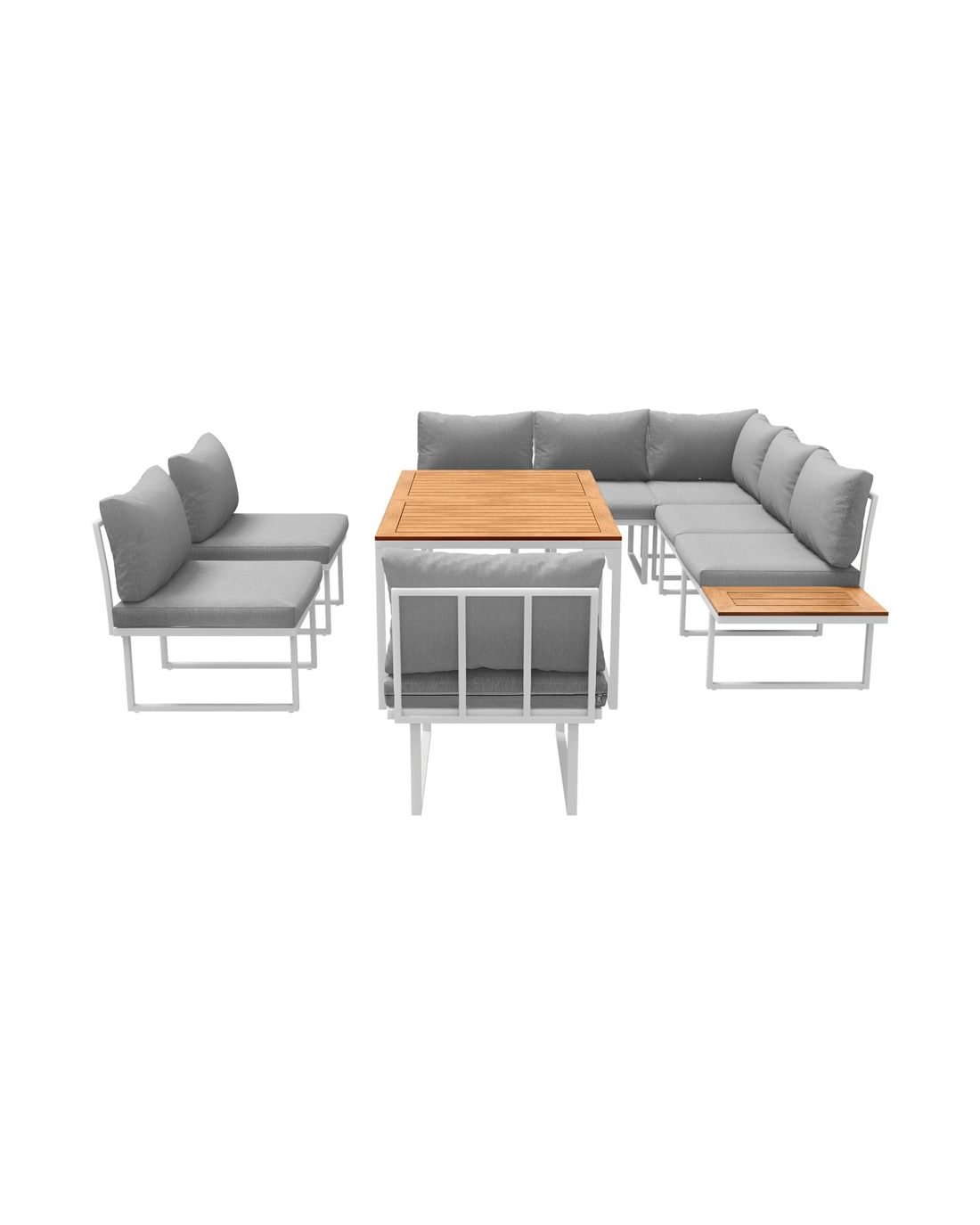 Naturally, our outdoor set is made to withstand the weather elements such as good water and UV resistance, including the removable cushions and pillows, to have you enjoying your marvellous seating with minimum fuss and maximum satisfaction under the sun, moon and stars. Better still, use the set indoors if it suits your decor ideas. After all, any fine set as wonderful as the Livsip Outdoor Sofa Dining Set should not be confined to just one place in your home.