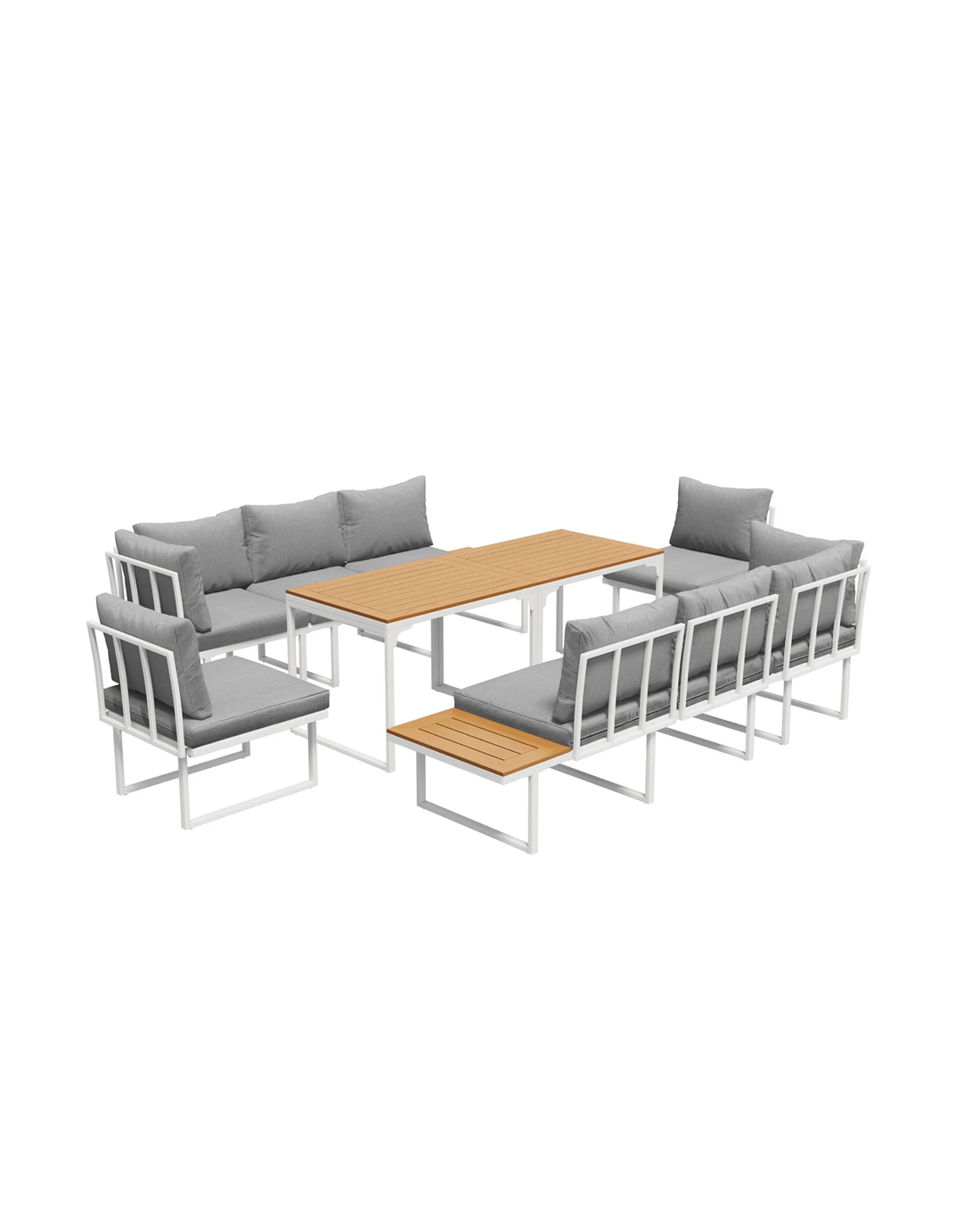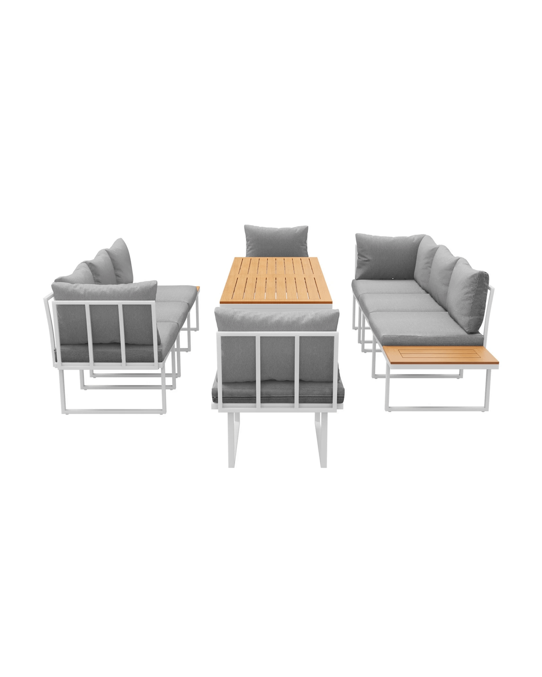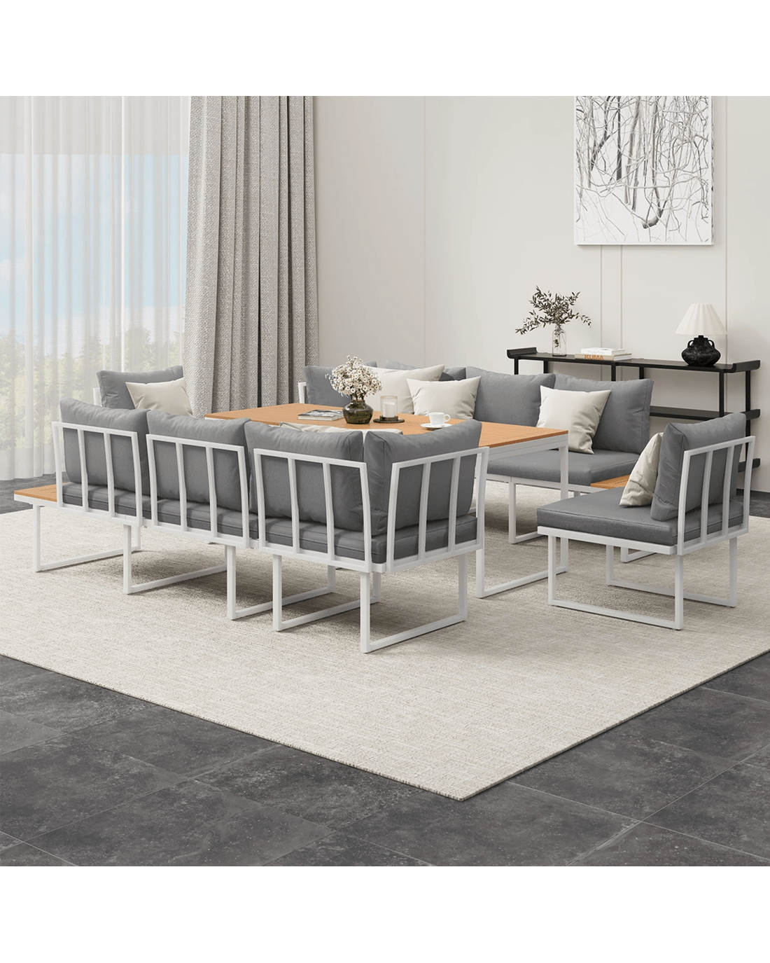 Naturally, our outdoor set is made to withstand the weather elements such as good water and UV resistance, including the removable cushions and pillows, to have you enjoying your marvellous seating with minimum fuss and maximum satisfaction under the sun, moon and stars. Better still, use the set indoors if it suits your decor ideas. After all, any fine set as wonderful as the Livsip Outdoor Sofa Dining Set should not be confined to just one place in your home.