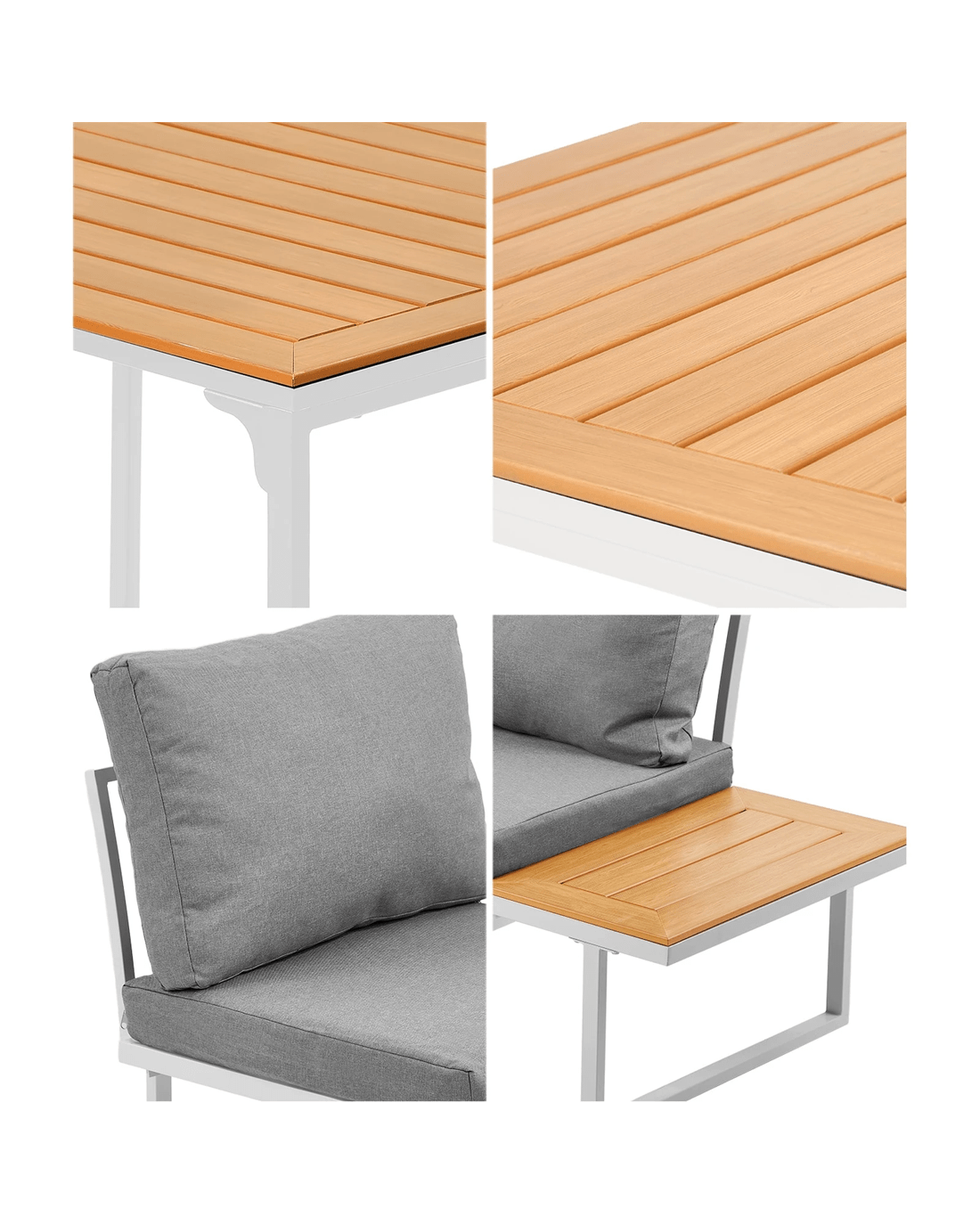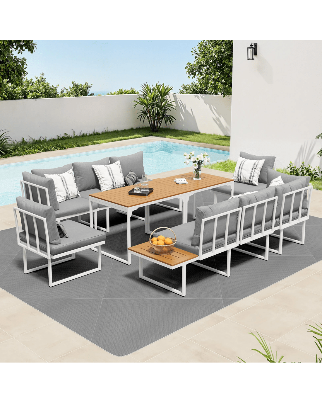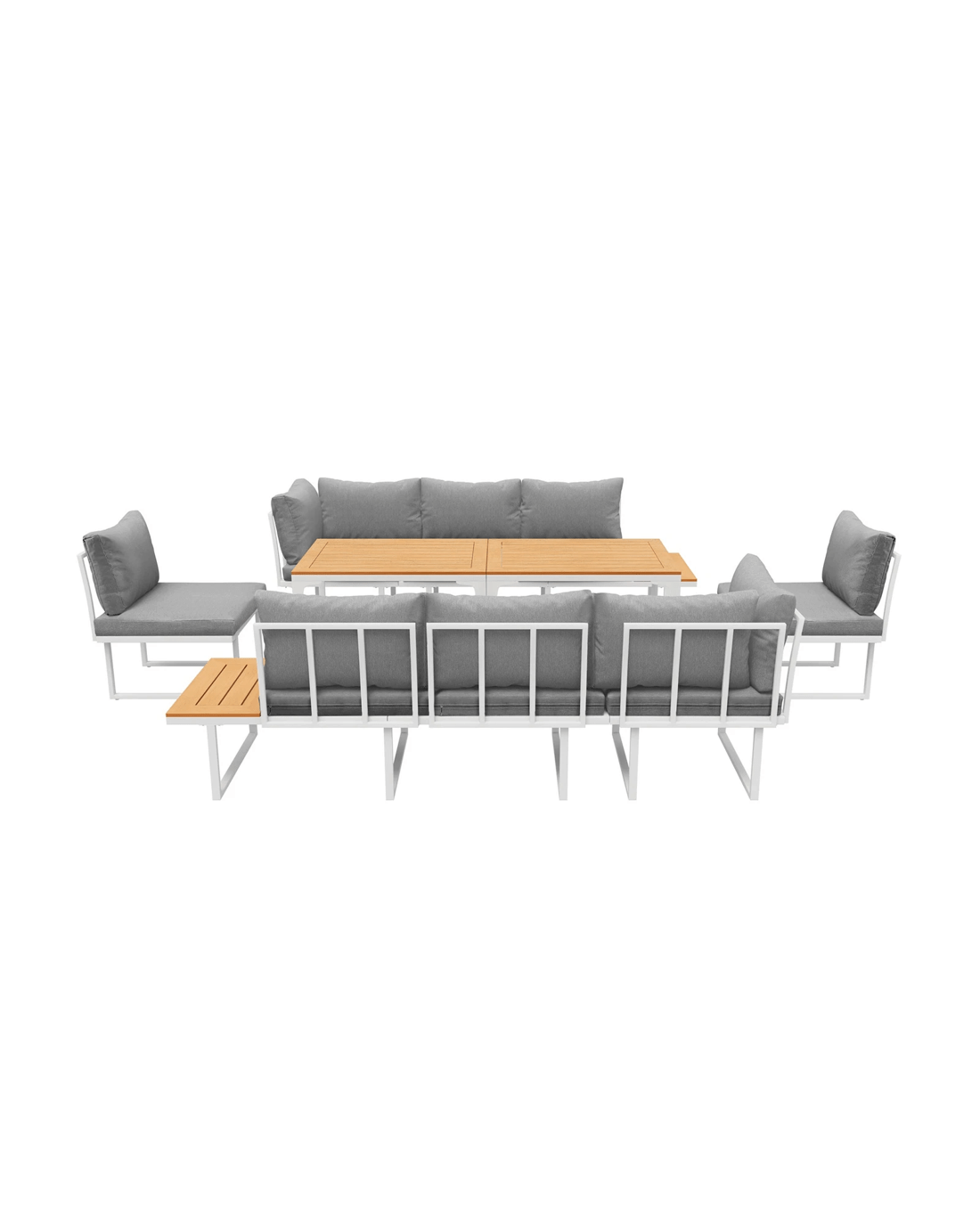 Naturally, our outdoor set is made to withstand the weather elements such as good water and UV resistance, including the removable cushions and pillows, to have you enjoying your marvellous seating with minimum fuss and maximum satisfaction under the sun, moon and stars. Better still, use the set indoors if it suits your decor ideas. After all, any fine set as wonderful as the Livsip Outdoor Sofa Dining Set should not be confined to just one place in your home.