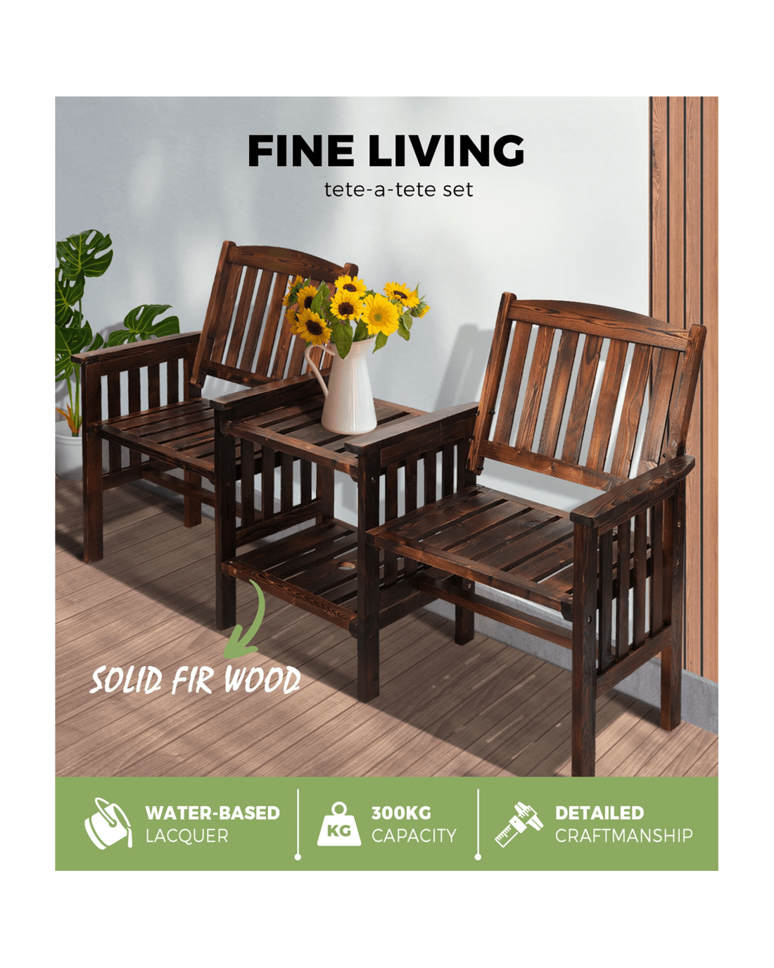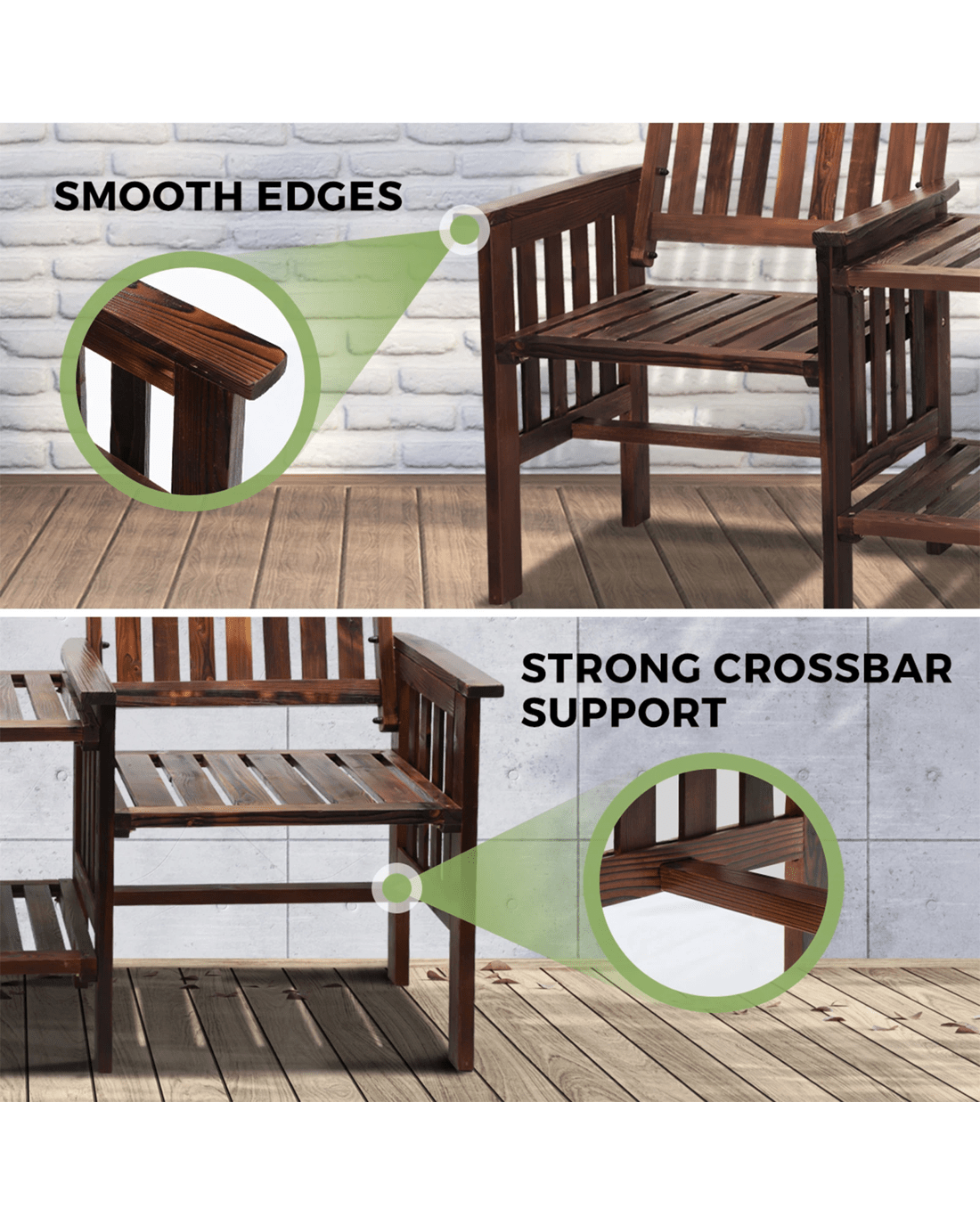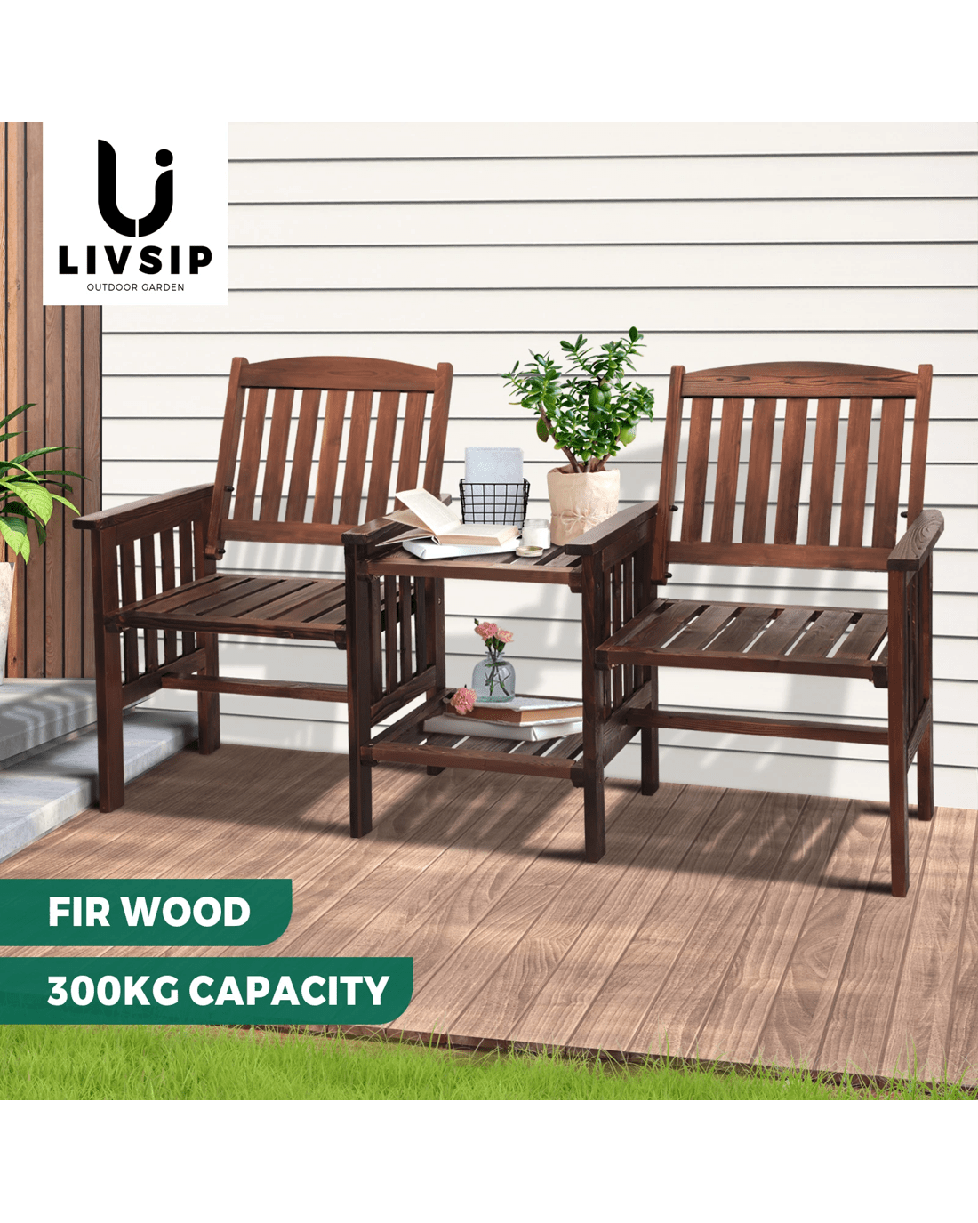 Livsip Garden Bench Wooden Outdoor Table & Chair Set - Charcoal