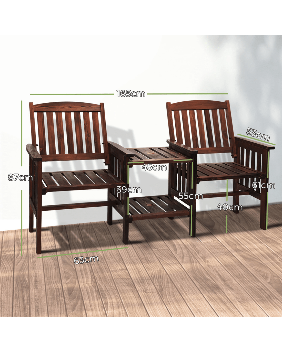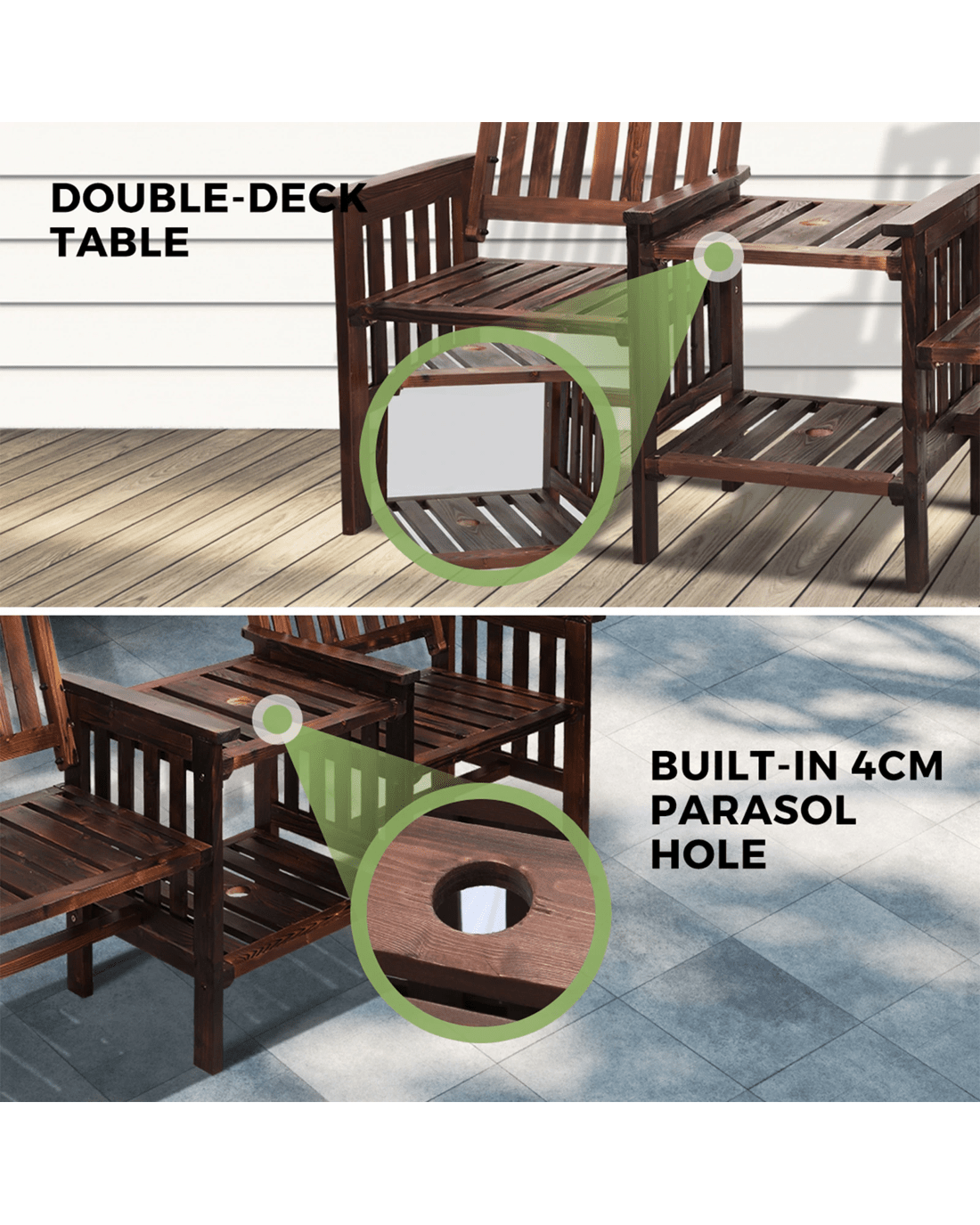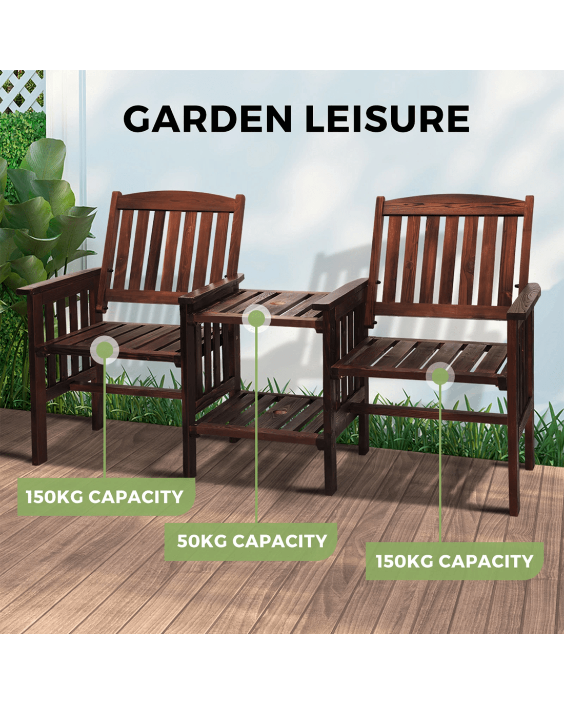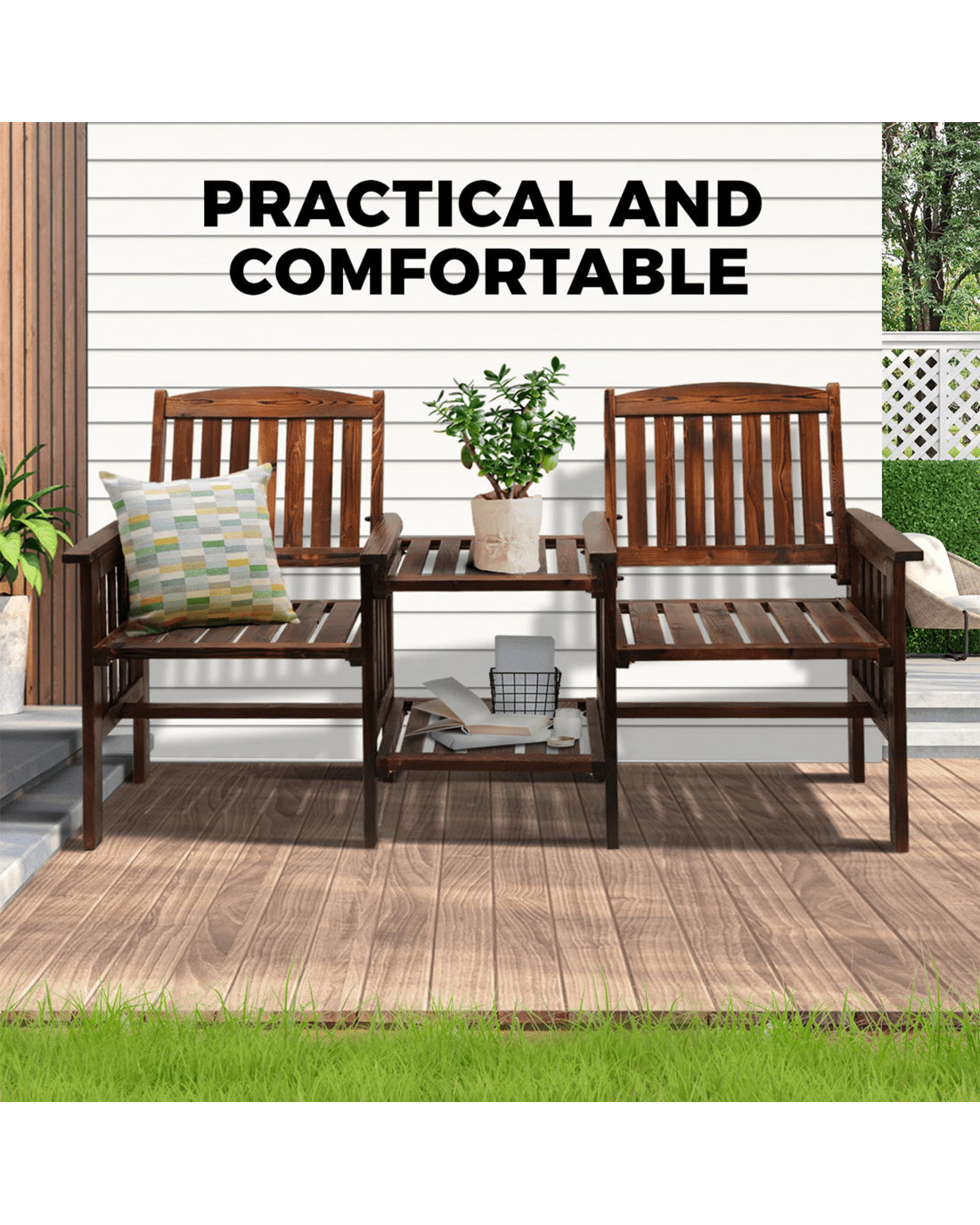 Livsip Garden Bench Wooden Outdoor Table & Chair Set - Charcoal