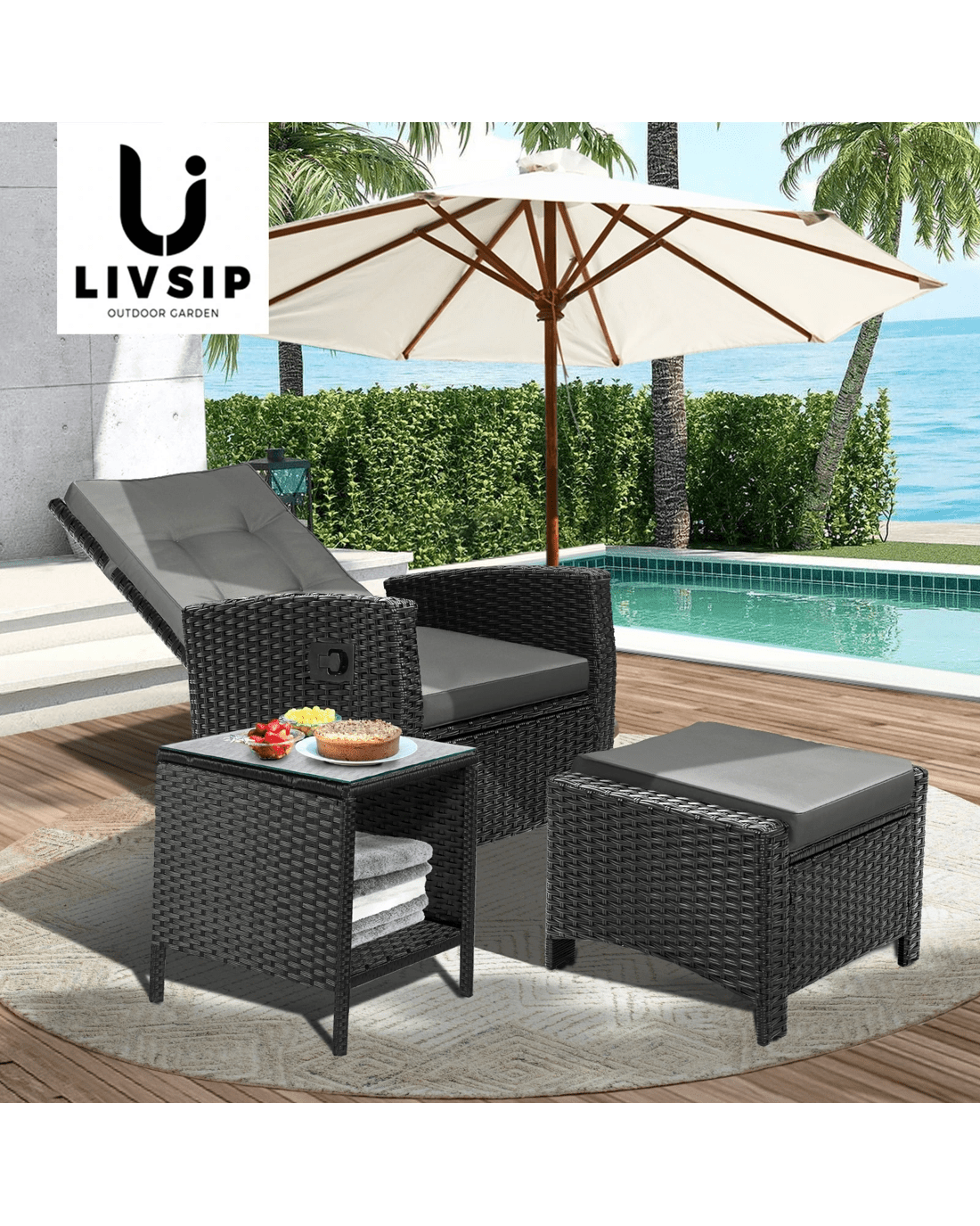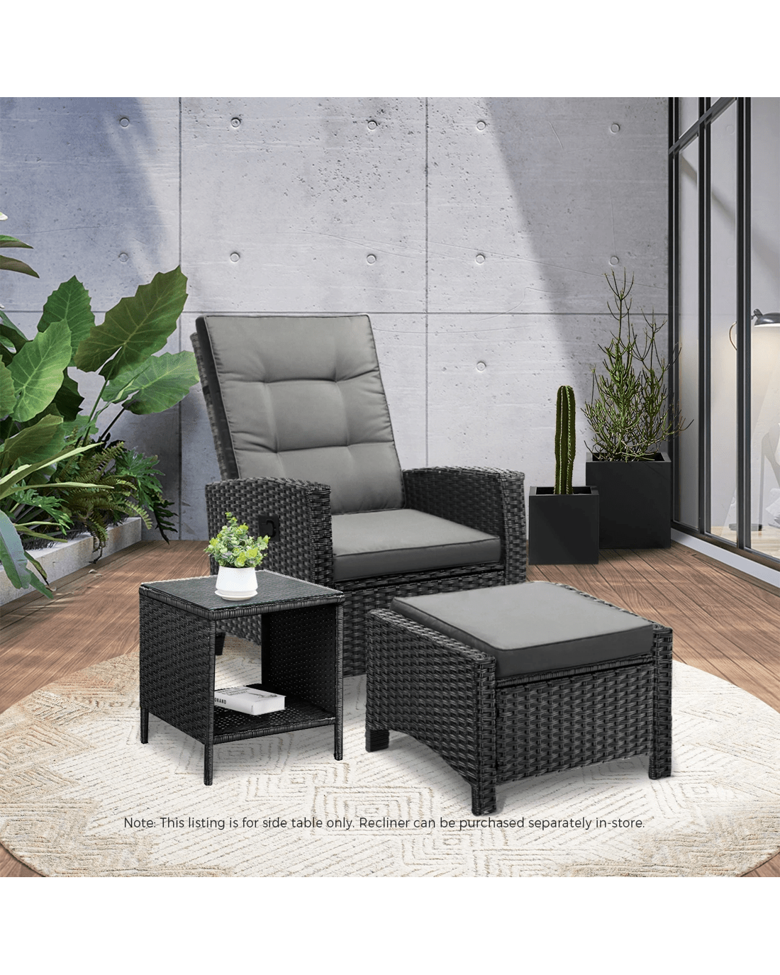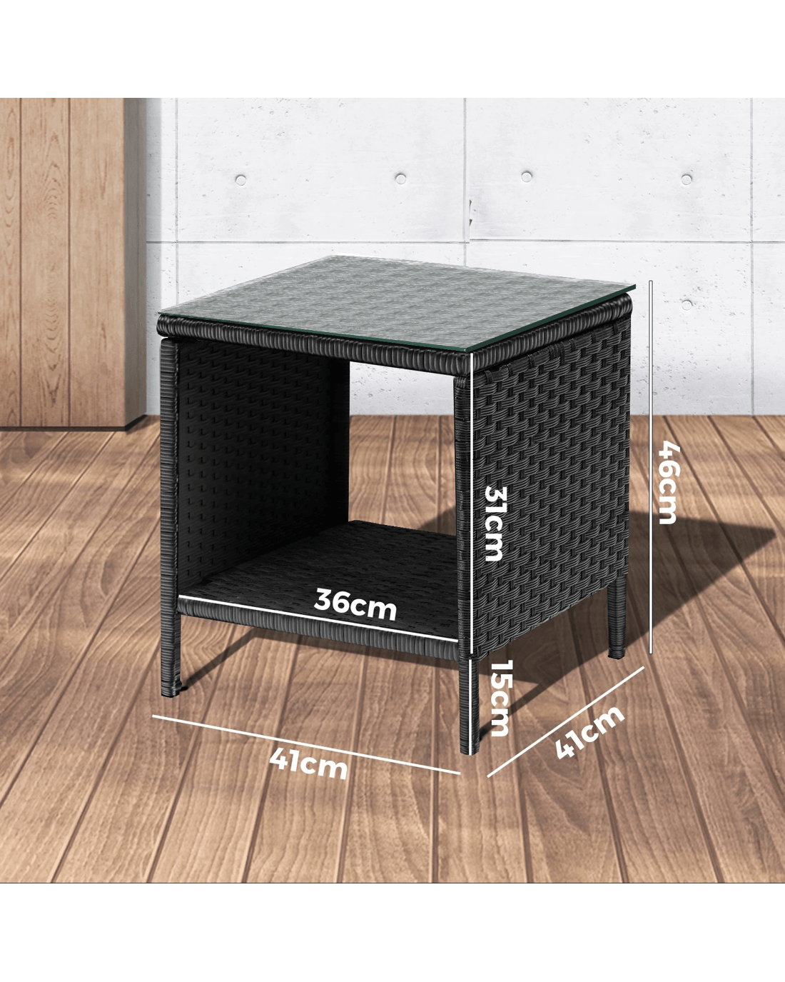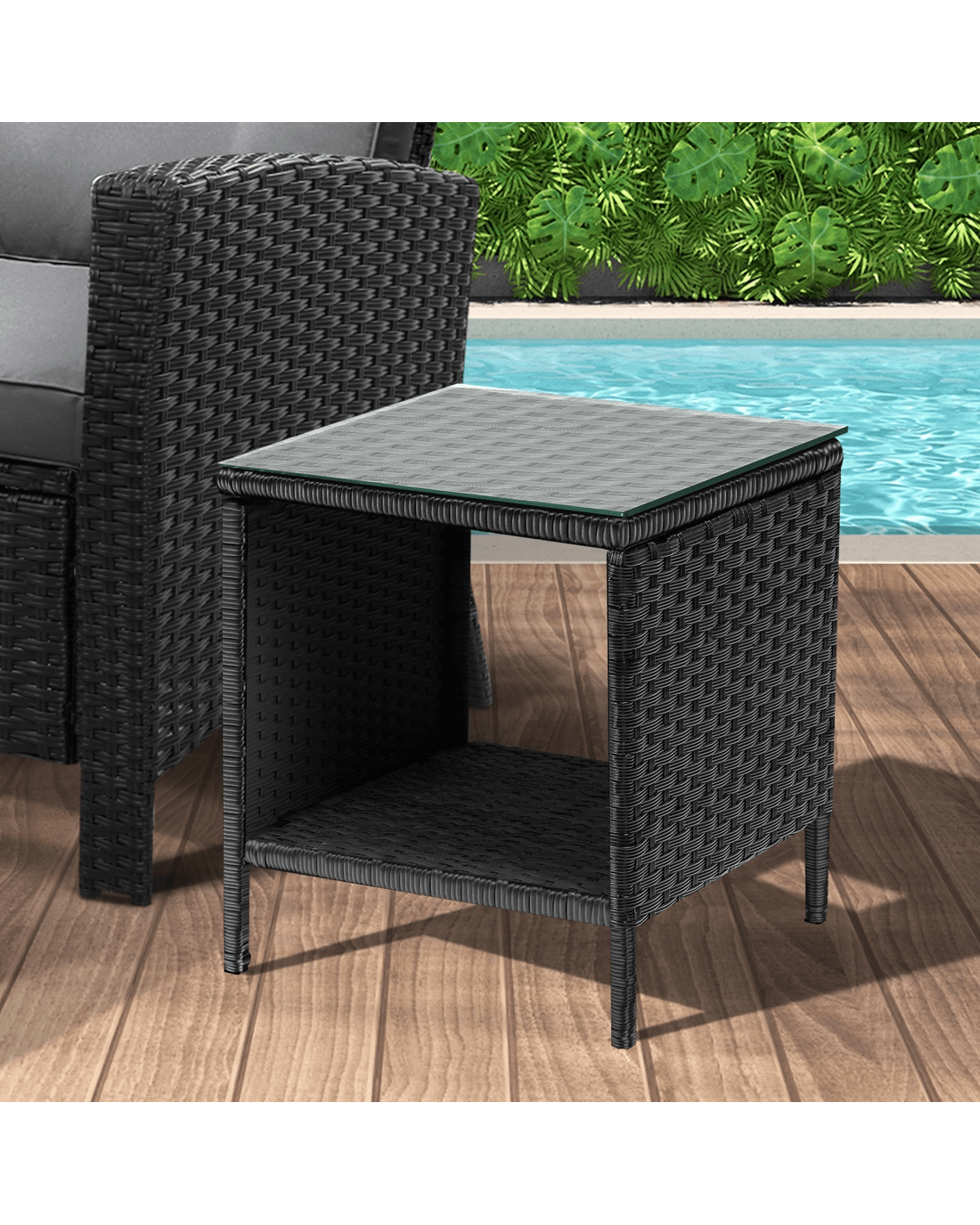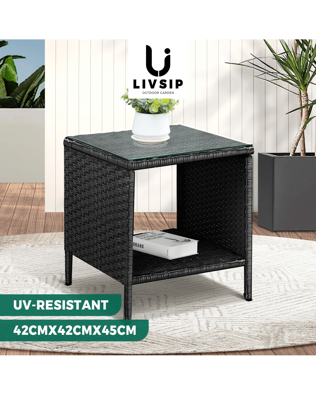 Livsip Garden Table Rattan Cafe Table Outdoor Garden Furniture Side Table - Black