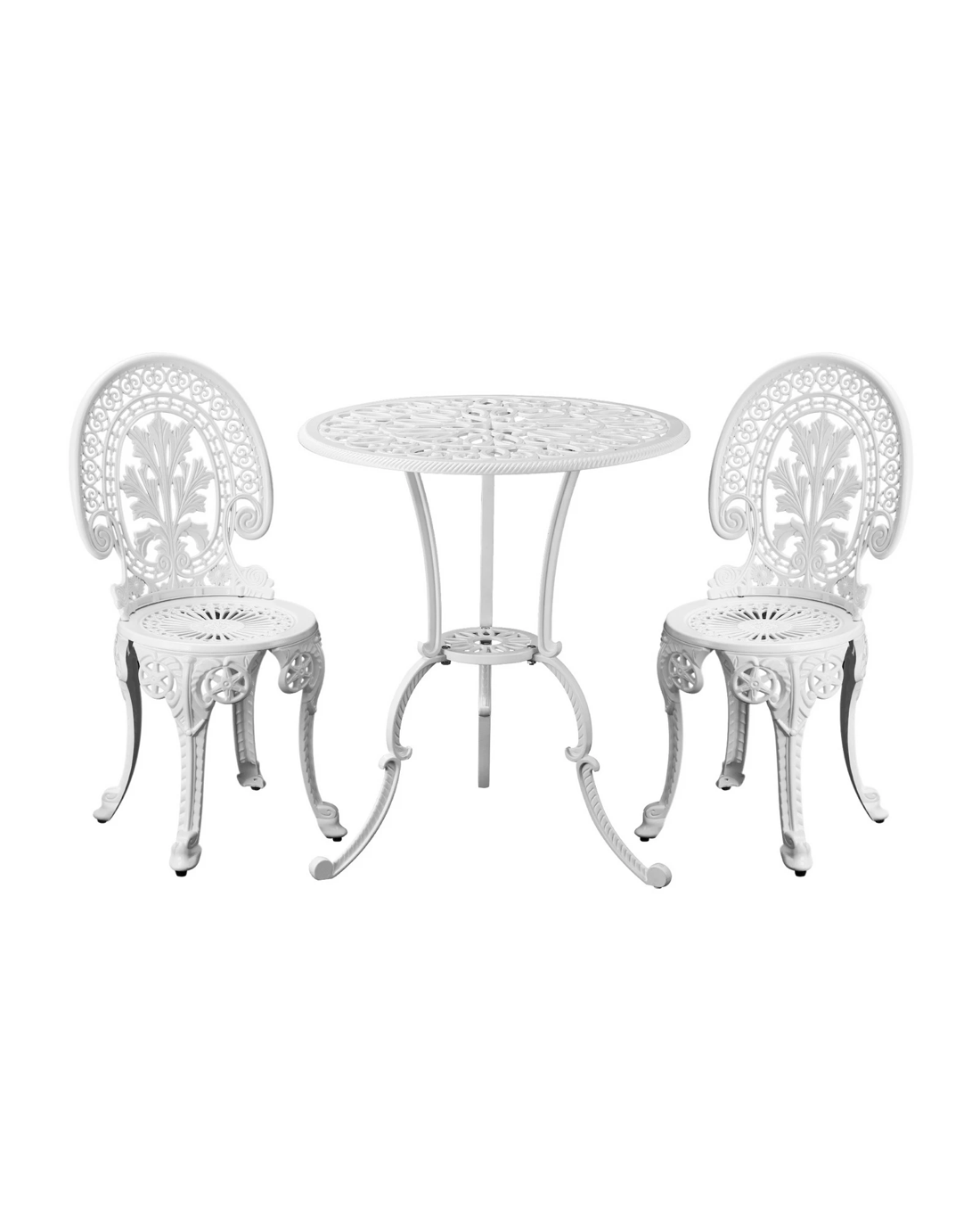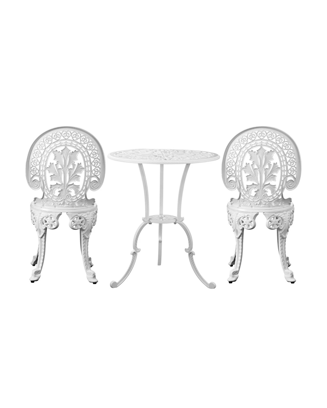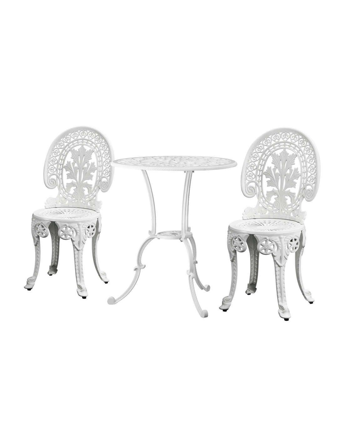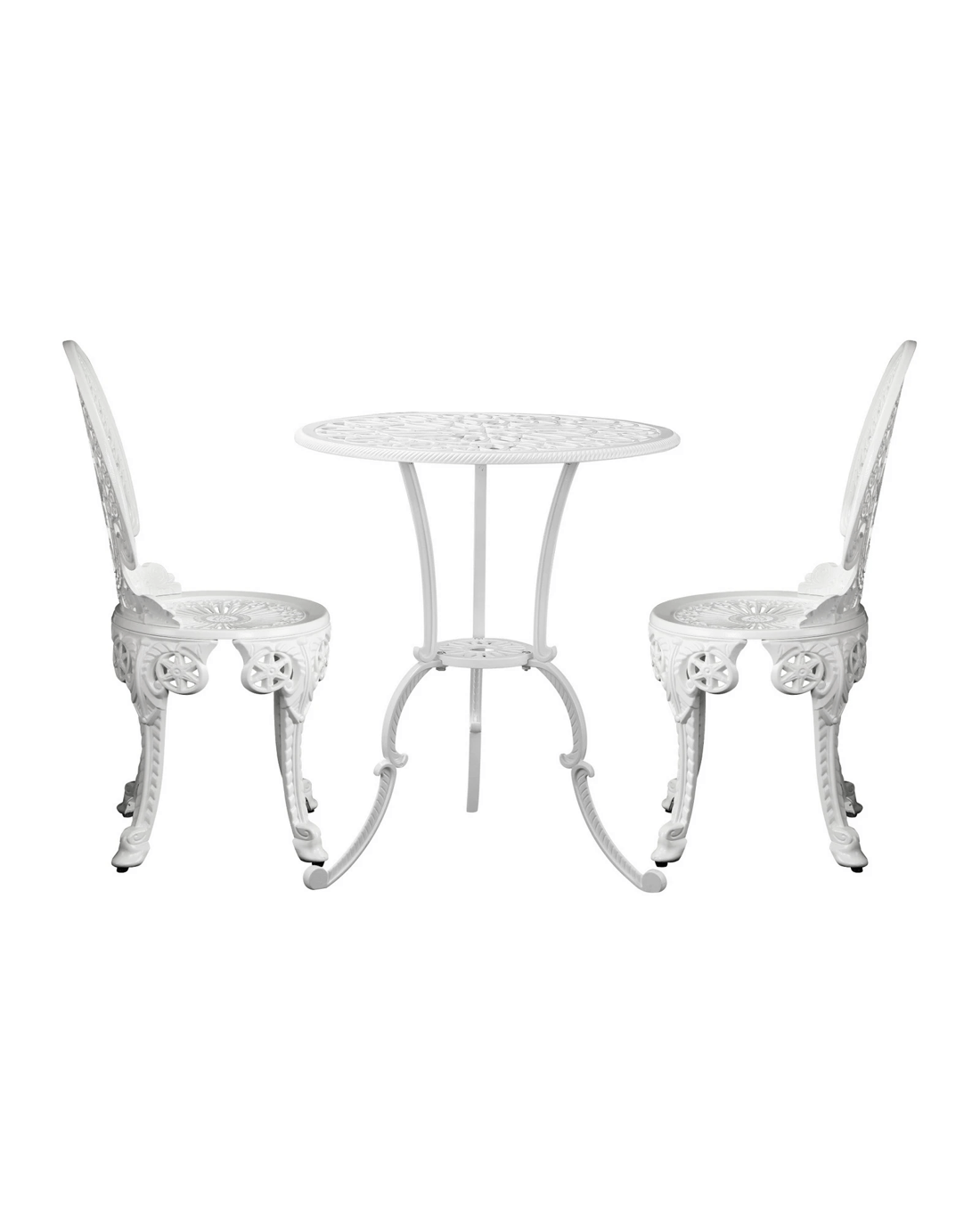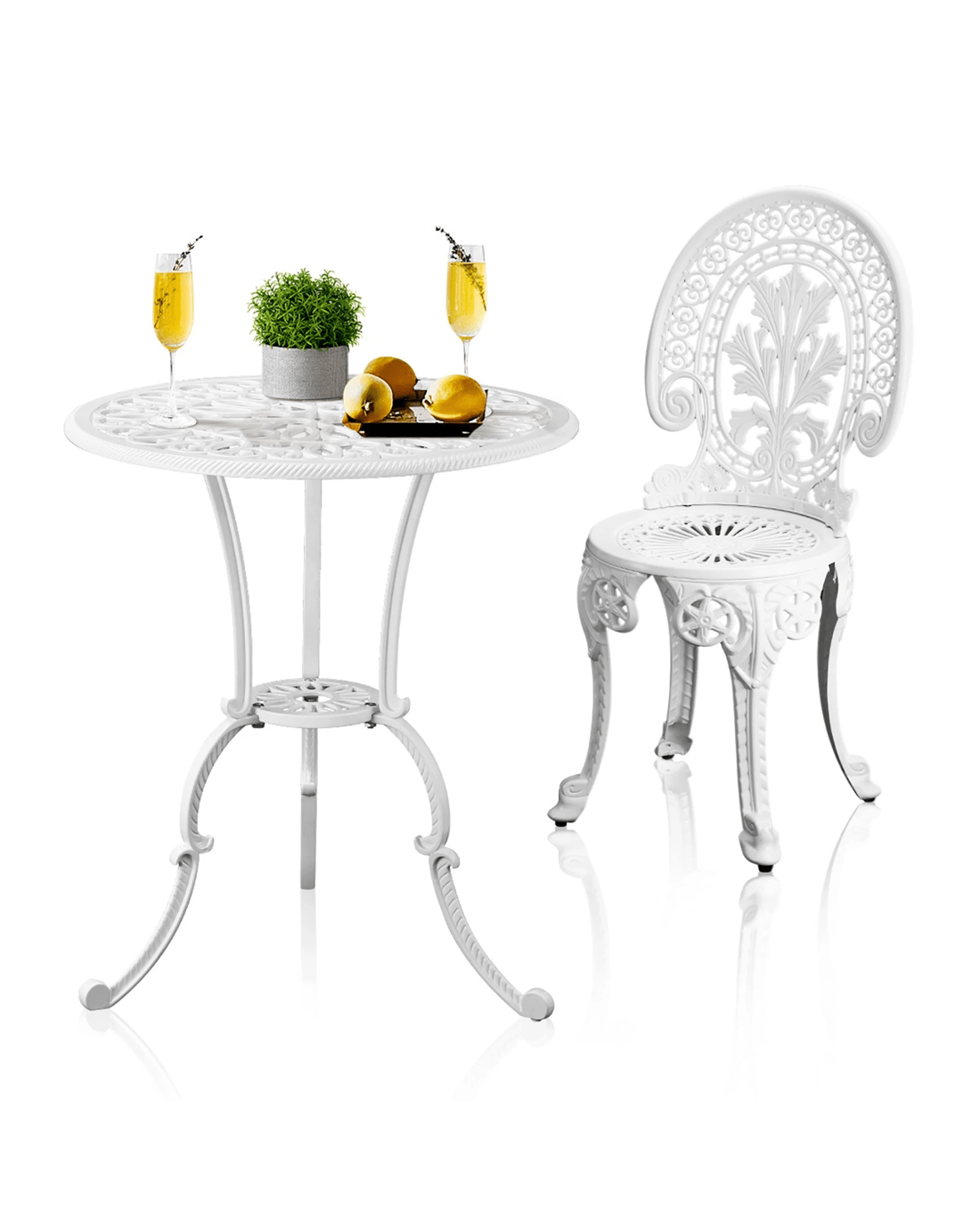 Livsip Outdoor Bistro Setting Cast Aluminium Table And Chair 3pcs Patio Set - White