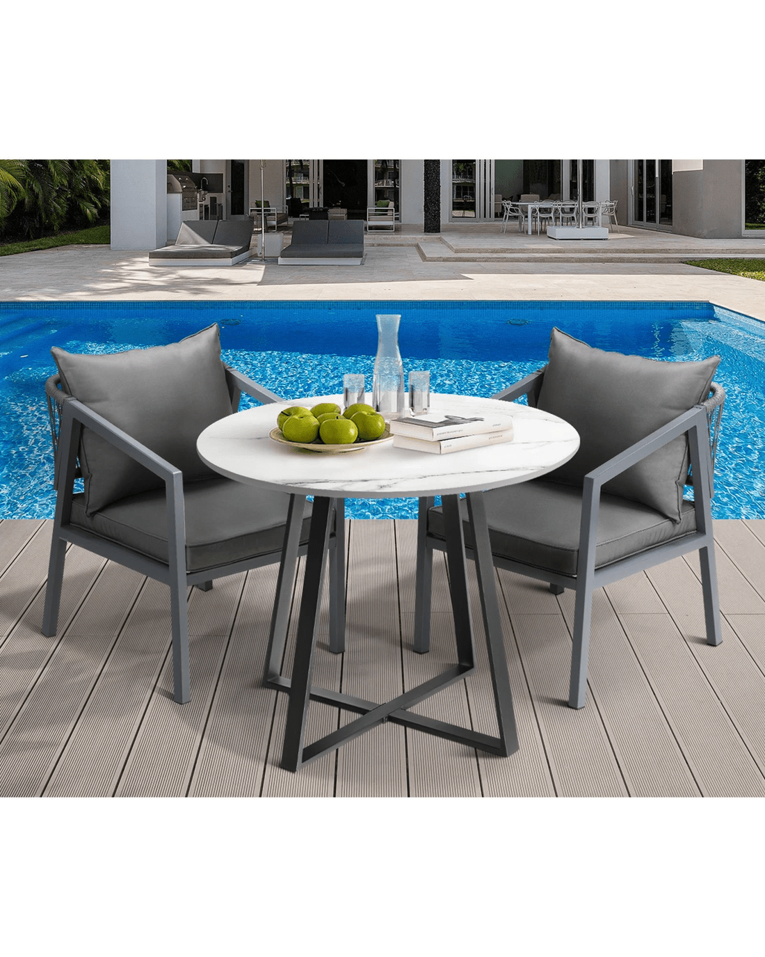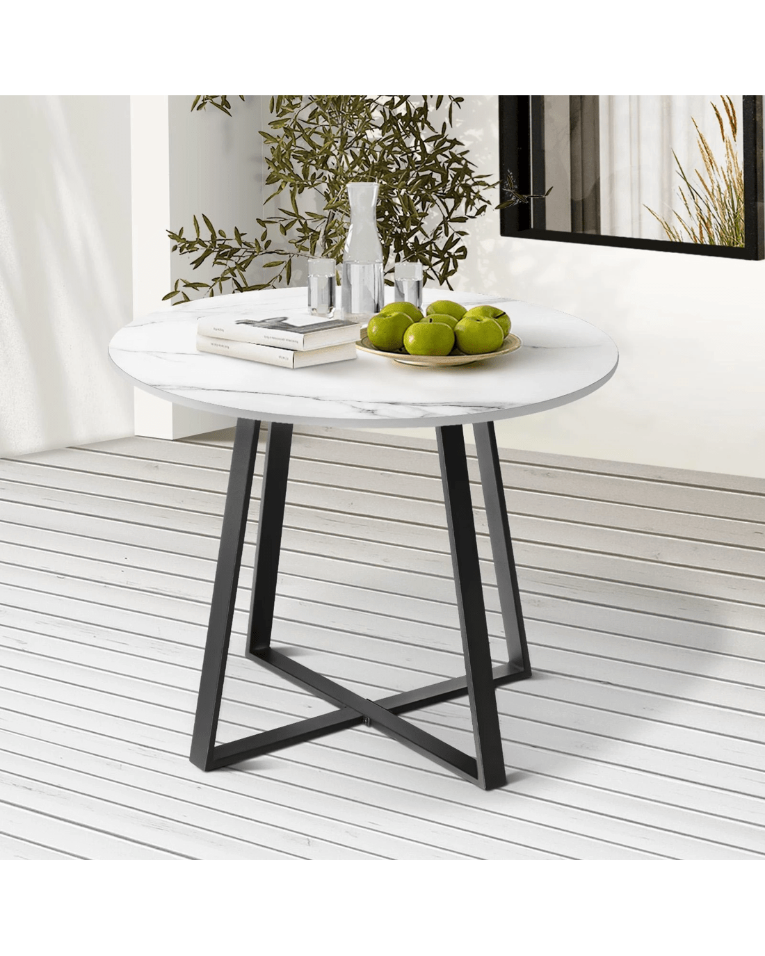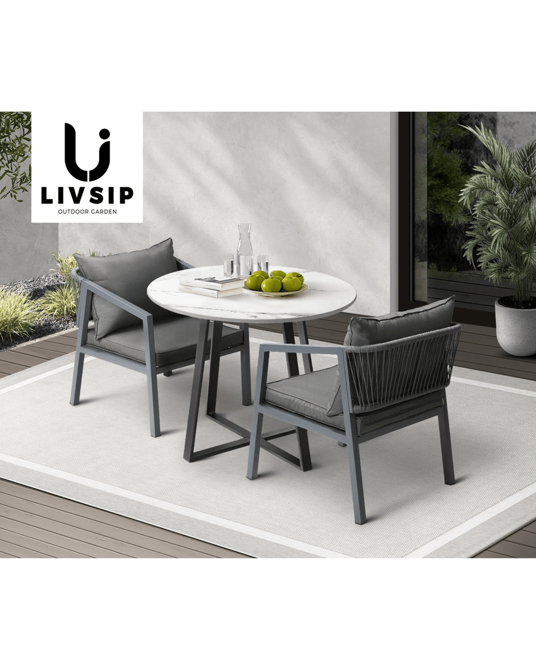 Livsip Outdoor Dining Marble Table 90cm Furniture Patio Garden Bistro Desk - Multi