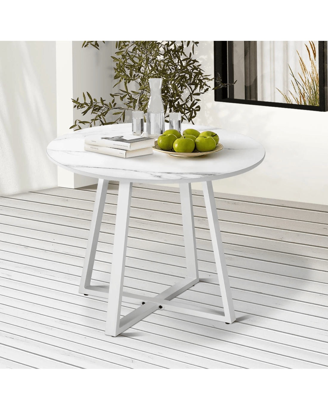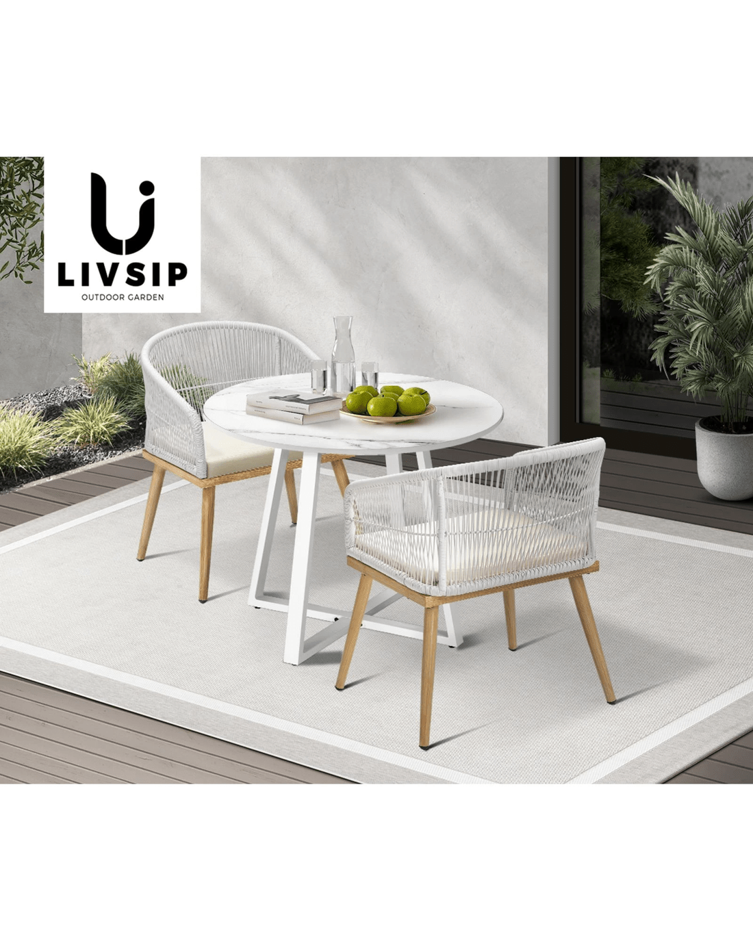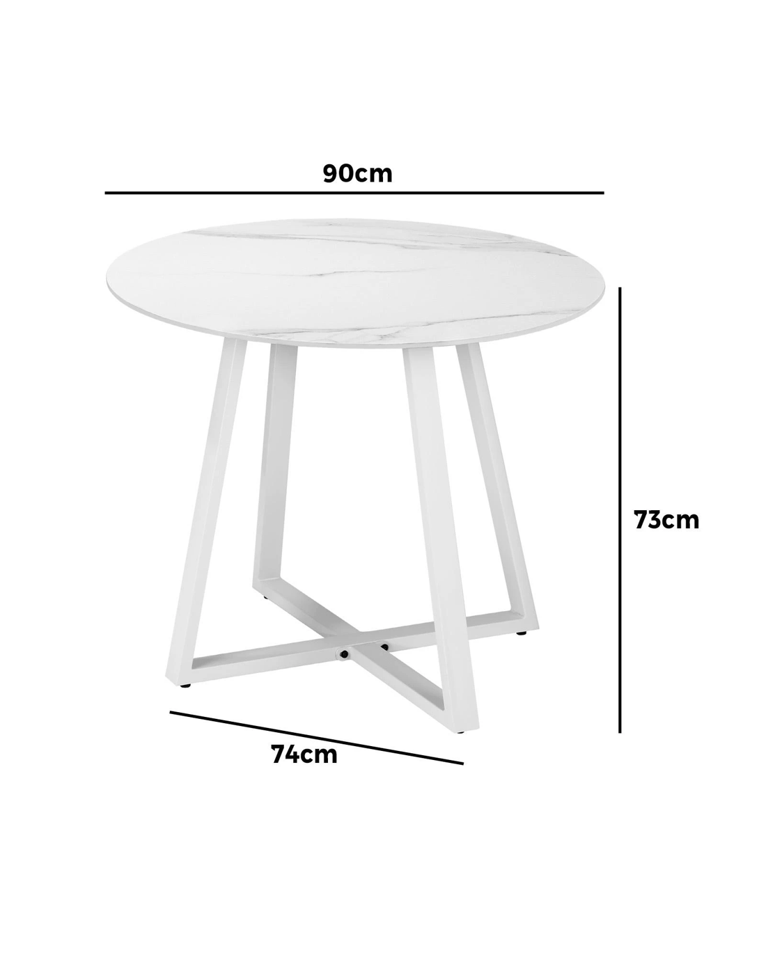 Livsip Outdoor Dining Marble Table Patio Furniture Sintered Stone Top 90cm - White