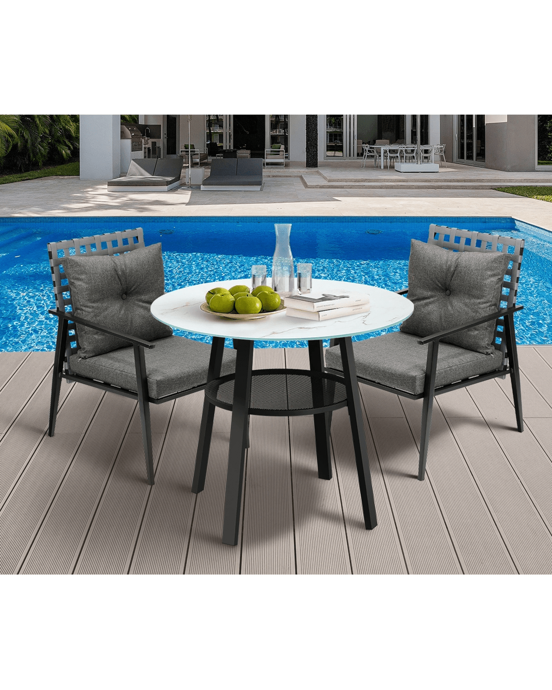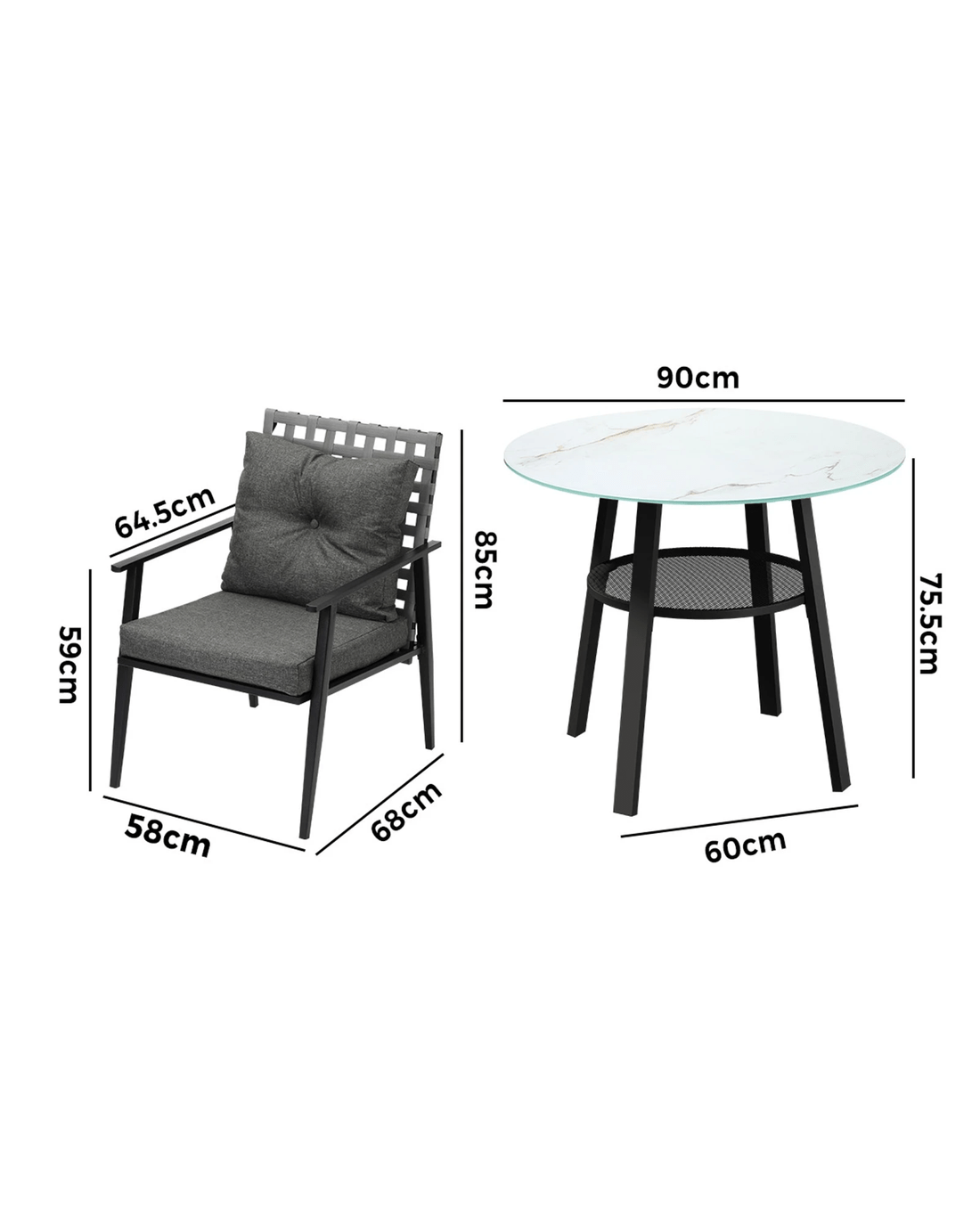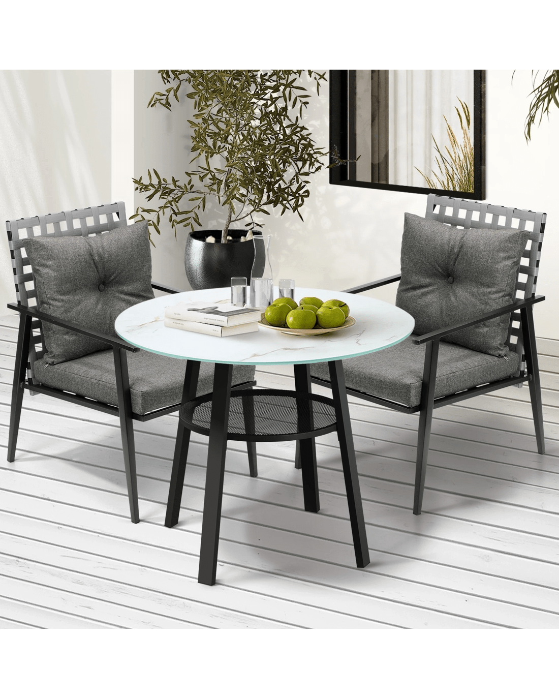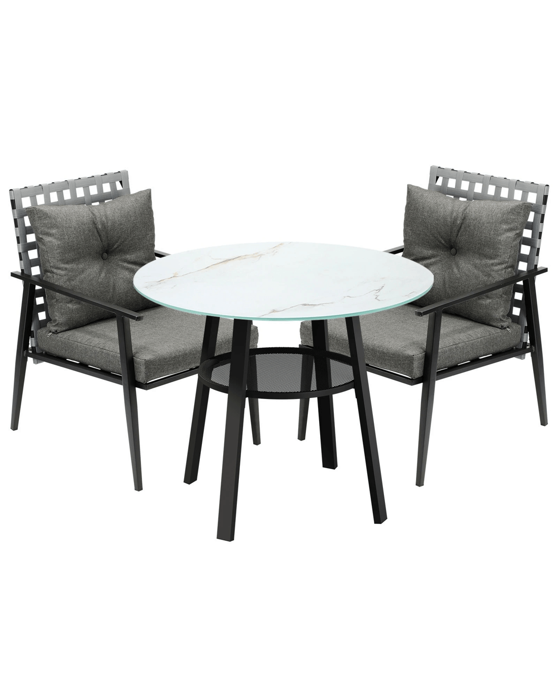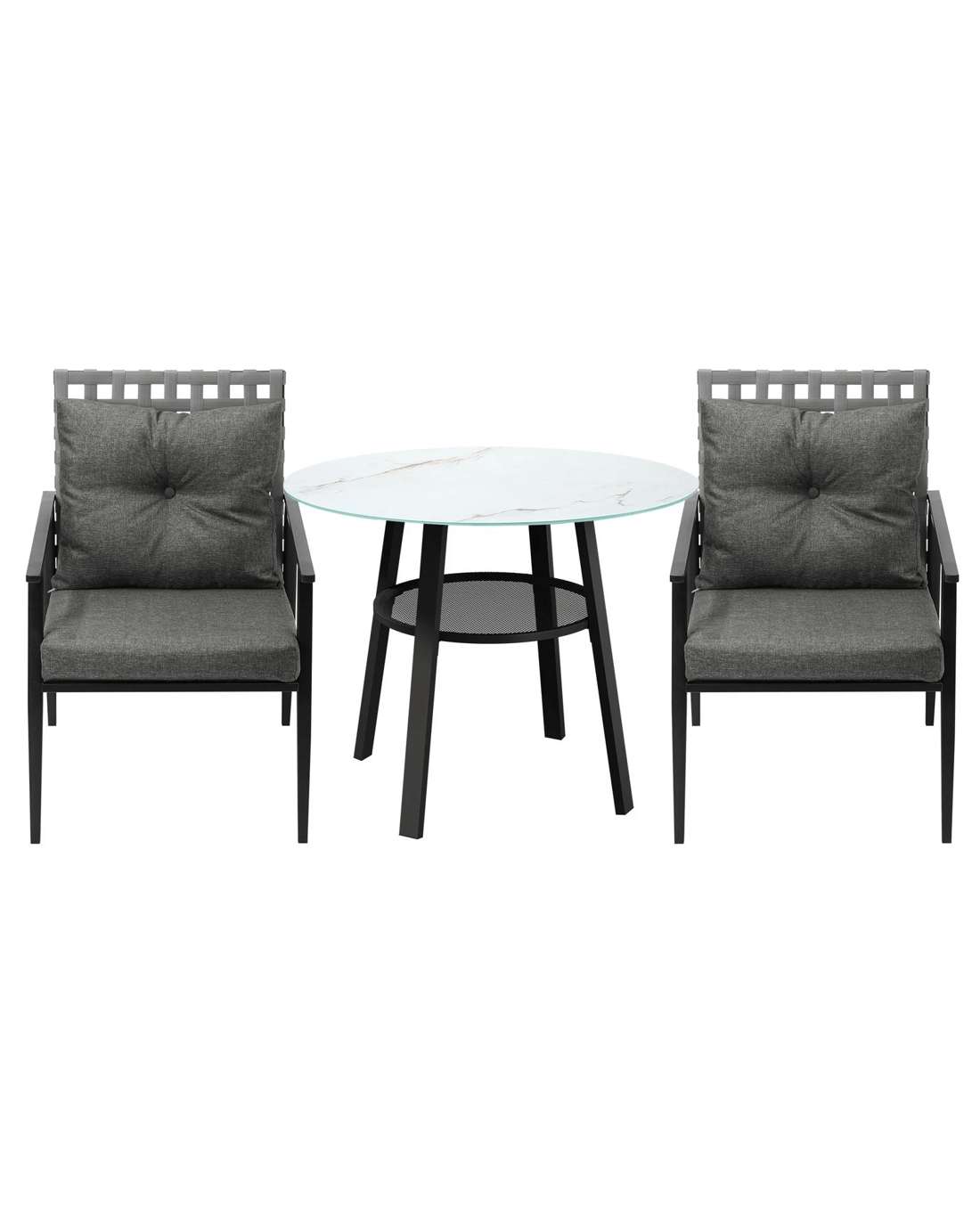 Livsip Outdoor Dining Set 2 Seater Patio Furniture Rattan Armchair Glass Table - Multi