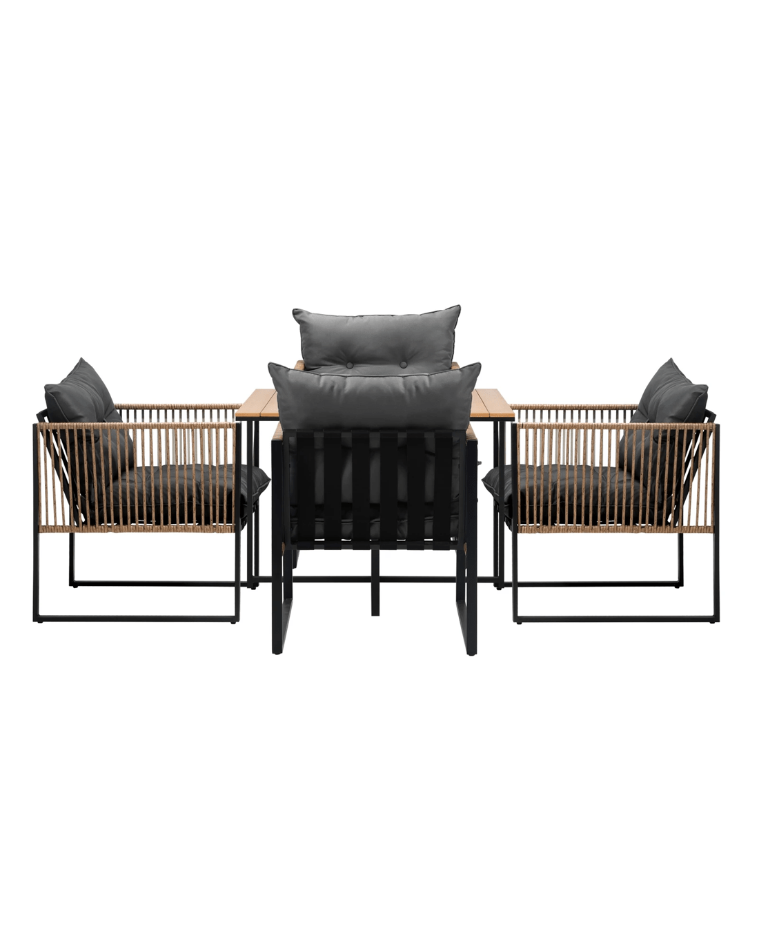 But that is not all our innovative set also includes chairs, offering a space-saving solution that is both practical and visually appealing. The chairs are expertly designed to provide optimal comfort, with comfort contours and supportive cushions that encourage hours of relaxed dining. When not in use, simply slide them neatly beneath the table, instantly transforming your outdoor space into a clutter-free oasis.