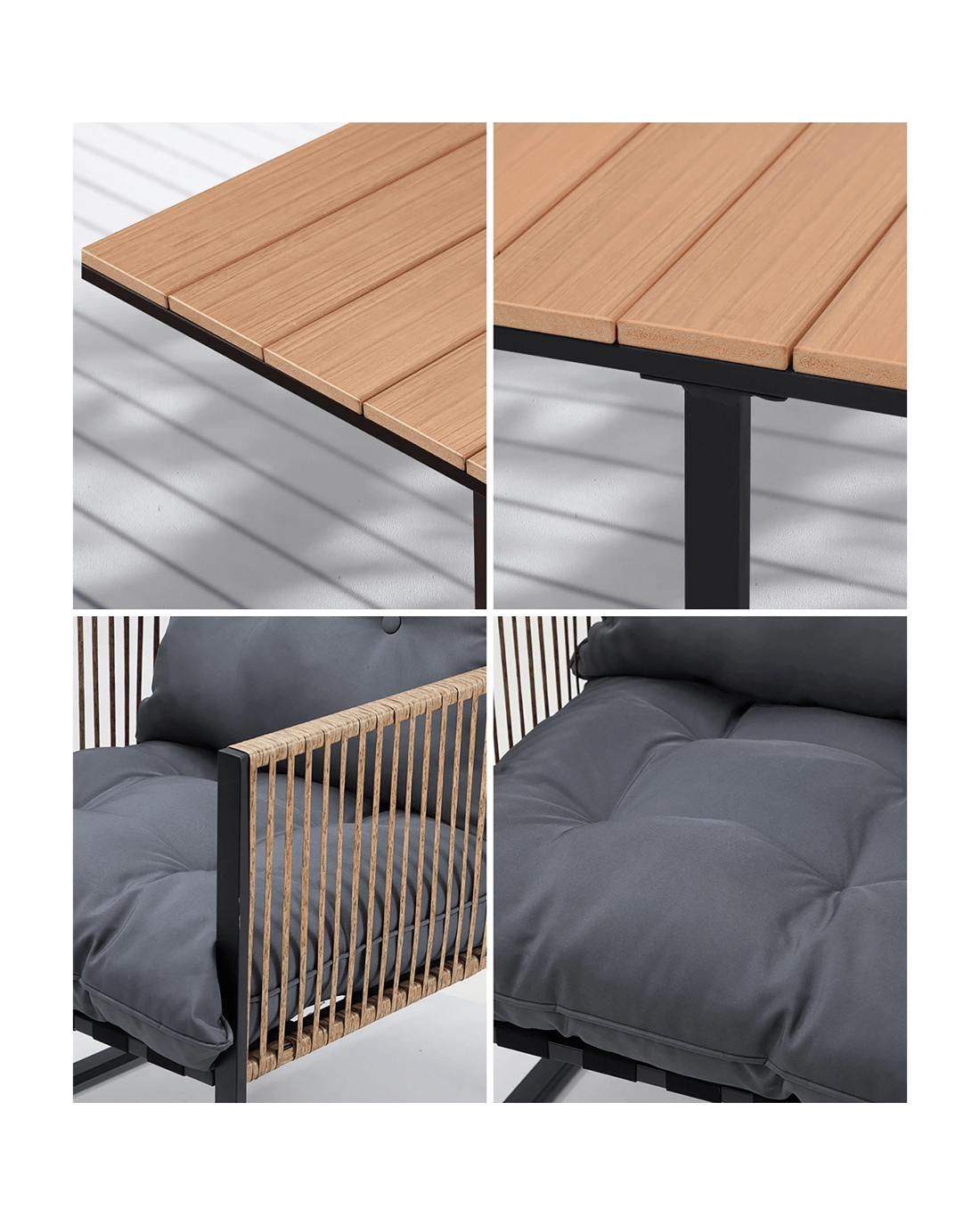 Versatility is key when it comes to outdoor furniture, and our dining table is designed to adapt to a variety of outdoor styles. Its classic design seamlessly blends with different aesthetics, making it a perfect fit for any outdoor setting. Pair it with chairs of your choice to create a personalized look that reflects your unique taste and complements your outdoor ambiance.