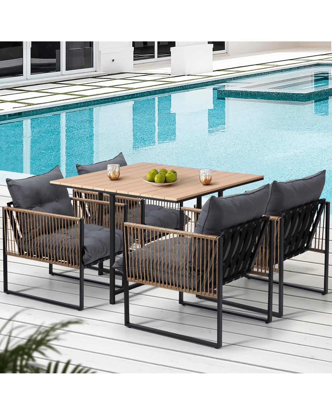 Experience the epitome of outdoor dining with our new Livsip Outdoor Dining Set. Meticulously crafted with durability, style, and functionality in mind, this dining set becomes the perfect centerpiece for your outdoor entertaining and culinary delights.