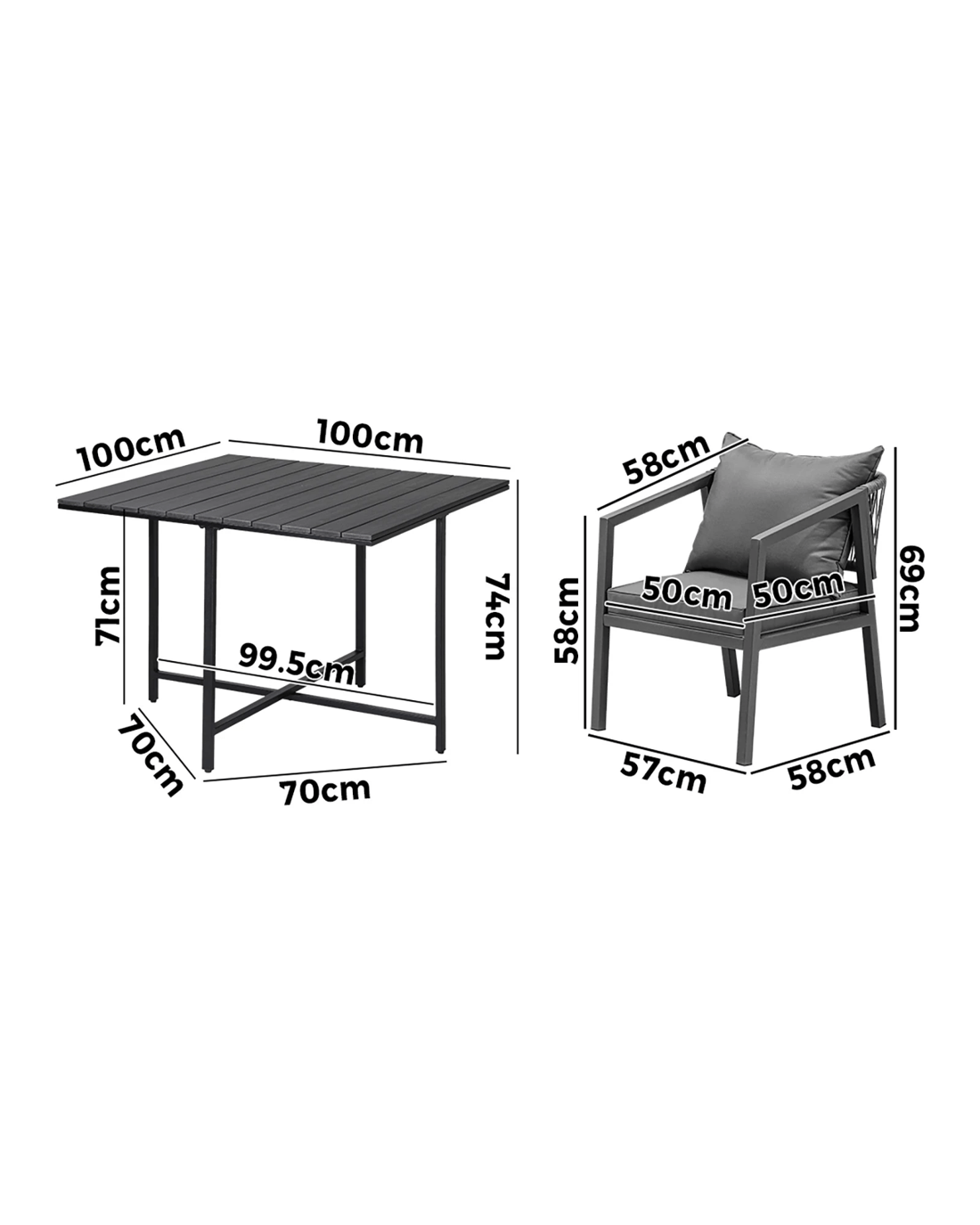 Livsip Outdoor Dining Set Patio Furniture Garden Balck Table Setting 4 Seater - Multi