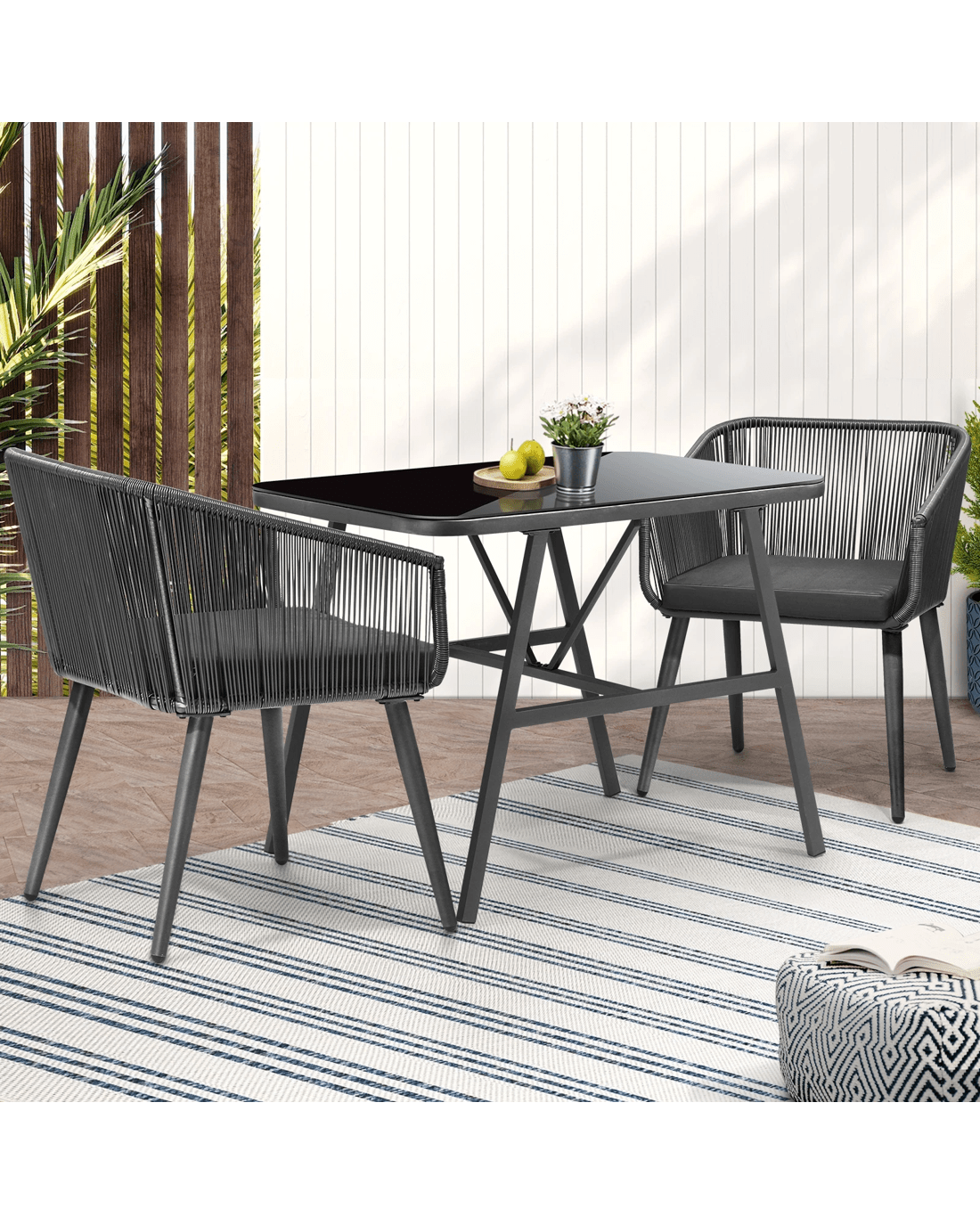 Sold by Kamprad's Oikos 1943Livsip Outdoor Dining Setting 3 Piece Lounge Patio Furniture Table Chairs Set - Grey