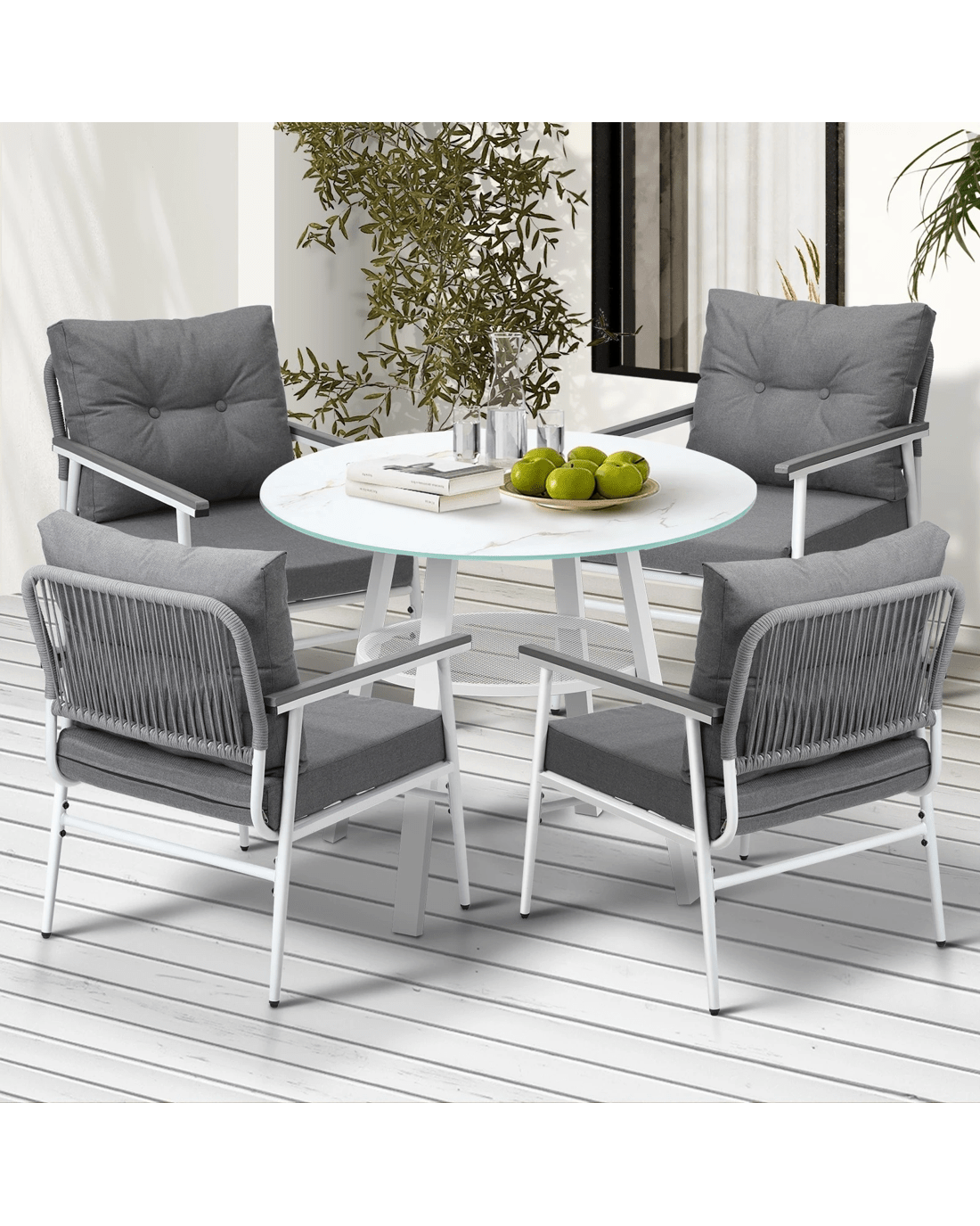 Livsip Outdoor Dining Setting Patio Furniture Set 4 Seater Tempered Glass Table - Multi