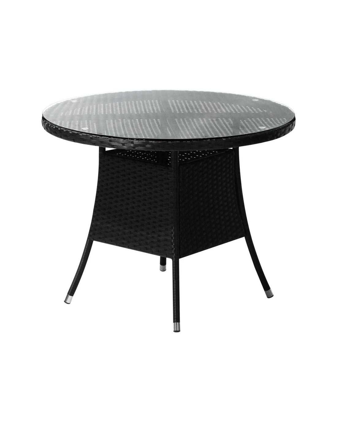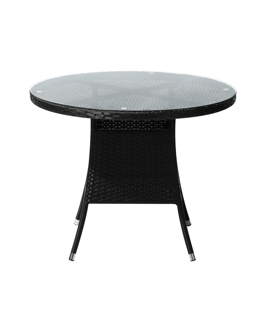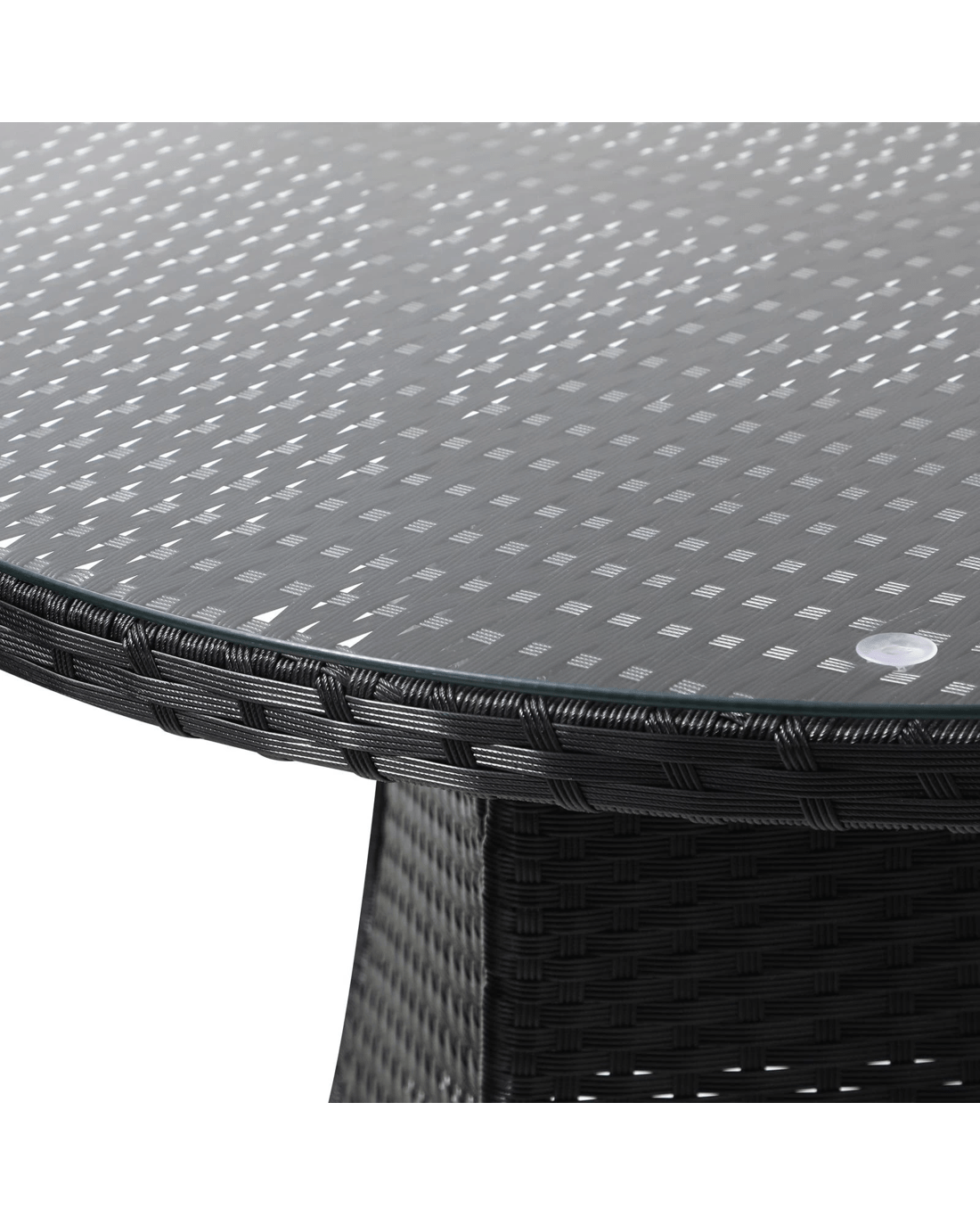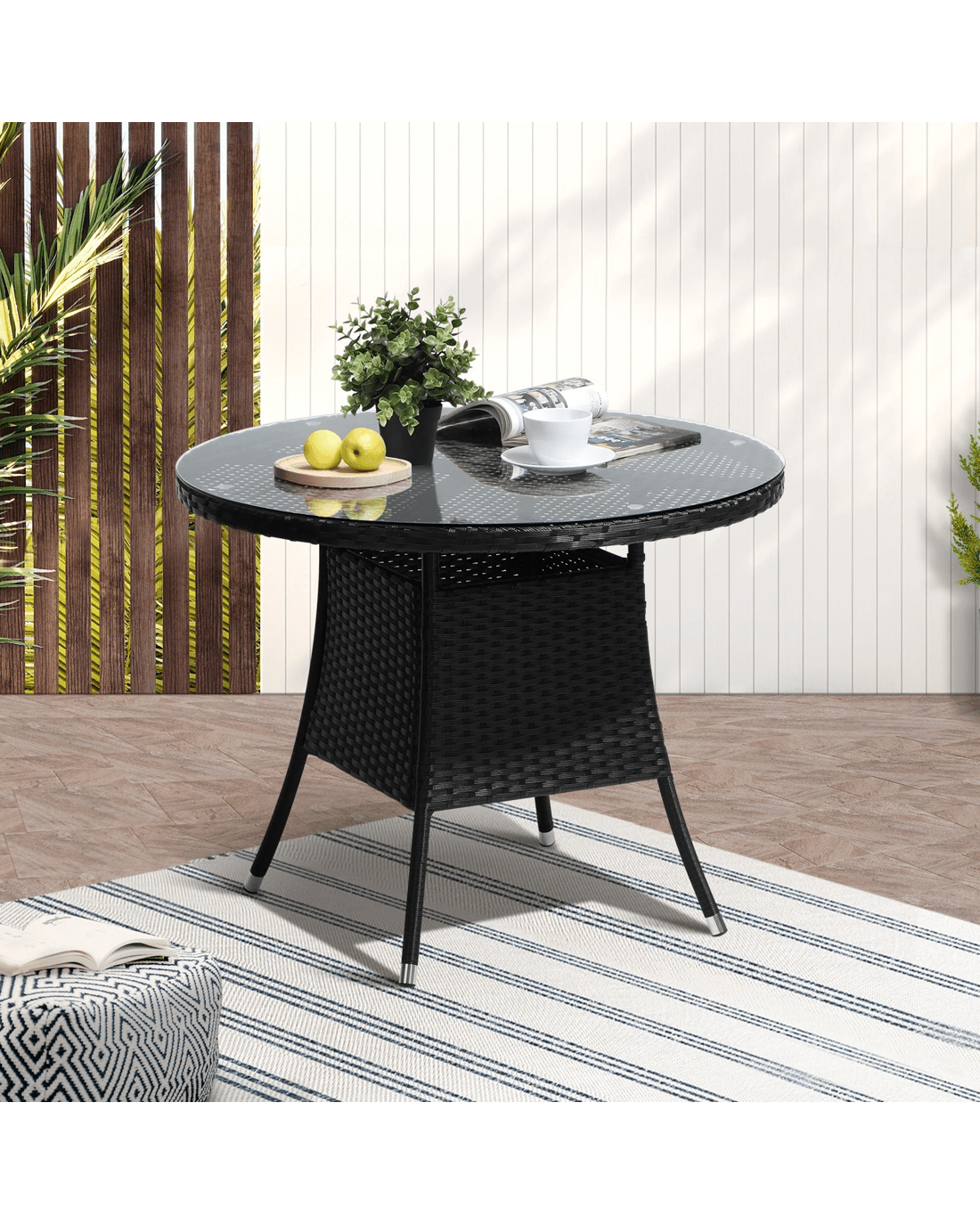 Livsip Outdoor Dining Table 90cm Round Rattan Glass Table Patio Furniture - Black