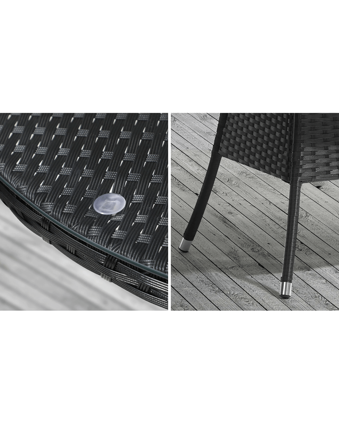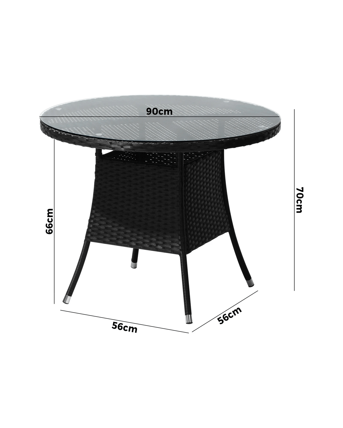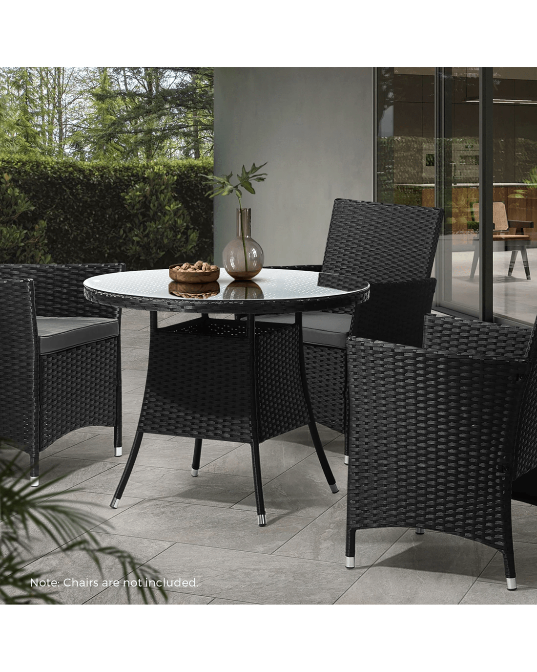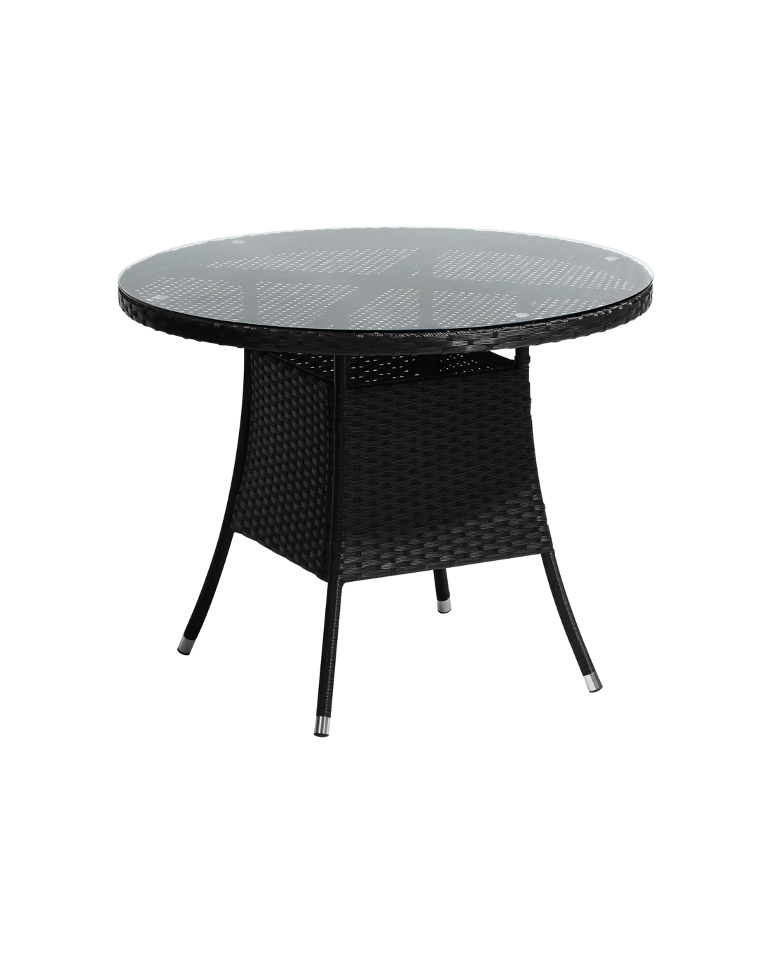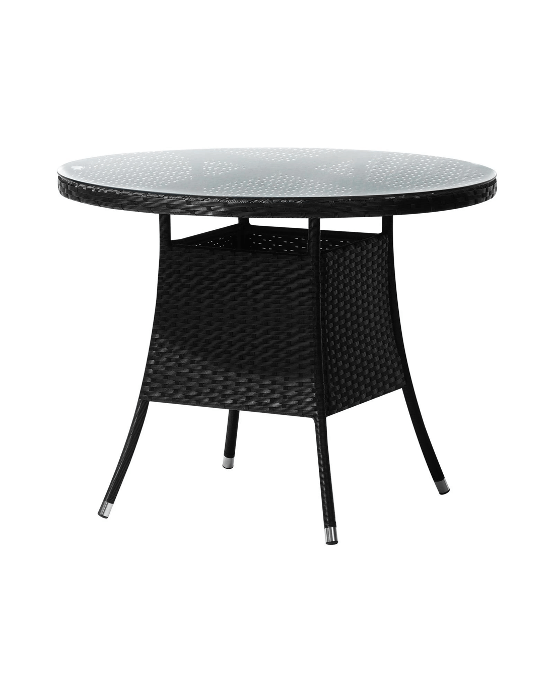 Livsip Outdoor Dining Table 90cm Round Rattan Glass Table Patio Furniture - Black