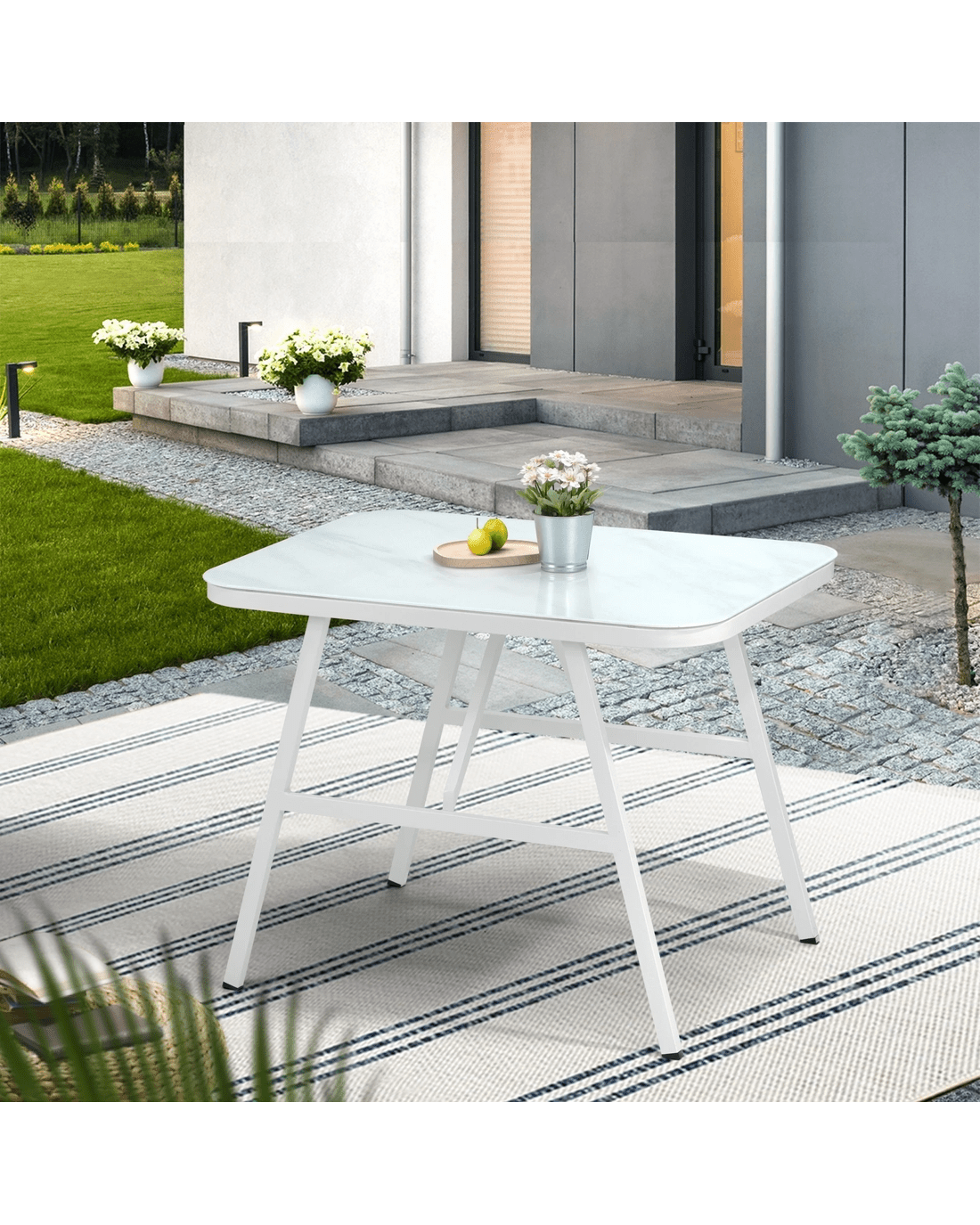 Livsip Outdoor Dining Table Furniture Patio Garden Indoor White Marble-style - White