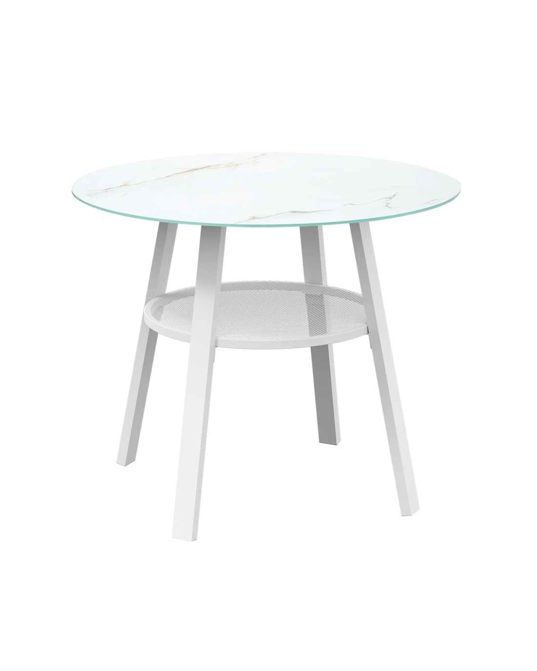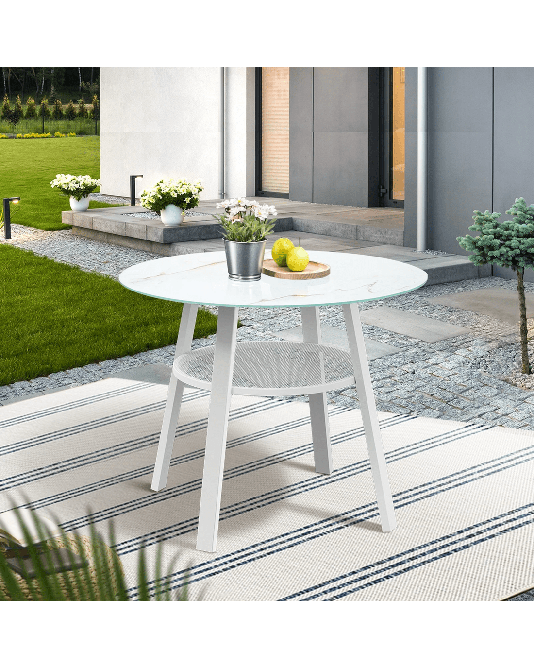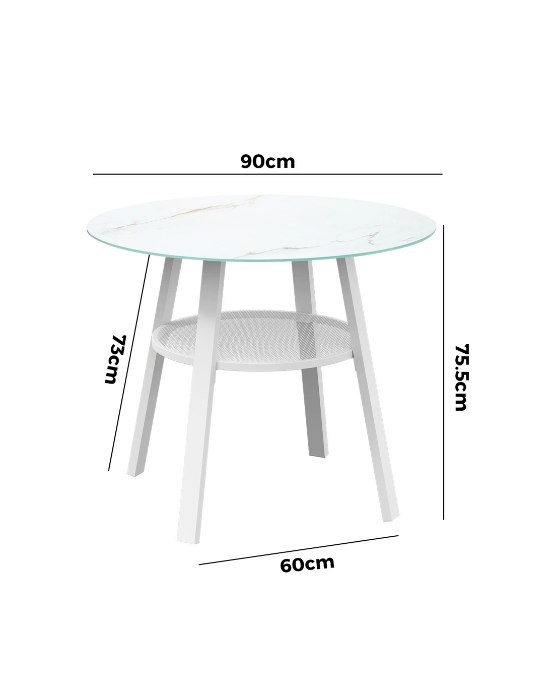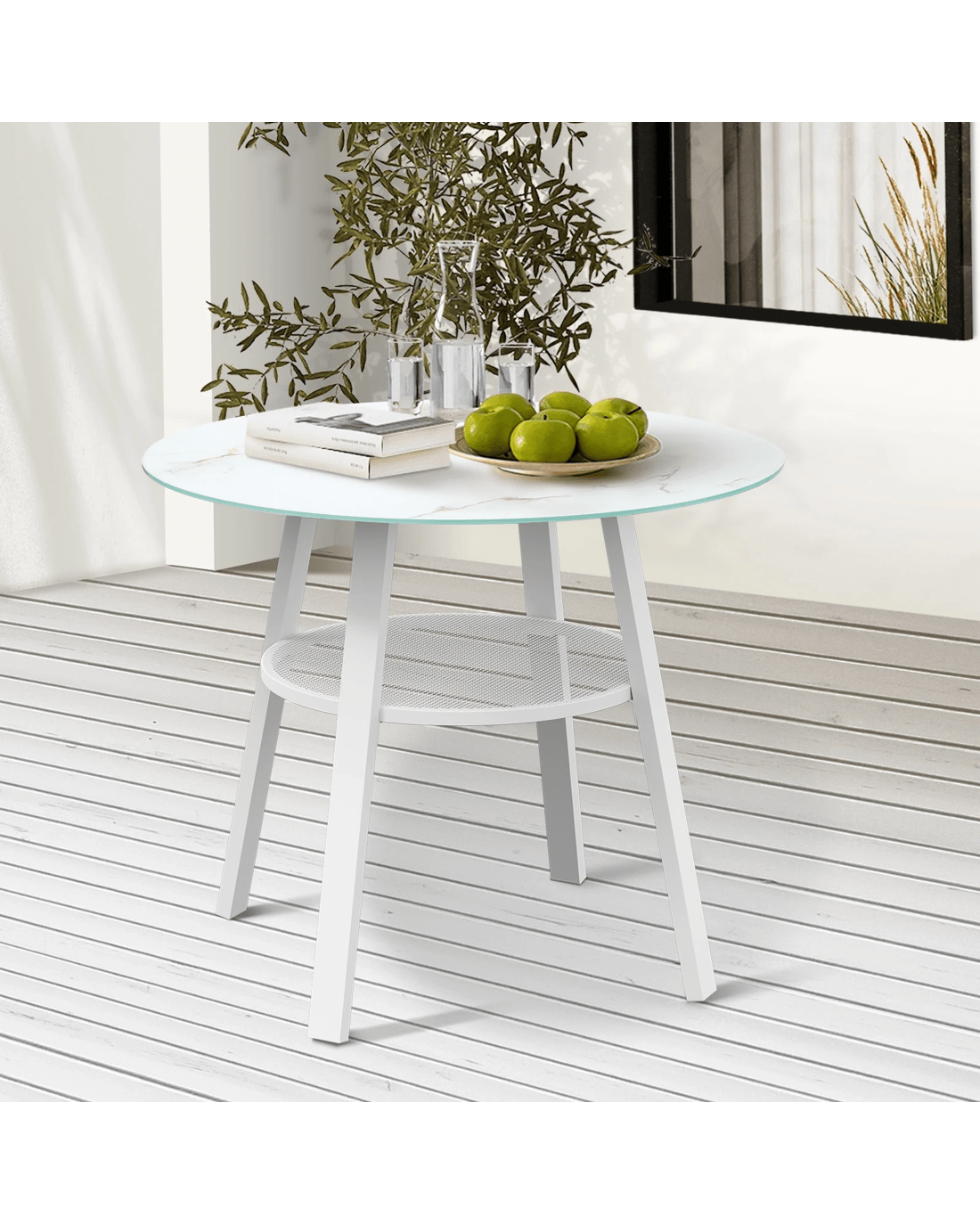 Livsip Outdoor Dining Table W/ Storage Shelf Patio Furniture 90cm - White
