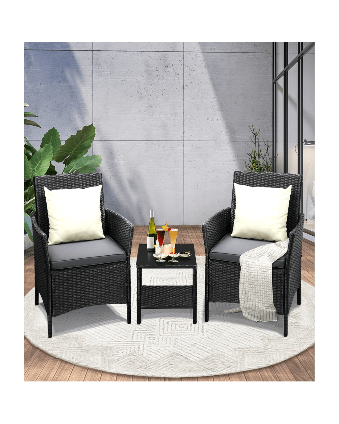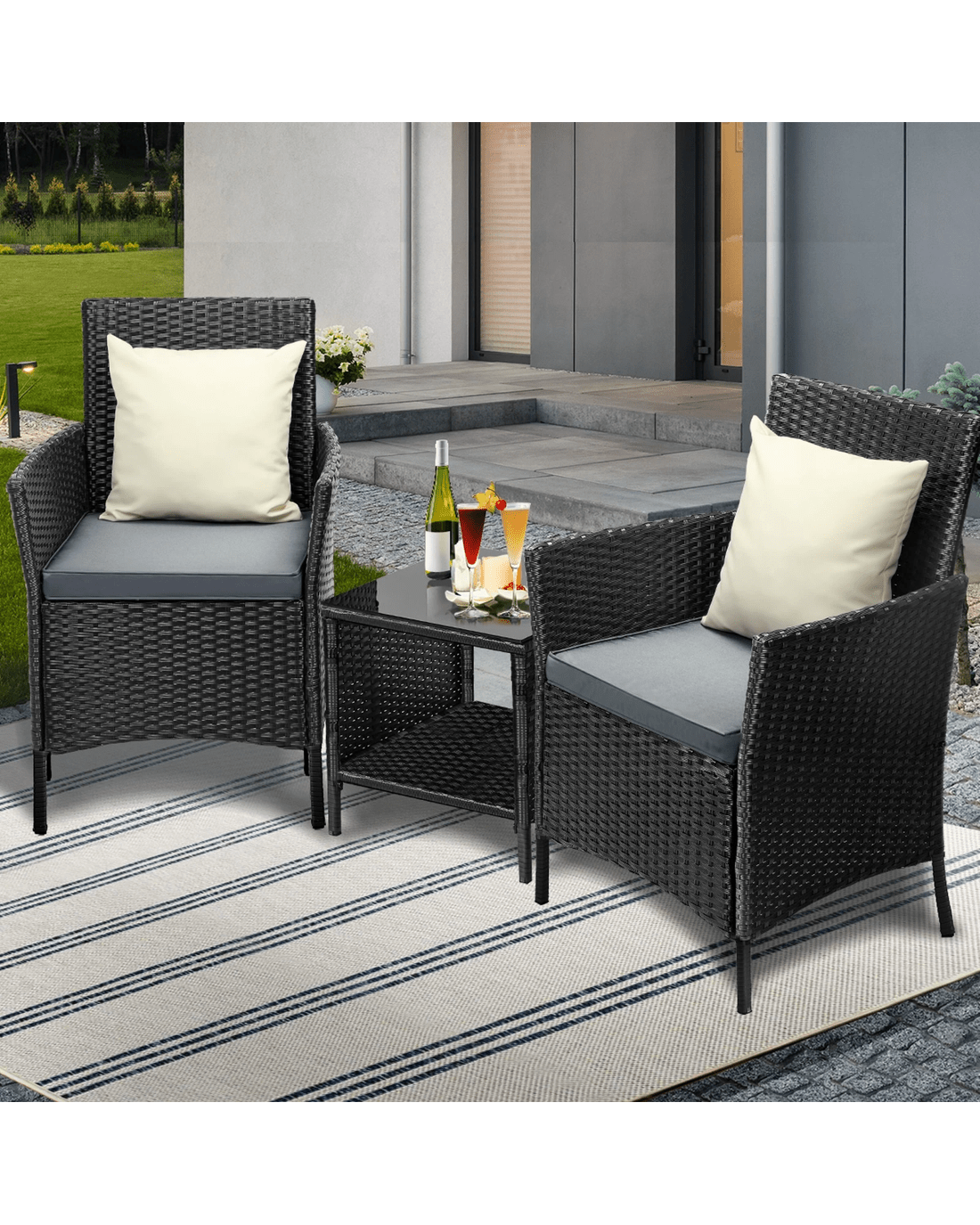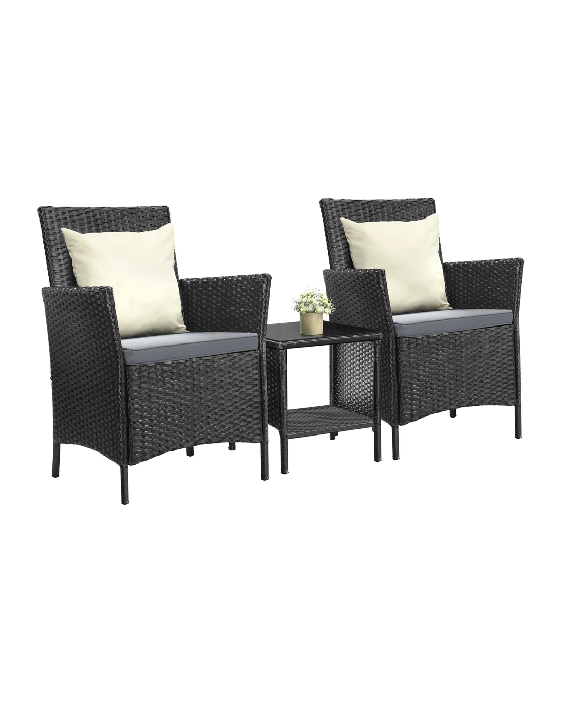 Livsip Outdoor Furniture 3 Piece Wicker Bistro Set Patio Chairs Table Garden - Multi