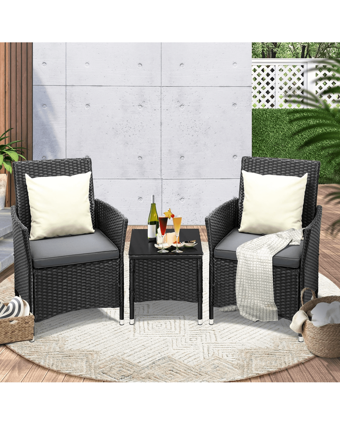 Liven up your patio with a chic Livsip 3-pc Outdoor Patio Rattan Set that absolutely looks the part for an elegant setting outdoors.