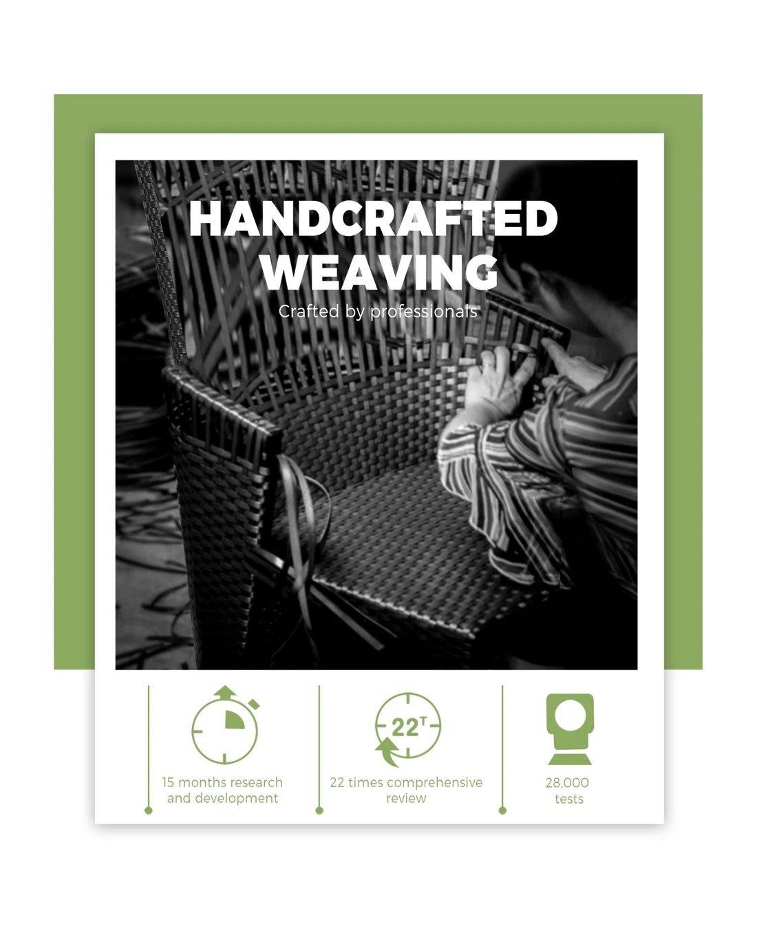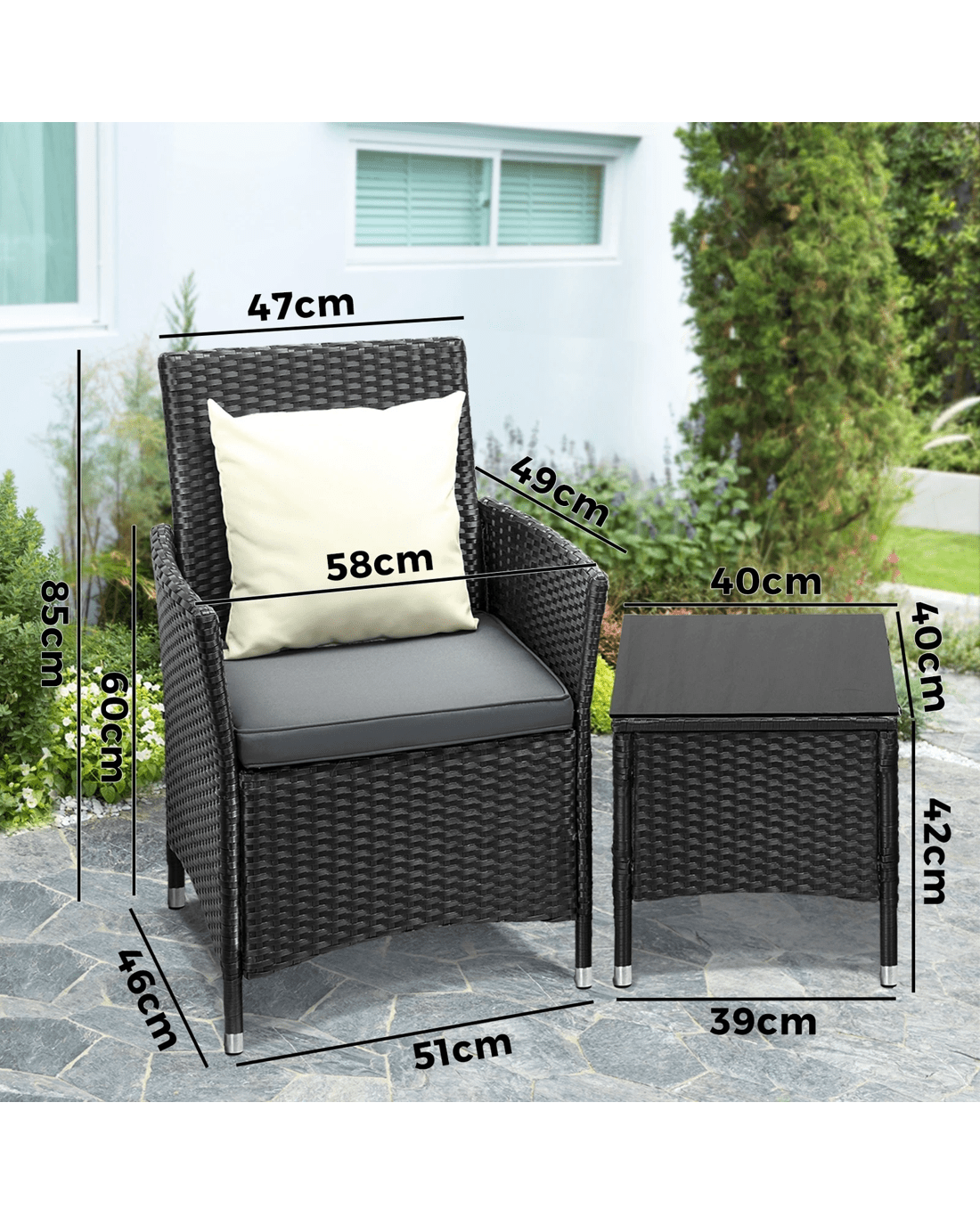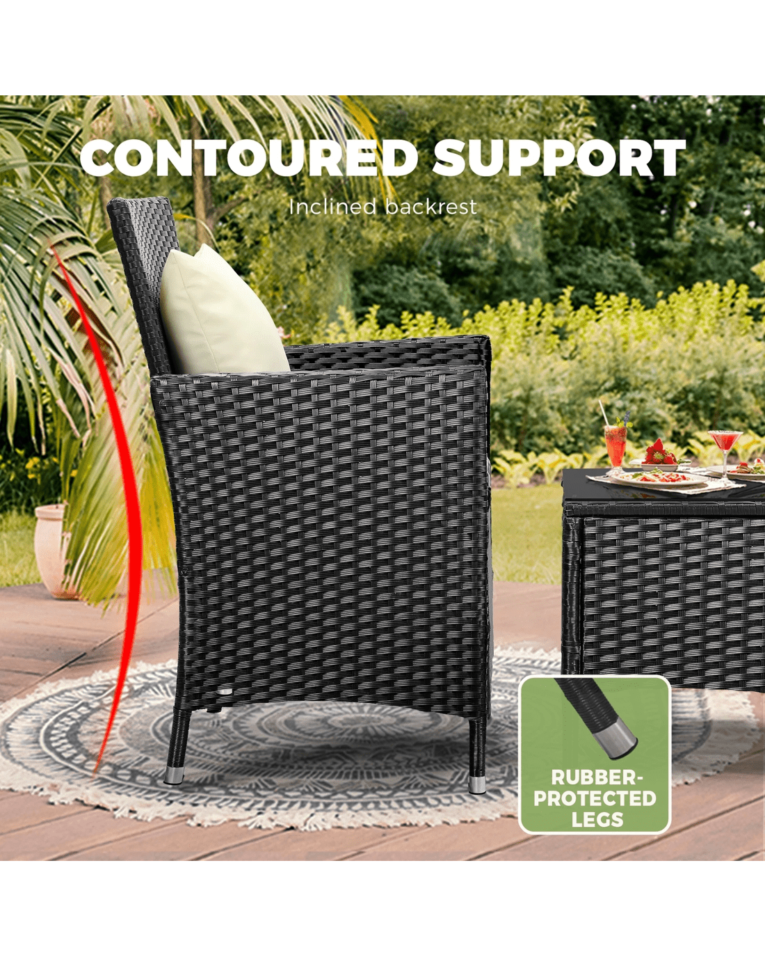 The handcrafted rattan weave design is a classic and the entire ensemble is totally weather-friendly with high resistance to UV rays, heat, water and mould, and with little or no maintenance needed to maintain its colour and texture. Not to be outdone, the frame is made of smooth powder-coated steel to enable robust and long-lasting use.