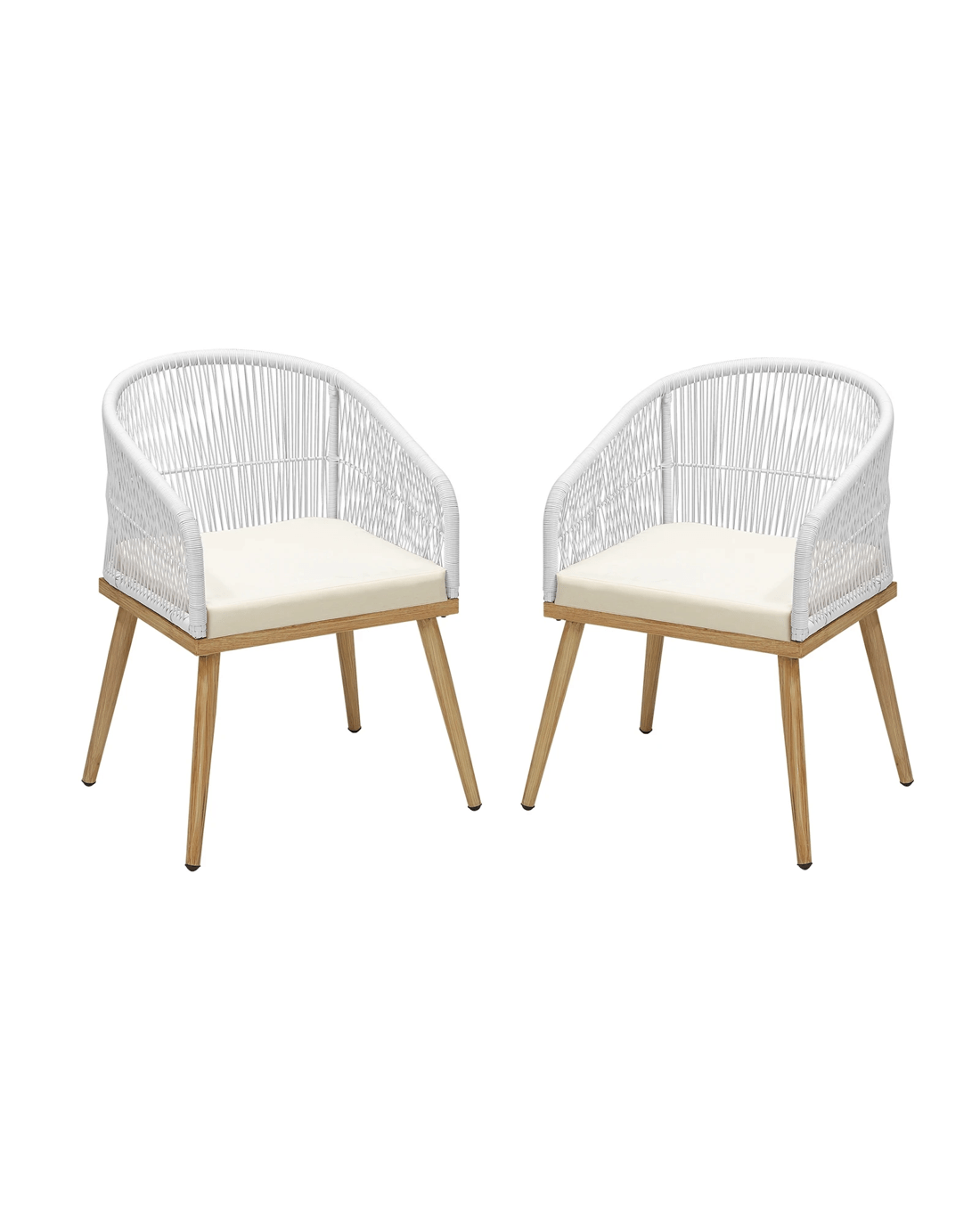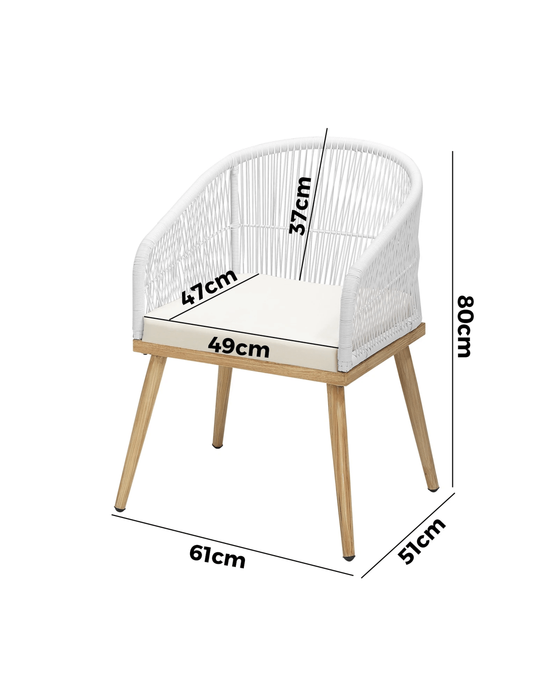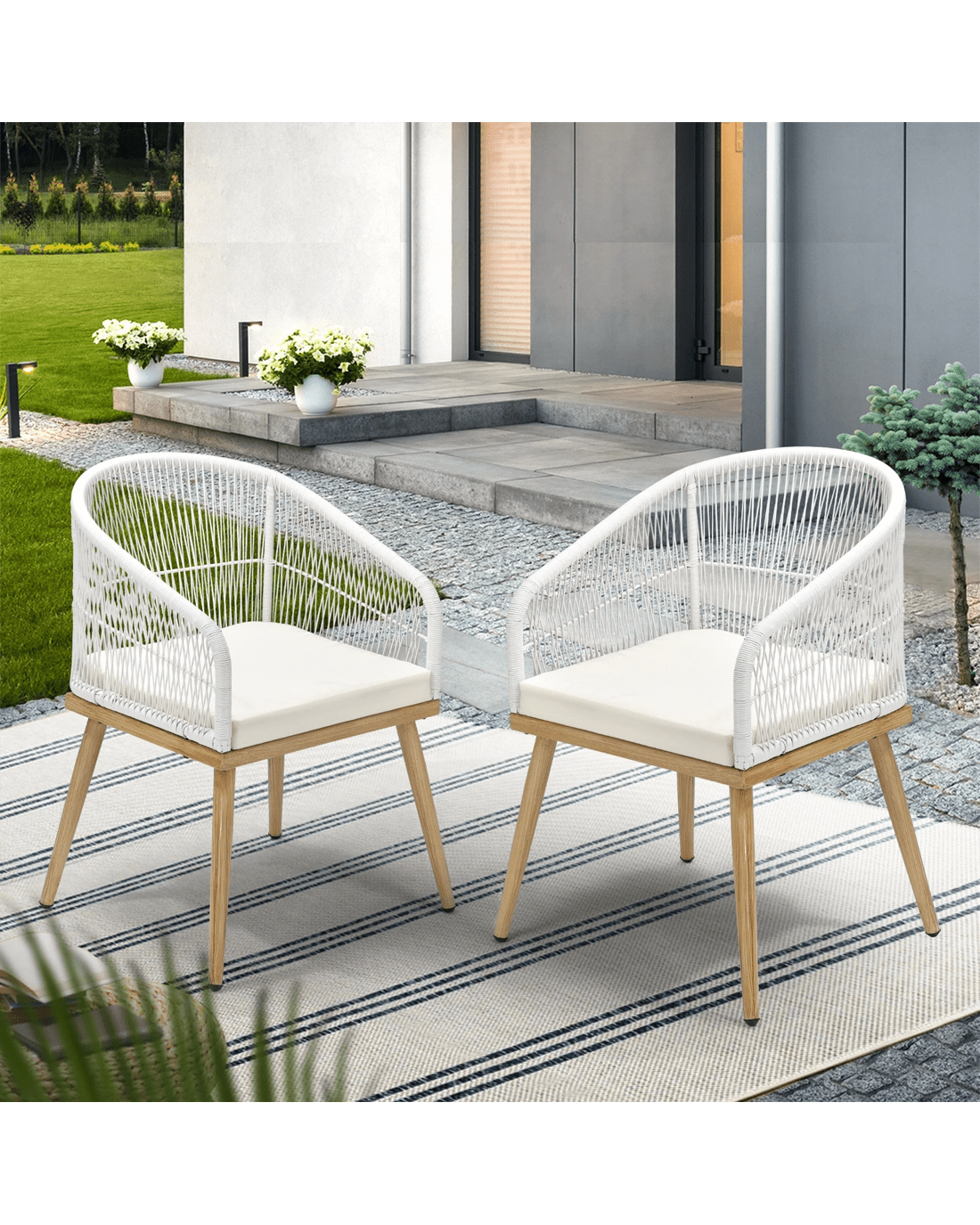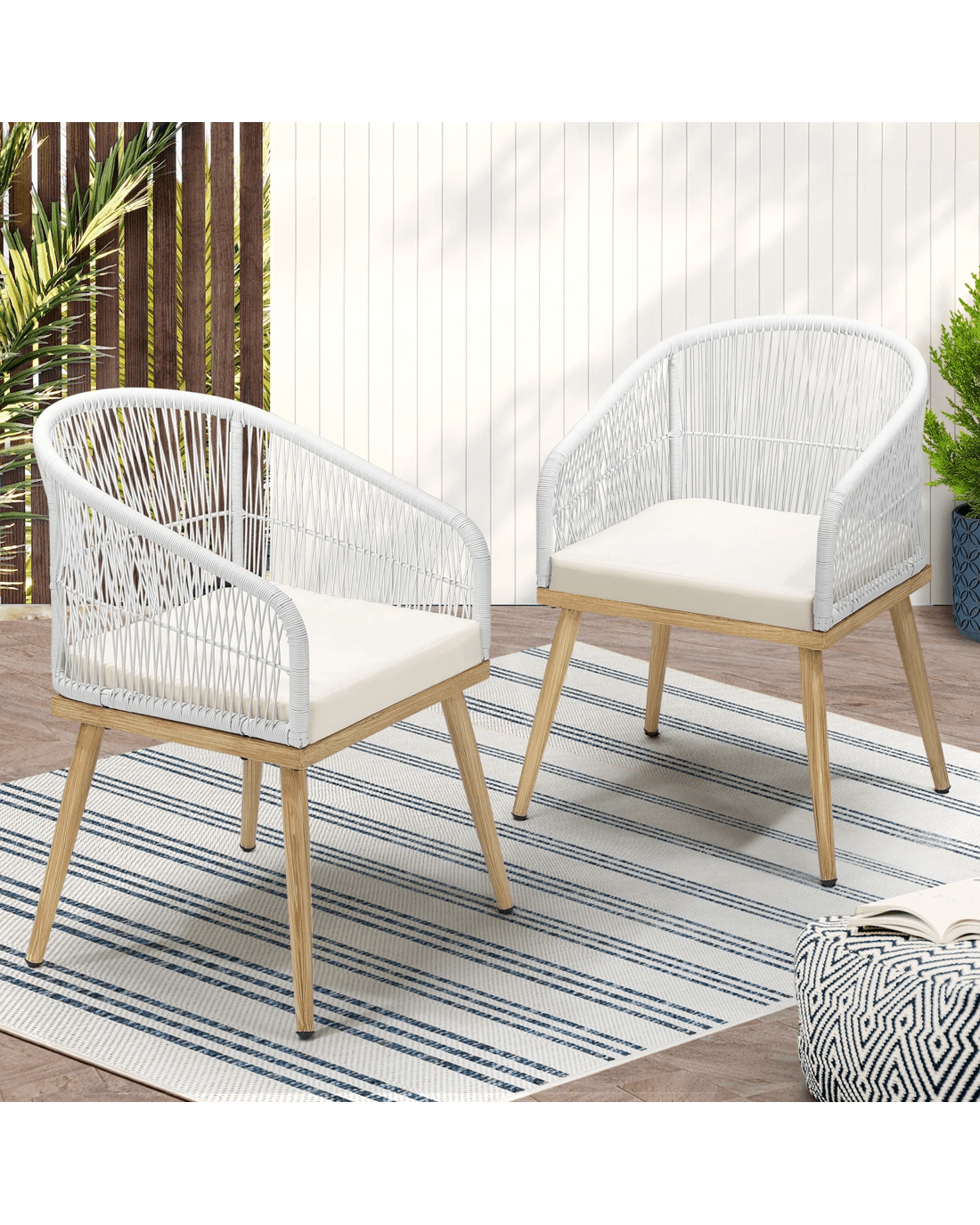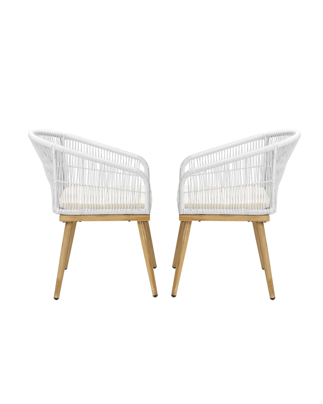Crafted from powder coated steel frame and weather-resistant materials, our Outdoor Armchair Set is built to last. The chairs are constructed with a sturdy frame and feature durable, UV-resistant finishes that can withstand sun exposure, rain, and other outdoor elements without fading or deteriorating.