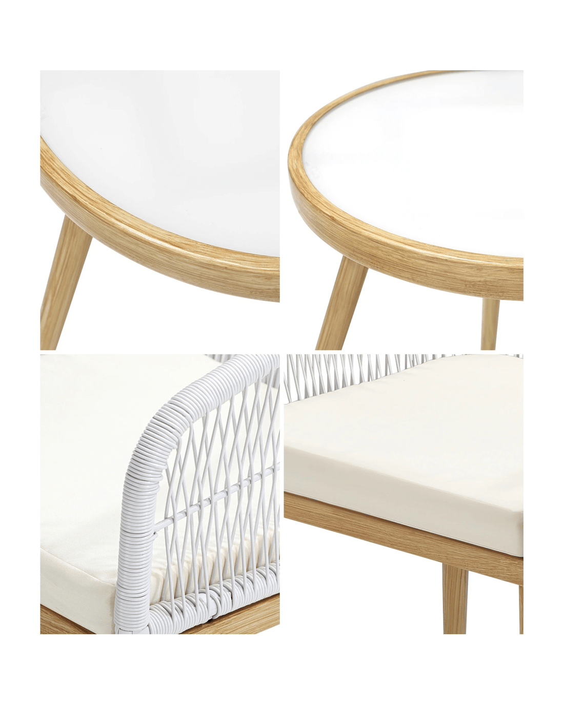 Comfort is paramount in our Outdoor Armchair Set. Each chair is thoughtfully designed with a generous seat and backrest, providing optimal support and relaxation. Sink into the plush cushions that come with the chairs, made from water-resistant and quick-drying fabric, ensuring both comfort and convenience.