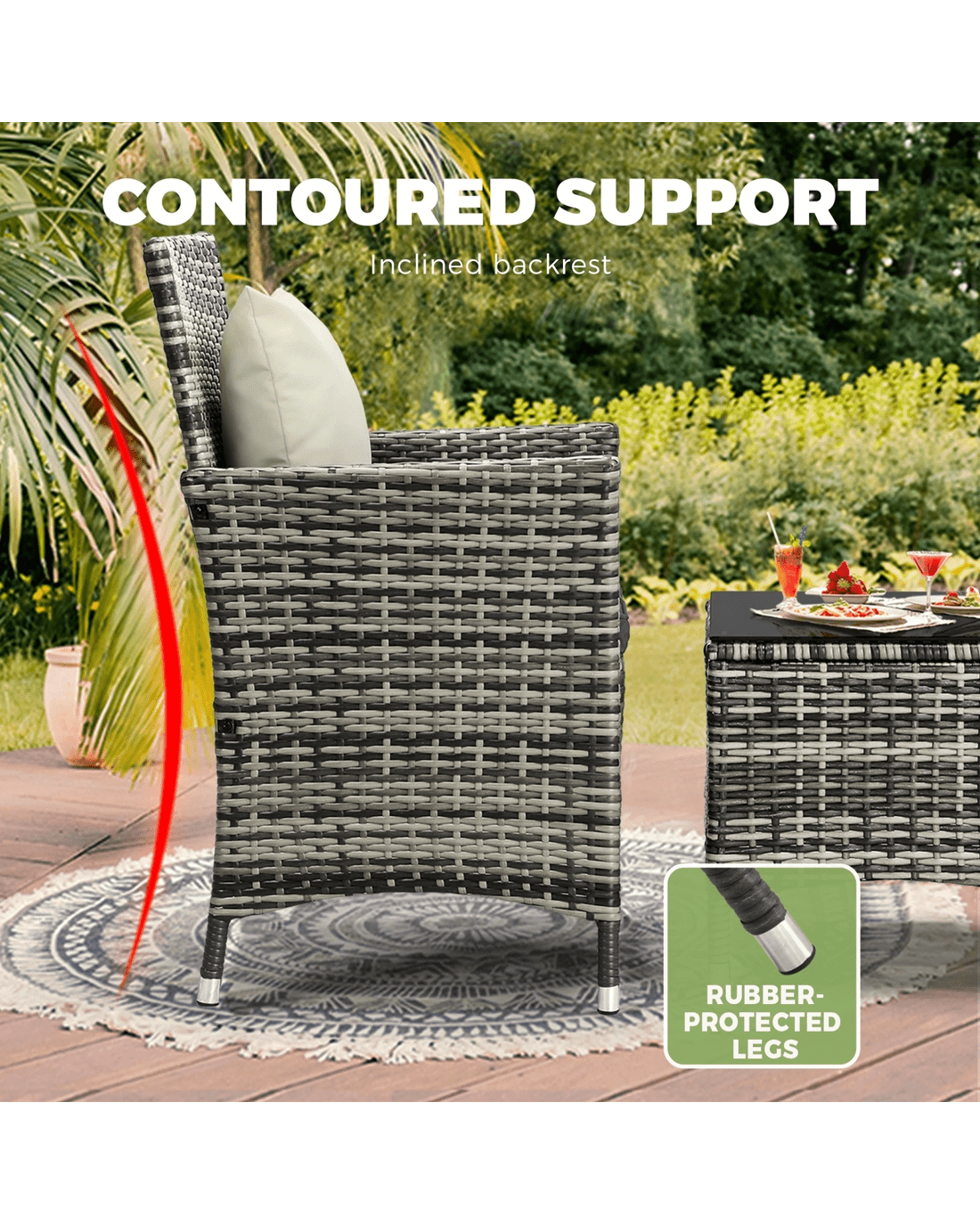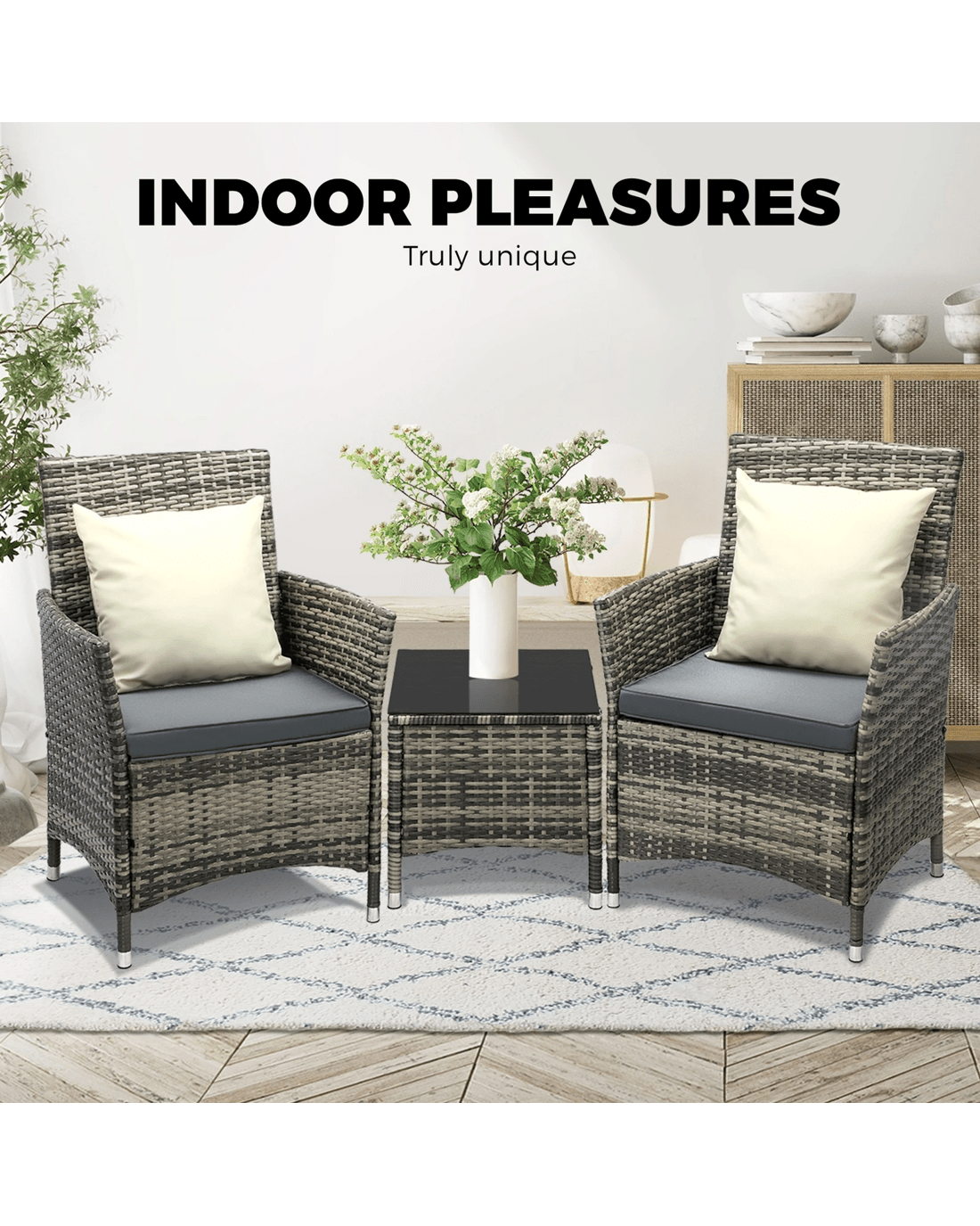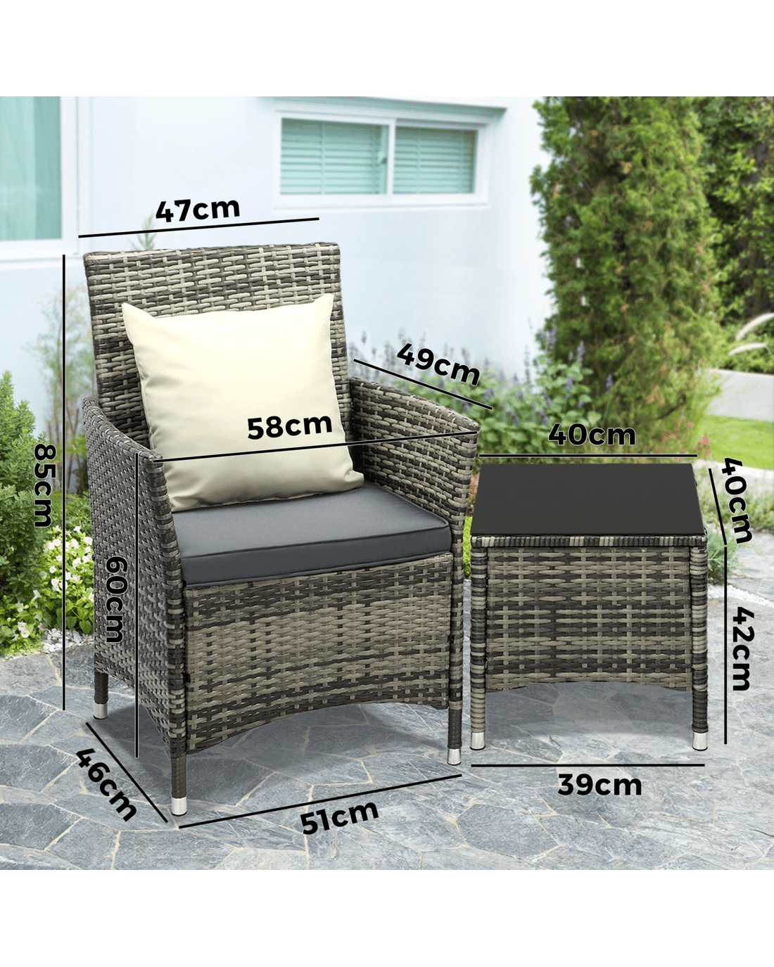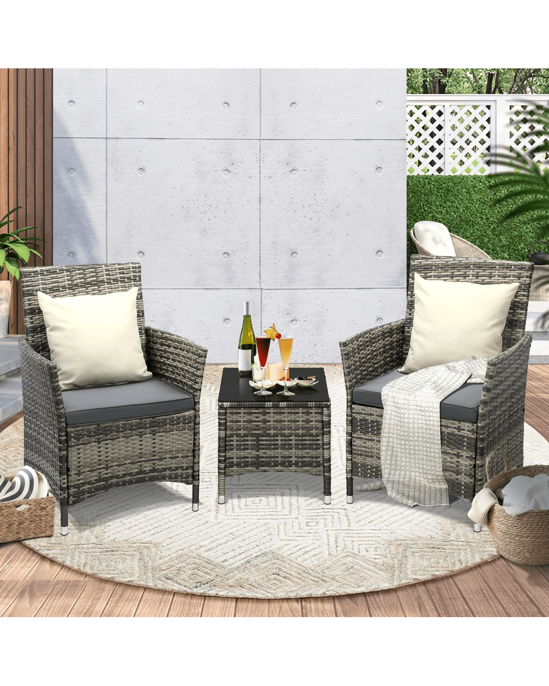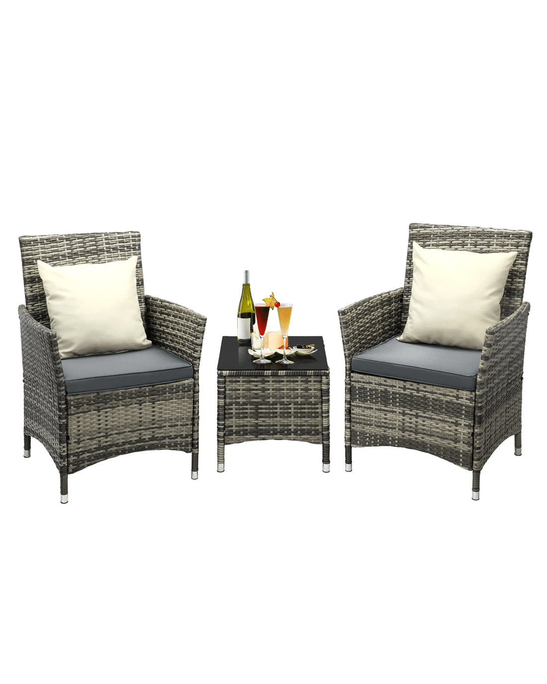Sold by Kamprad's Oikos 1943Livsip Outdoor Furniture Setting 3 Piece Wicker Bistro Set Patio Chairs Table - Grey