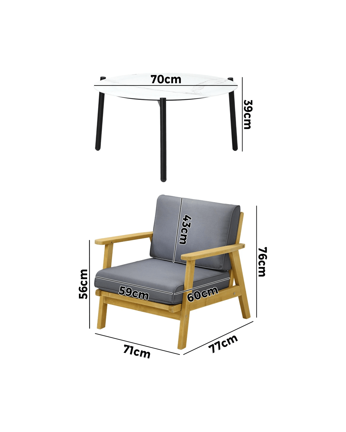 Armchair sizes: 71 x 77 x 76cm(L x W x H)
