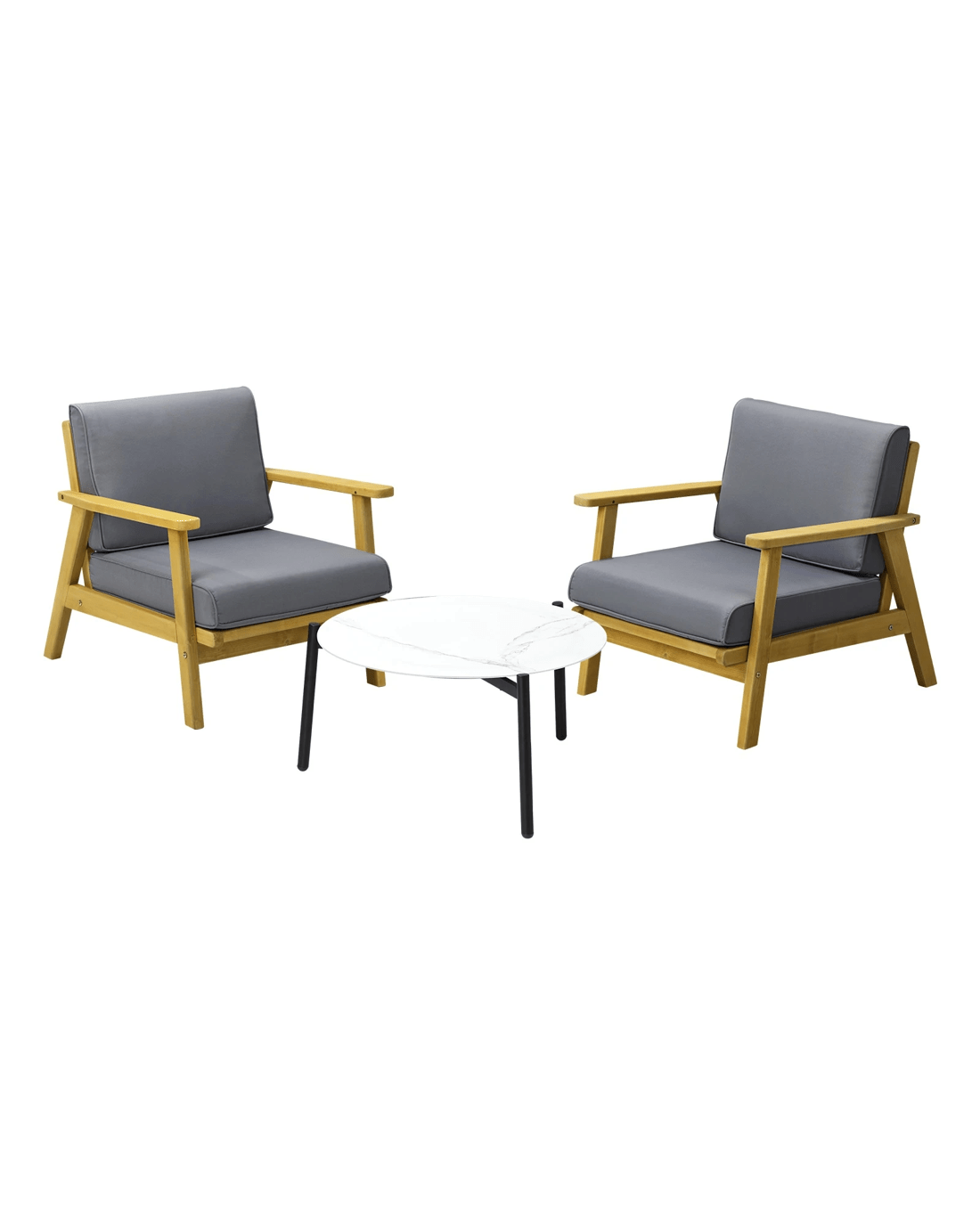 If you are looking for a classy and sophisticated outdoor set that adds a touch of marble-resque aesthetics to its setting, then this Livsip Outdoor Set is well within your radar of stylish furniture. None the ordinary and everything the exceptional.