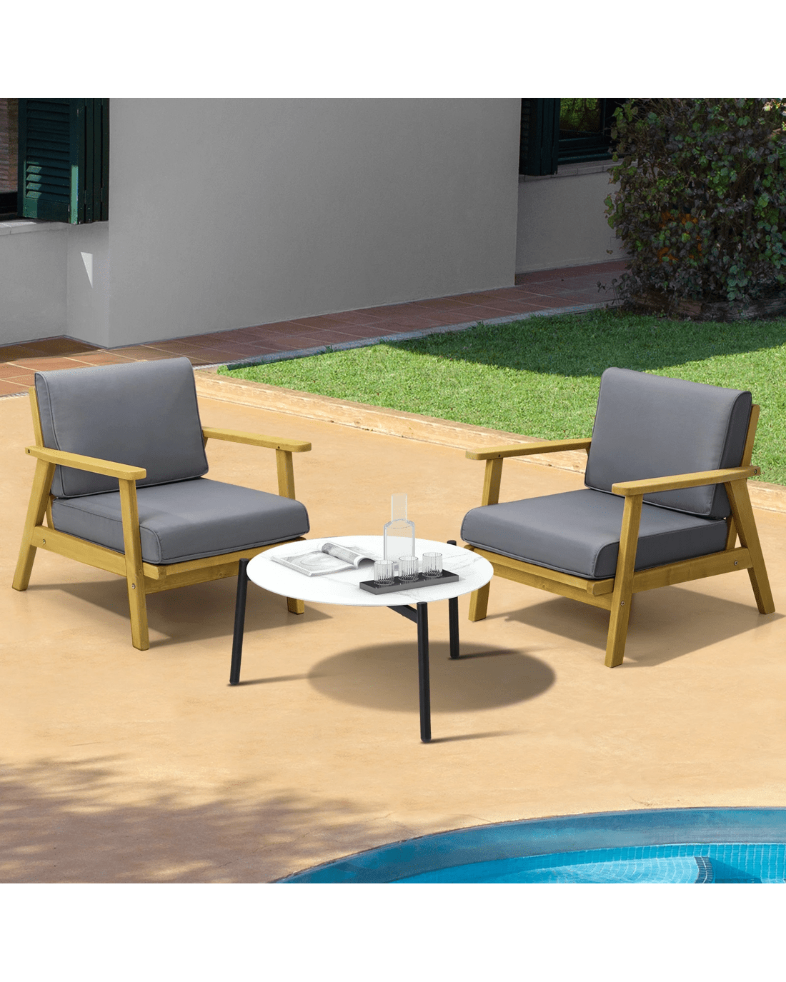 Livsip Outdoor Lounge Set 3PCS Patio Furniture Sets 70cm White Coffee Side Table - Multi