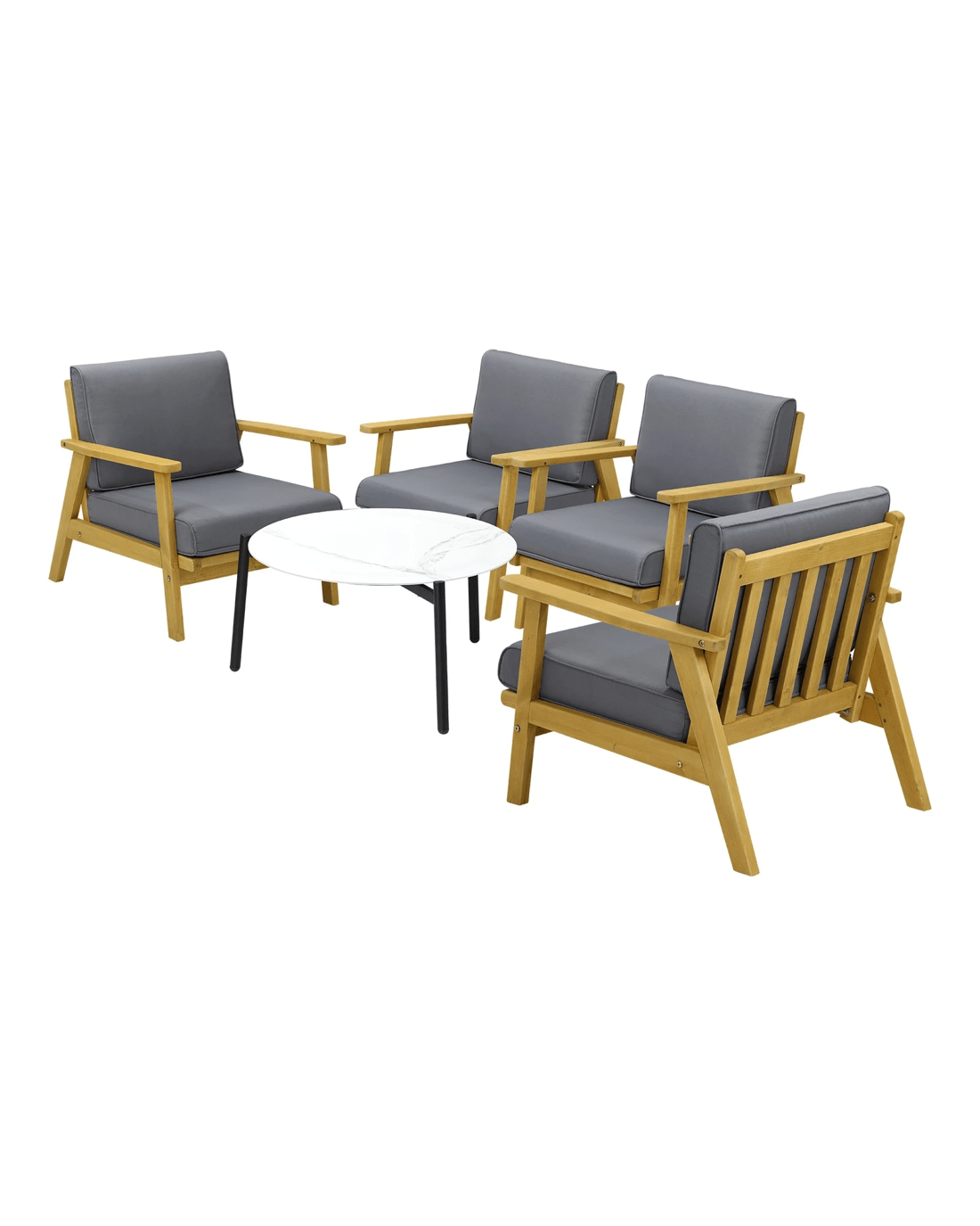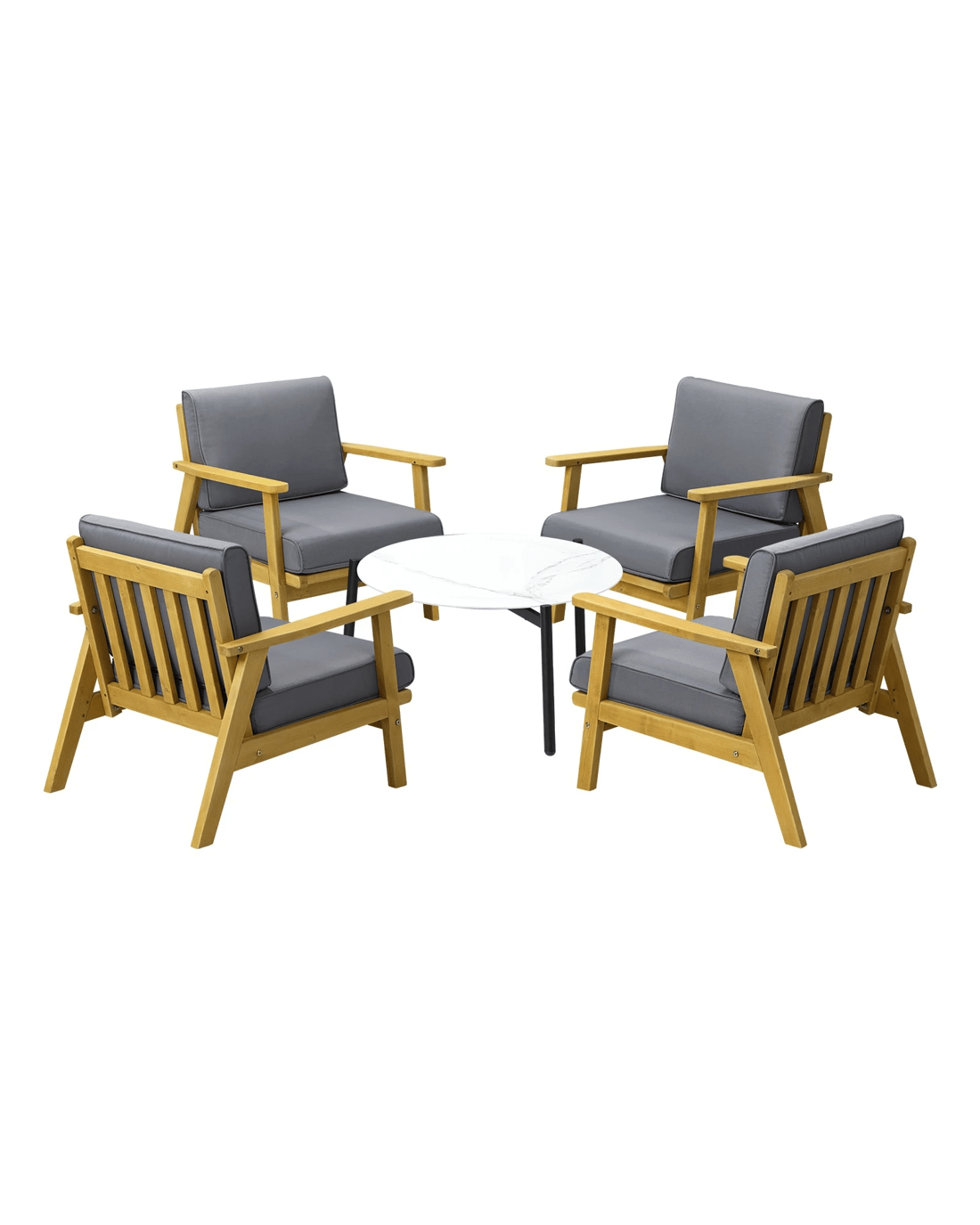 If you are looking for a classy and sophisticated outdoor set that adds a touch of marble-resque aesthetics to its setting, then this Livsip Outdoor Set is well within your radar of stylish furniture. None the ordinary and everything the exceptional.
