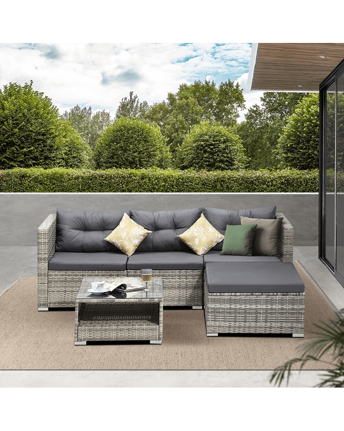 Livsip Outdoor Lounge Setting 5pc Wicker Sofa Set Rattan Patio Garden Furniture - Grey