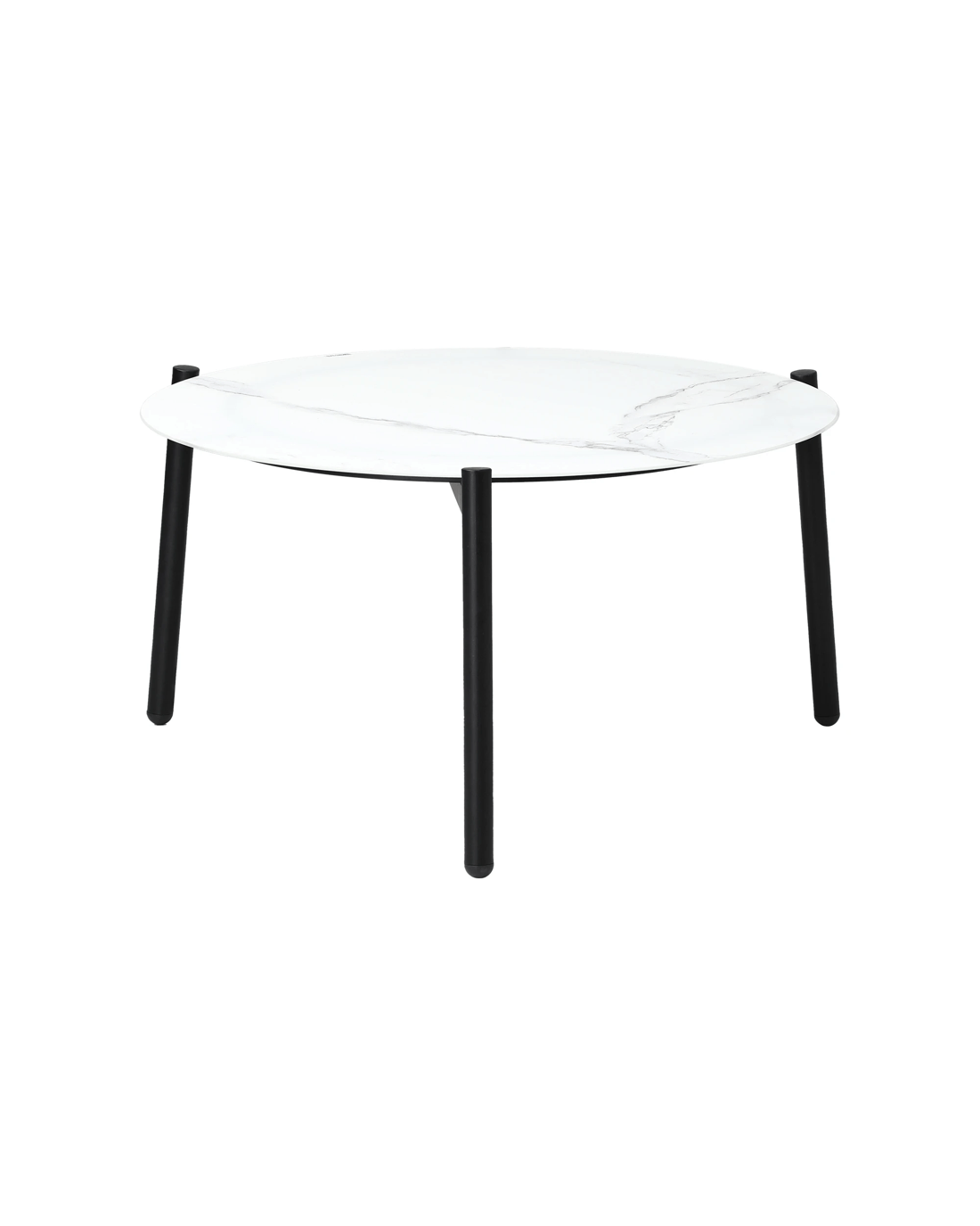 Design-wise, the three-legged profile of the coffee table is unique in stature while extending its durability and strength with a black powder-coated steel construction.
