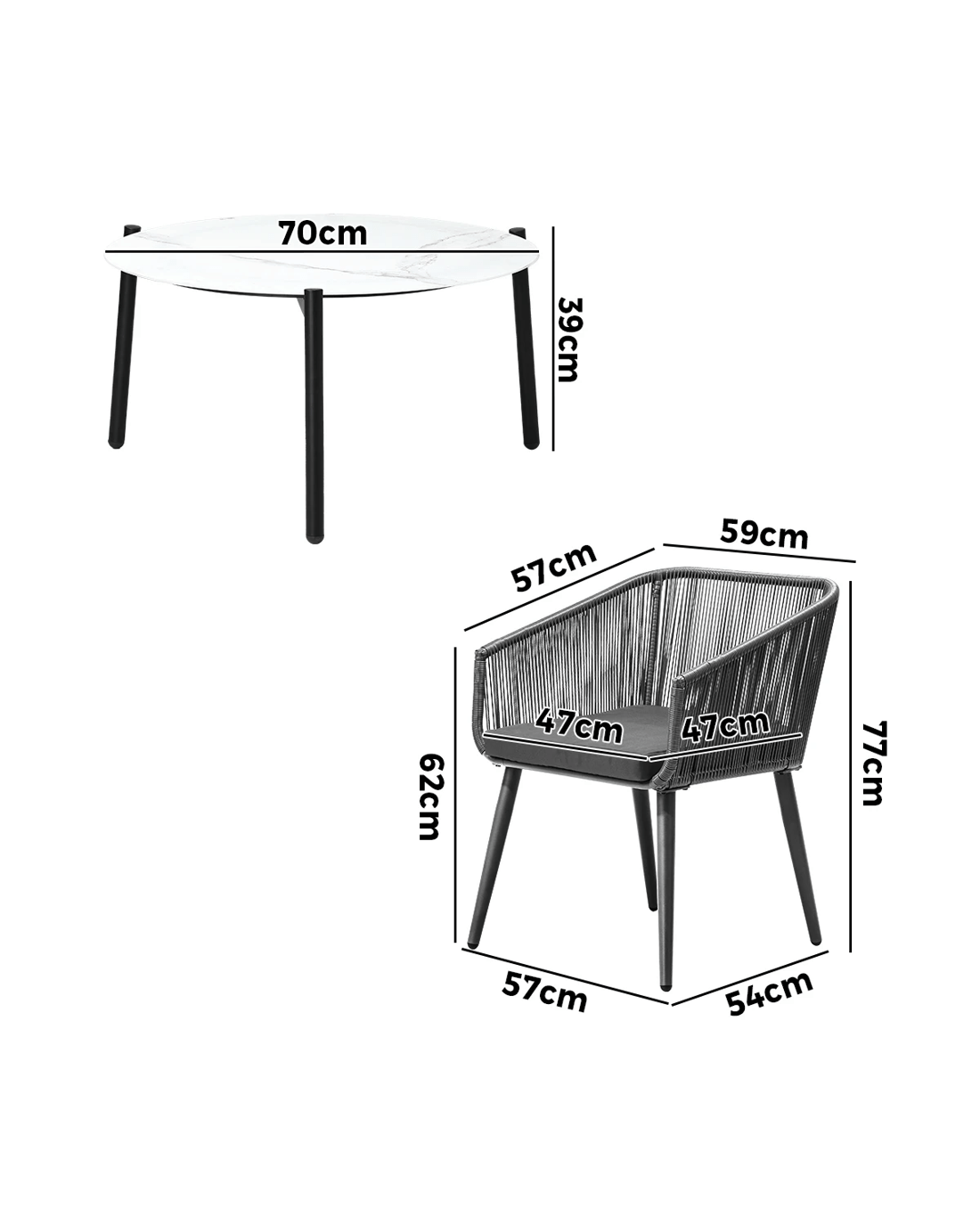 - 70cm x 70cm x 77cm