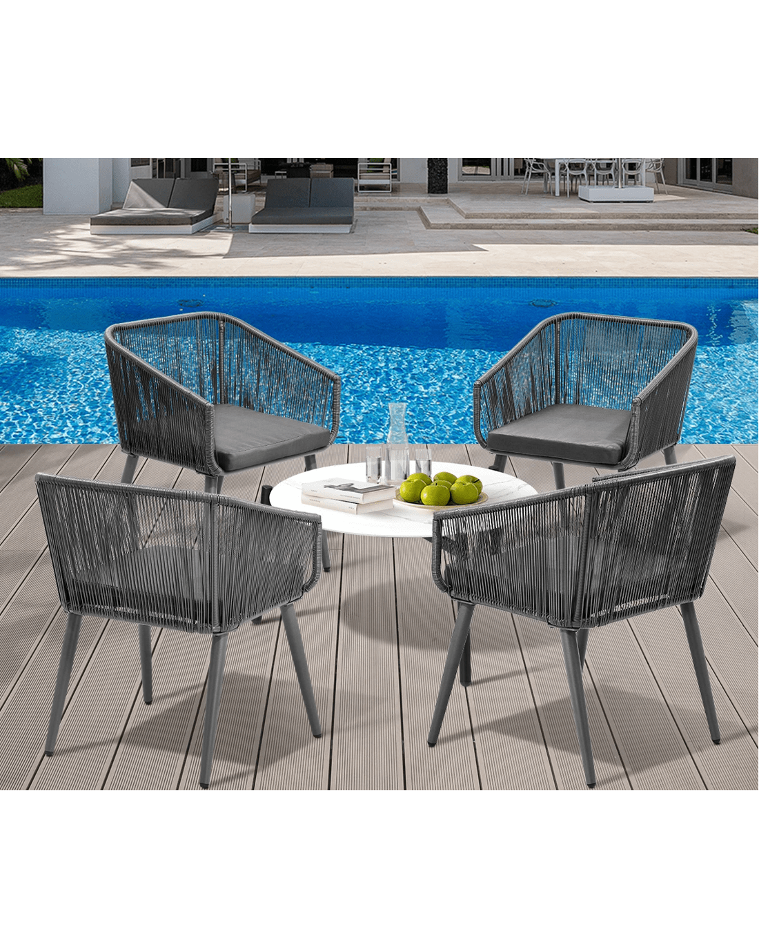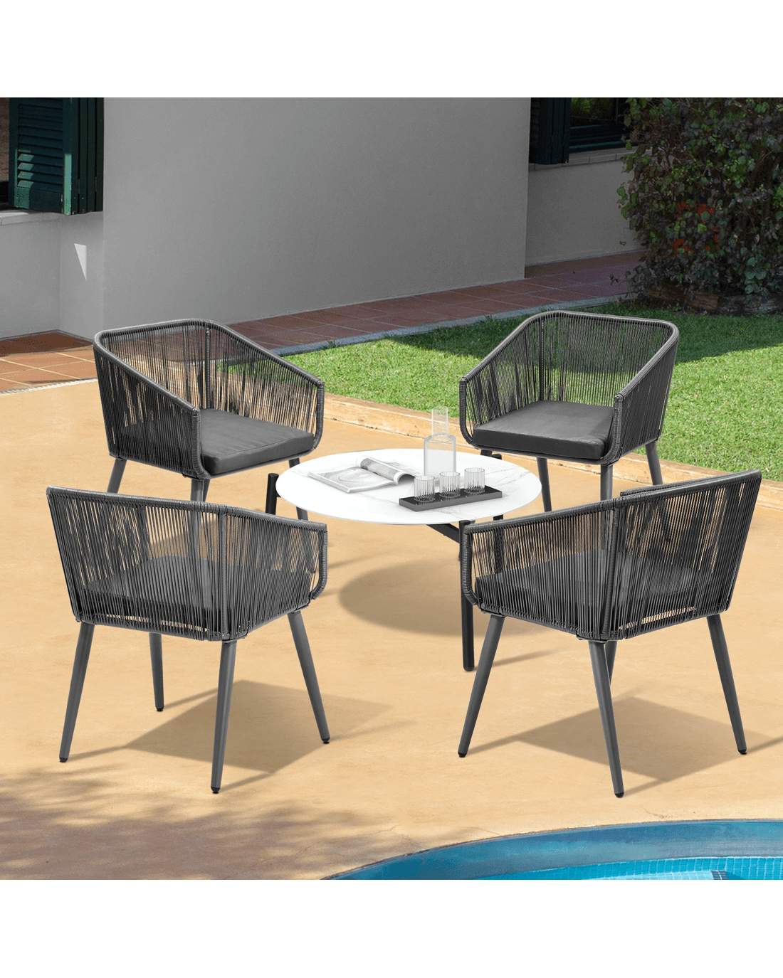 If you are looking for a classy and sophisticated outdoor set that adds a touch of marble-resque aesthetics to its setting, then this Livsip Outdoor Set is well within your radar of stylish furniture. None the ordinary and everything the exceptional.